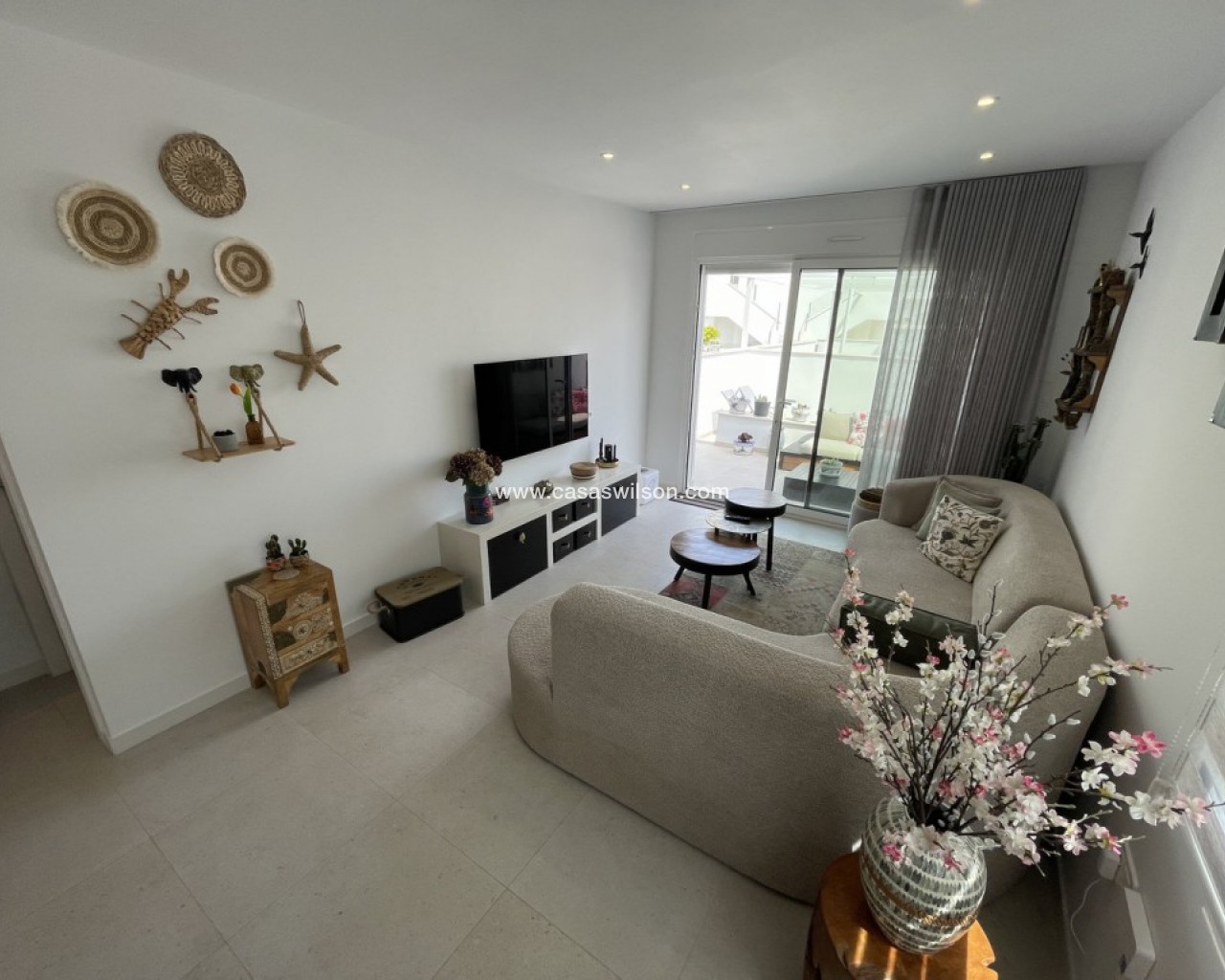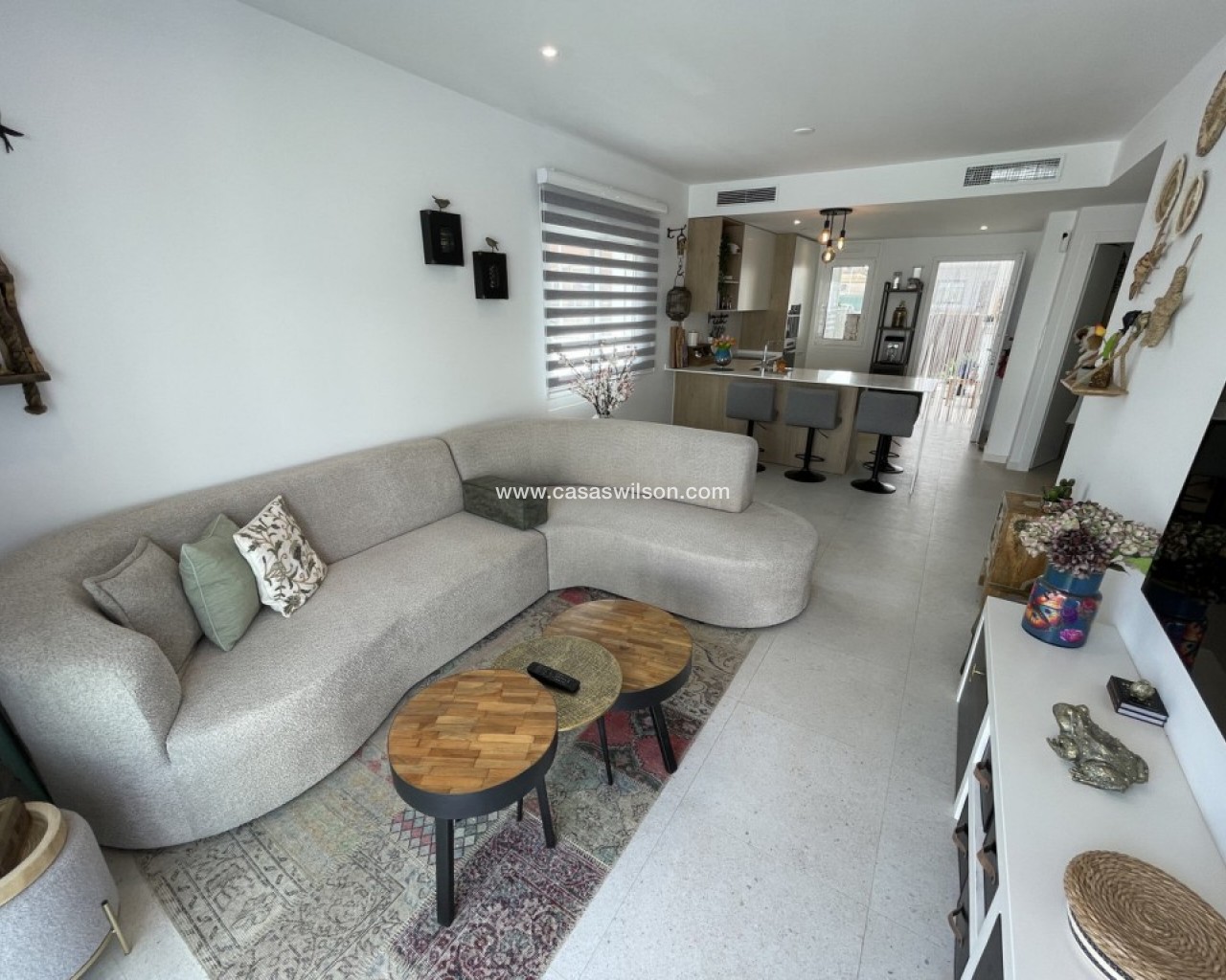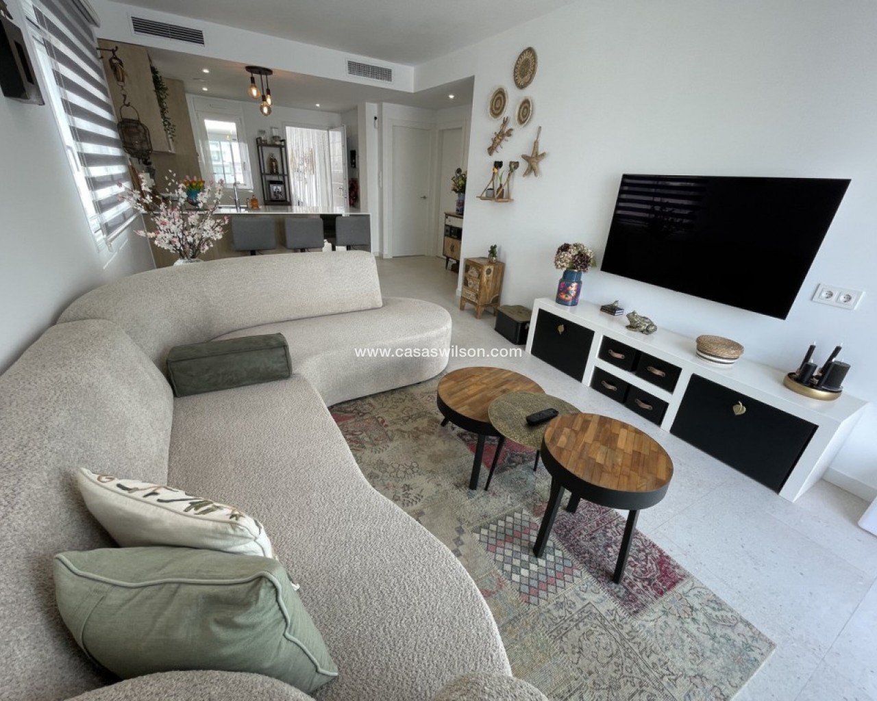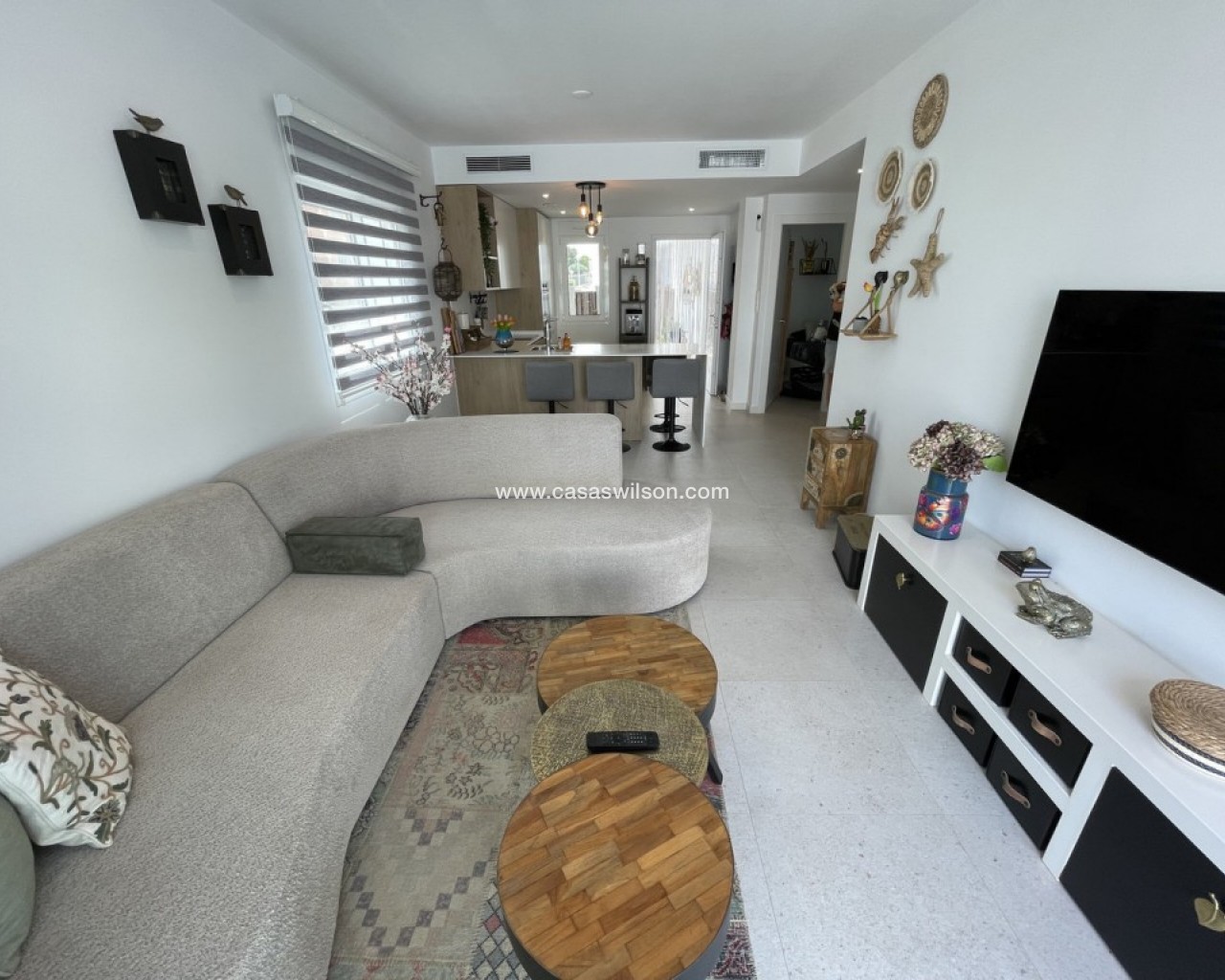 Bungalow élégant au rez-de-chaussée avec terrasse privée et accès à la piscine communeCe bungalow au rez-de-chaussée magnifiquement présenté offre un mélange attrayant de design contemporain, de confort et de vie en plein air - idéal comme résidence permanente, retraite de vacances ou investissement locatif.La maison s'ouvre sur un espace de vie ouvert, lumineux et aéré, alliant esthétique moderne et fonctionnalité. La cuisine entièrement équipée présente des lignes blanches épurées, des appareils électroménagers intégrés et un îlot central fonctionnel avec coin repas, idéal pour cuisiner et recevoir. Le salon attenant, meublé avec goût, s'ouvre harmonieusement sur la terrasse privée, privilégiant un style de vie intérieur-extérieur.Sortez sur une terrasse spacieuse et ensoleillée, où vous pourrez dîner, vous détendre et profiter du calme environnant. Des touches décoratives comme des décorations murales, des plantes en pot et des coins salon ombragés créent une atmosphère méditerranéenne décontractée.La propriété comprend deux chambres spacieuses avec placards intégrés. La chambre principale, au design chaleureux et accueillant, bénéficie d'une salle de bain privative, pour un confort et une intimité accrus. La deuxième chambre, actuellement équipée de lits jumeaux, est idéale pour accueillir des invités ou une famille.Il y a au total deux salles de bains modernes, toutes deux conçues avec des finitions de haute qualité, des douches à l'italienne spacieuses et des vanités élégantes - la salle de bains privative offrant une commodité supplémentaire pour la chambre principale.Un placard utilitaire discret abrite la machine à laver, le chauffe-eau et les produits de nettoyage, gardant l'espace extérieur bien rangé et fonctionnel.Cette propriété fait partie d'une communauté résidentielle sécurisée et bien entretenue avec accès à une élégante piscine commune entourée d'une végétation luxuriante - un cadre idéal pour se détendre et se rafraîchir.Il s'agit d'une maison clé en main qui équilibre parfaitement commodité, style et confort — apportez simplement votre valise.