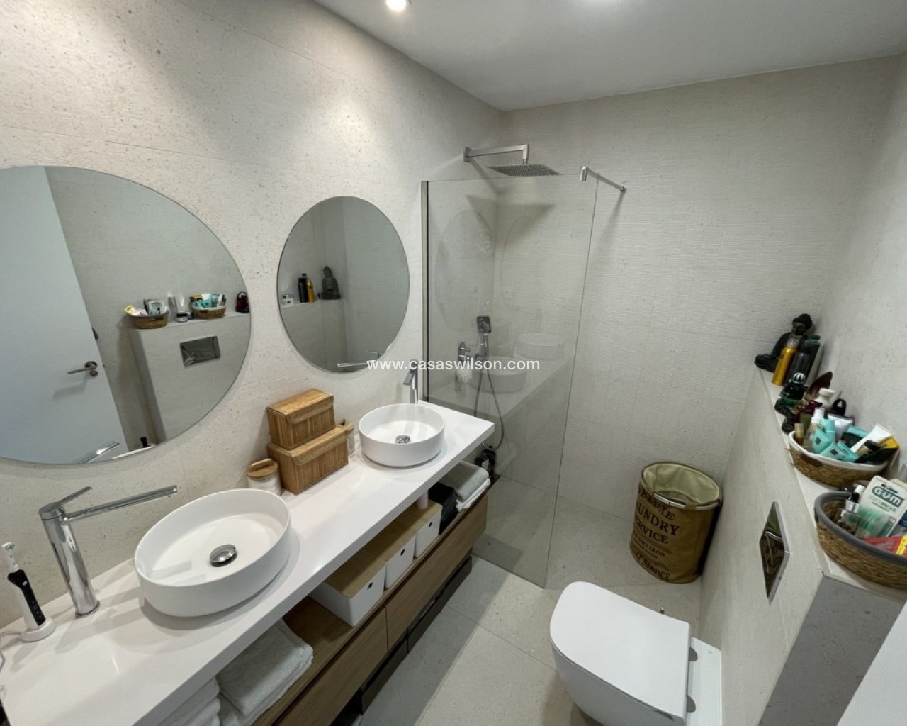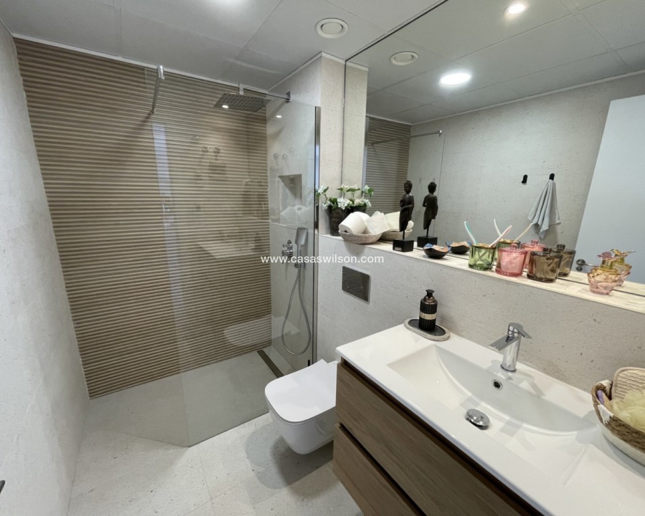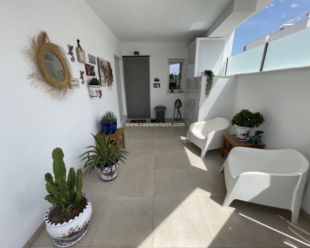 Bungalow élégant au rez-de-chaussée avec terrasse privée et accès à la piscine communeCe bungalow au rez-de-chaussée magnifiquement présenté offre un mélange attrayant de design contemporain, de confort et de vie en plein air - idéal comme résidence permanente, retraite de vacances ou investissement locatif.La maison s'ouvre sur un espace de vie ouvert, lumineux et aéré, alliant esthétique moderne et fonctionnalité. La cuisine entièrement équipée présente des lignes blanches épurées, des appareils électroménagers intégrés et un îlot central fonctionnel avec coin repas, idéal pour cuisiner et recevoir. Le salon attenant, meublé avec goût, s'ouvre harmonieusement sur la terrasse privée, privilégiant un style de vie intérieur-extérieur.Sortez sur une terrasse spacieuse et ensoleillée, où vous pourrez dîner, vous détendre et profiter du calme environnant. Des touches décoratives comme des décorations murales, des plantes en pot et des coins salon ombragés créent une atmosphère méditerranéenne décontractée.La propriété comprend deux chambres spacieuses avec placards intégrés. La chambre principale, au design chaleureux et accueillant, bénéficie d'une salle de bain privative, pour un confort et une intimité accrus. La deuxième chambre, actuellement équipée de lits jumeaux, est idéale pour accueillir des invités ou une famille.Il y a au total deux salles de bains modernes, toutes deux conçues avec des finitions de haute qualité, des douches à l'italienne spacieuses et des vanités élégantes - la salle de bains privative offrant une commodité supplémentaire pour la chambre principale.Un placard utilitaire discret abrite la machine à laver, le chauffe-eau et les produits de nettoyage, gardant l'espace extérieur bien rangé et fonctionnel.Cette propriété fait partie d'une communauté résidentielle sécurisée et bien entretenue avec accès à une élégante piscine commune entourée d'une végétation luxuriante - un cadre idéal pour se détendre et se rafraîchir.Il s'agit d'une maison clé en main qui équilibre parfaitement commodité, style et confort — apportez simplement votre valise.
