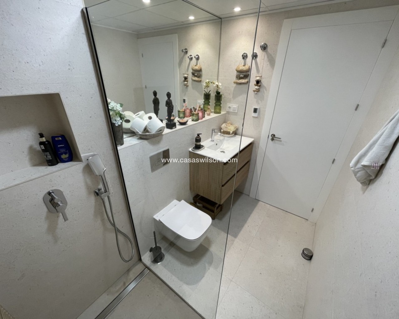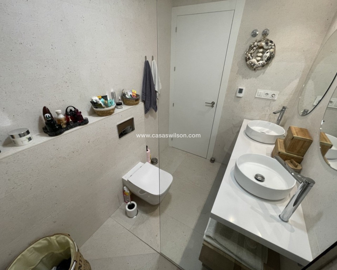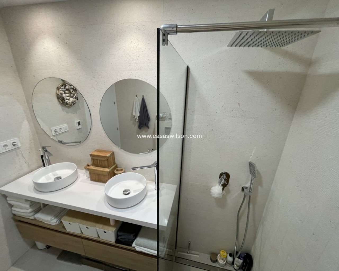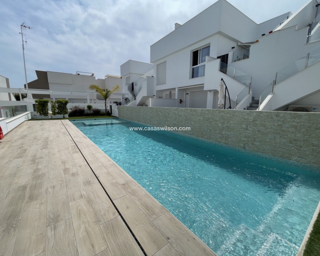 Bungalow élégant au rez-de-chaussée avec terrasse privée et accès à la piscine communeCe bungalow au rez-de-chaussée magnifiquement présenté offre un mélange attrayant de design contemporain, de confort et de vie en plein air - idéal comme résidence permanente, retraite de vacances ou investissement locatif.La maison s'ouvre sur un espace de vie ouvert, lumineux et aéré, alliant esthétique moderne et fonctionnalité. La cuisine entièrement équipée présente des lignes blanches épurées, des appareils électroménagers intégrés et un îlot central fonctionnel avec coin repas, idéal pour cuisiner et recevoir. Le salon attenant, meublé avec goût, s'ouvre harmonieusement sur la terrasse privée, privilégiant un style de vie intérieur-extérieur.Sortez sur une terrasse spacieuse et ensoleillée, où vous pourrez dîner, vous détendre et profiter du calme environnant. Des touches décoratives comme des décorations murales, des plantes en pot et des coins salon ombragés créent une atmosphère méditerranéenne décontractée.La propriété comprend deux chambres spacieuses avec placards intégrés. La chambre principale, au design chaleureux et accueillant, bénéficie d'une salle de bain privative, pour un confort et une intimité accrus. La deuxième chambre, actuellement équipée de lits jumeaux, est idéale pour accueillir des invités ou une famille.Il y a au total deux salles de bains modernes, toutes deux conçues avec des finitions de haute qualité, des douches à l'italienne spacieuses et des vanités élégantes - la salle de bains privative offrant une commodité supplémentaire pour la chambre principale.Un placard utilitaire discret abrite la machine à laver, le chauffe-eau et les produits de nettoyage, gardant l'espace extérieur bien rangé et fonctionnel.Cette propriété fait partie d'une communauté résidentielle sécurisée et bien entretenue avec accès à une élégante piscine commune entourée d'une végétation luxuriante - un cadre idéal pour se détendre et se rafraîchir.Il s'agit d'une maison clé en main qui équilibre parfaitement commodité, style et confort — apportez simplement votre valise.