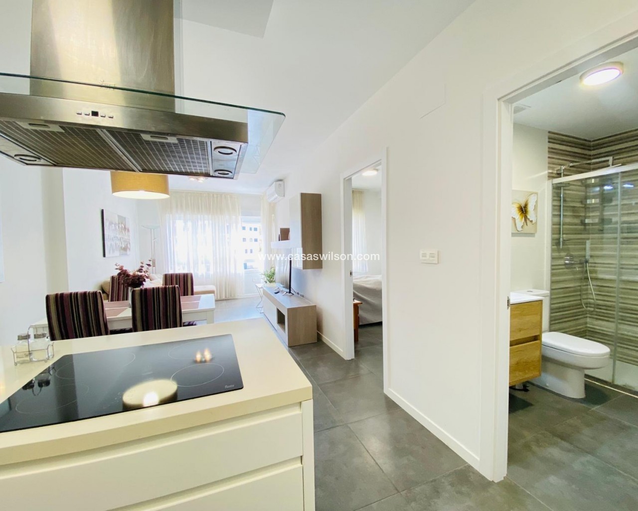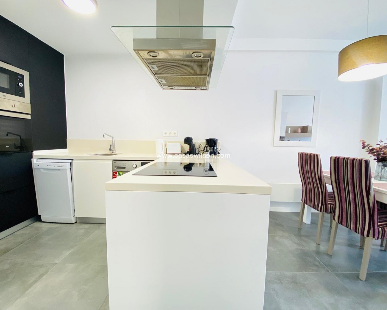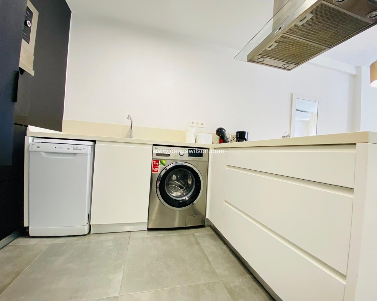 Découvrez le luxe et le confort dans cet appartement exclusif situé à Altos de Campoamor, Orihuela Costa. Cet espace moderne presque neuf offre une superficie de 47 m2 optimisée avec un design contemporain qui met en valeur son charme. Avec une chambre double éclairée par la lumière naturelle grâce à son orientation sud-ouest, vous profiterez de vues latérales sur la mer depuis votre propre balcon d'angle ou jardin privé au sein de la résidence. La cuisine équipée vous permettra de préparer des mets exquis tout en profitant de l'ambiance côtière. Détendez-vous au bord de la piscine commune pendant les chaudes journées d'été ou pratiquez des sports comme le tennis et le padel dans les installations disponibles pour les résidents. Idéalement situé à seulement 800 mètres de la mer Méditerranée et à proximité du centre commercial Zenia Boulevard, vous aurez un accès facile à des services essentiels tels que la santé, les pharmacies et les restaurants gastronomiques. De plus, il comprend une place de garage privée et un cellier pour maximiser votre confort quotidien ; vivez chaque jour entouré par l'éclat méditerranéen.