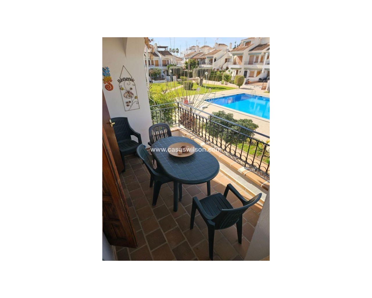 Découvrez votre oasis de paix dans cette charmante maison de ville de plain-pied ! Située au premier étage d'un complexe résidentiel exclusif, cette maison allie confort et style dans un cadre idyllique. Avec 70 m² construits et 67 m² habitables, elle offre deux chambres chaleureuses avec placards intégrés, une salle de bain moderne et une cuisine fonctionnelle. Profitez des après-midis chauds sur la terrasse ou le balcon, parfaits pour se détendre.La terrasse, à un niveau supérieur, peut être transformée en un bel espace chillout.Ce bungalow est une destination touristique populaire depuis la dernière décennie, avec un taux d'occupation élevé et une clientèle fidèle qui revient année après année.Vous pourrez également profiter d'une piscine exclusive réservée aux propriétaires et aux locataires, pour des moments de détente et de plaisir. Bien qu'il s'agisse d'une propriété d'occasion, elle est en bon état et prête à être habitée ou à continuer d'exploiter son potentiel touristique.Son orientation nord, est et ouest assure un éclairage naturel tout au long de la journée, créant une atmosphère chaleureuse et accueillante. Son design efficace et son emplacement privilégié en font une opportunité unique.Ne manquez pas l'occasion de faire partie de cette communauté dynamique et de profiter de tout ce que ce bungalow a à offrir. Venez le visiter et tombez sous le charme !