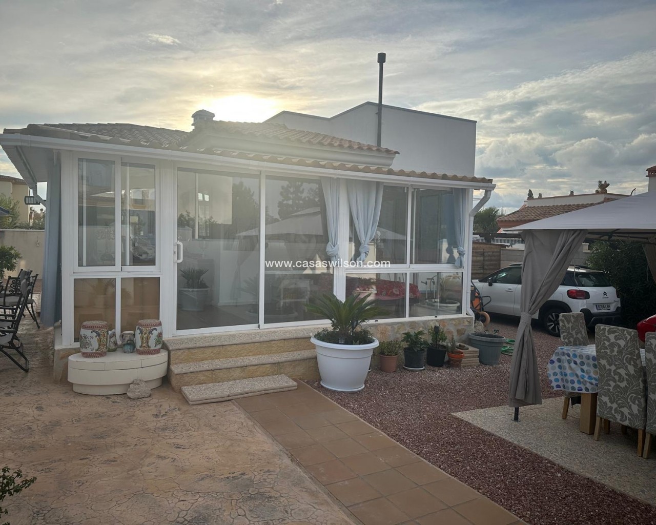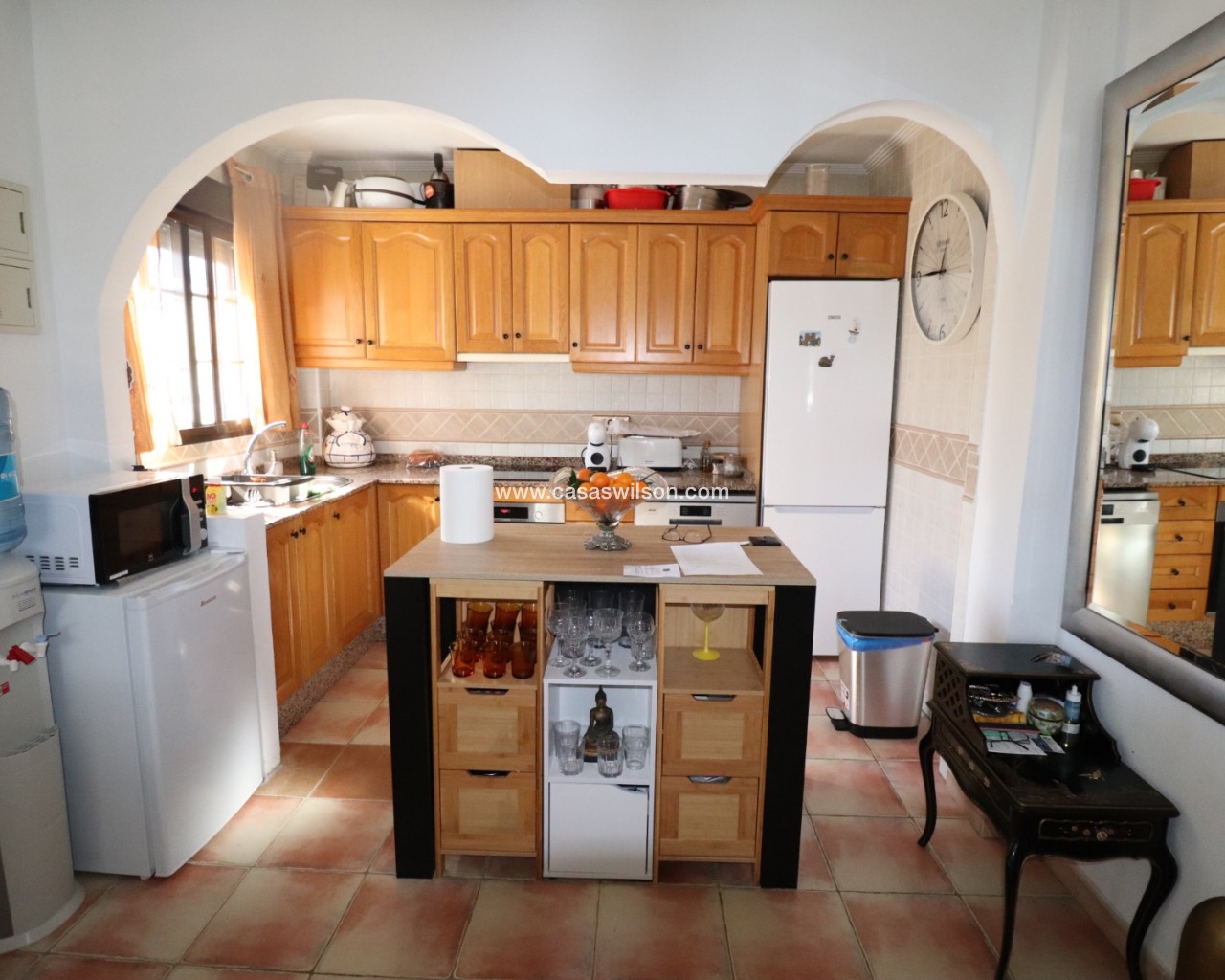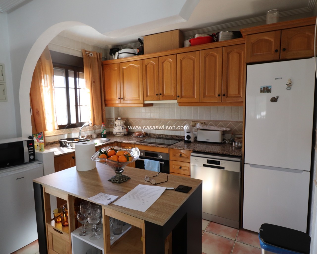Cette belle villa en parfait état est située dans un quartier résidentiel très tranquille entre les deux villages de Hondon avec toutes les commodités. Elle se compose 'une spacieuse véranda donnant sur la piscine et le jardin, d'un living avec cuisine ouverte, de 2 chambres et de 2 salles de bain. Un solarium offre de superbes vues sur les montagnes environnantes. Le jardin a été aménagé avec soin et dispose d'une piscine, de plusieurs terrasses ombragées, d'une cuisine d'été, d'un parking pour 2 voitures, d'un abri de jardin et de mombreuses fleurs et arbres fruitiers. La maison sera vendue entièrement meublée à l'exception de la télévision, d'un ensemble de jardin et d'un distributeur d'eau. A 35 minutes de l'aéroport d'Alicante et des plages.