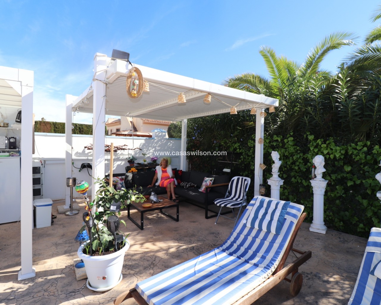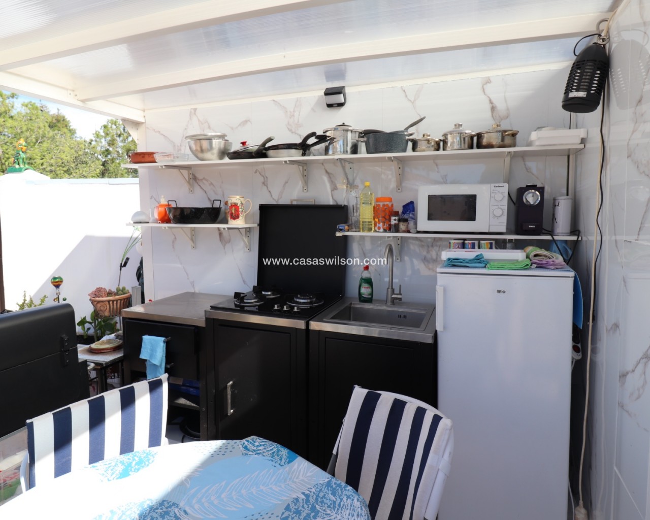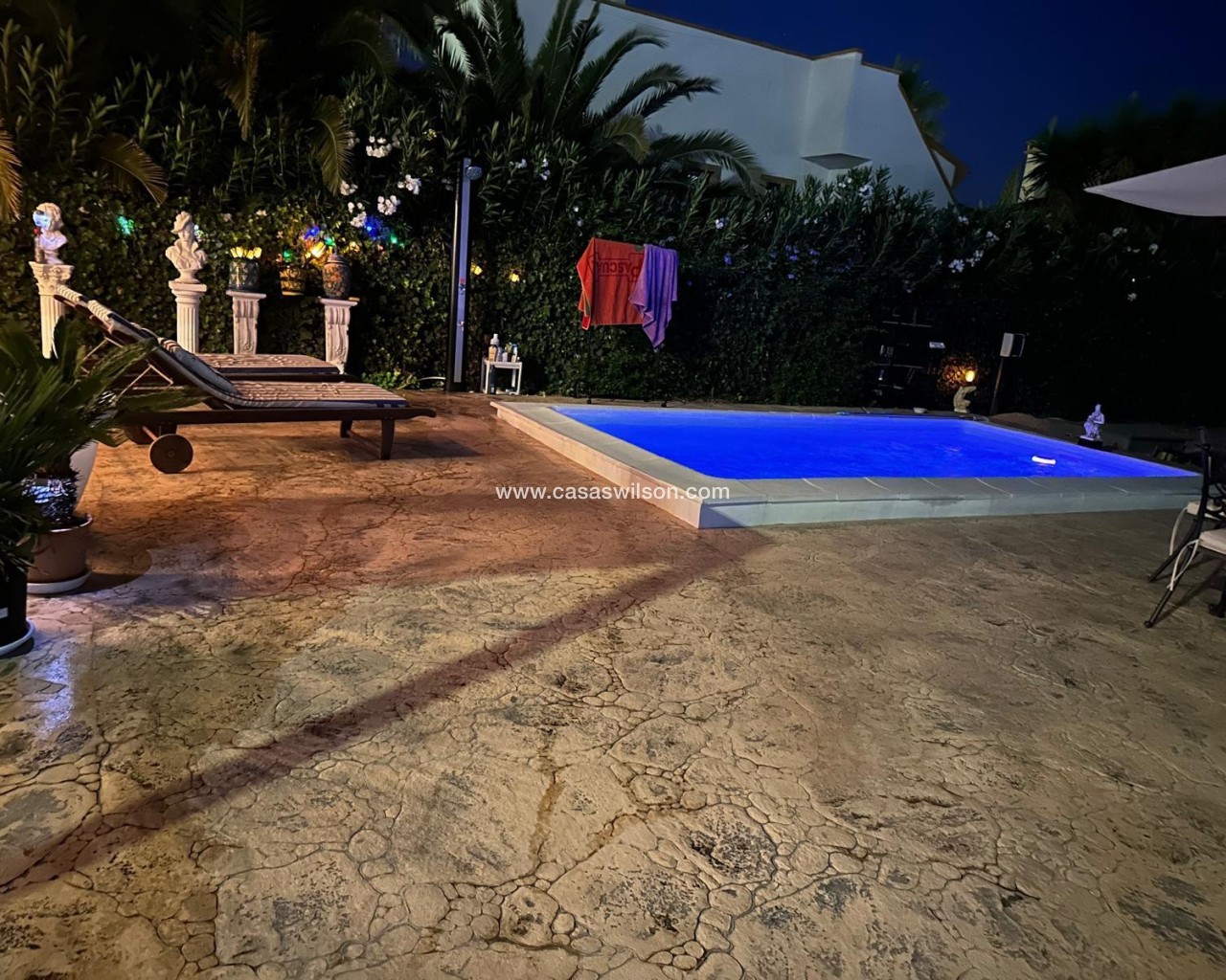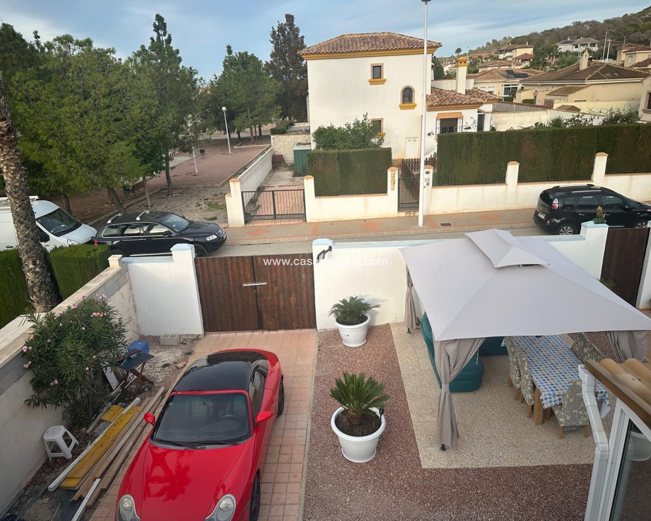 Cette belle villa en parfait état est située dans un quartier résidentiel très tranquille entre les deux villages de Hondon avec toutes les commodités. Elle se compose 'une spacieuse véranda donnant sur la piscine et le jardin, d'un living avec cuisine ouverte, de 2 chambres et de 2 salles de bain. Un solarium offre de superbes vues sur les montagnes environnantes. Le jardin a été aménagé avec soin et dispose d'une piscine, de plusieurs terrasses ombragées, d'une cuisine d'été, d'un parking pour 2 voitures, d'un abri de jardin et de mombreuses fleurs et arbres fruitiers. La maison sera vendue entièrement meublée à l'exception de la télévision, d'un ensemble de jardin et d'un distributeur d'eau. A 35 minutes de l'aéroport d'Alicante et des plages.
