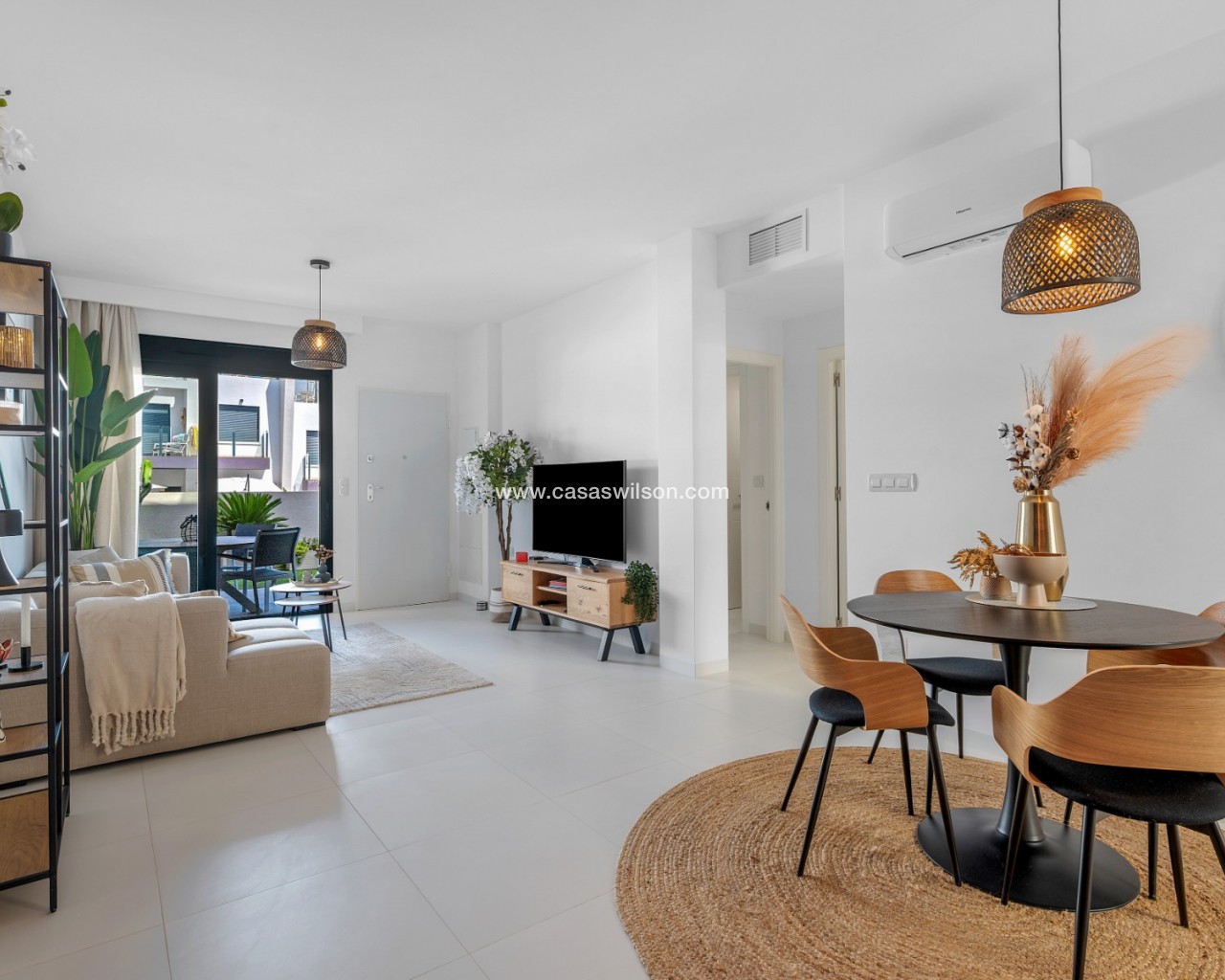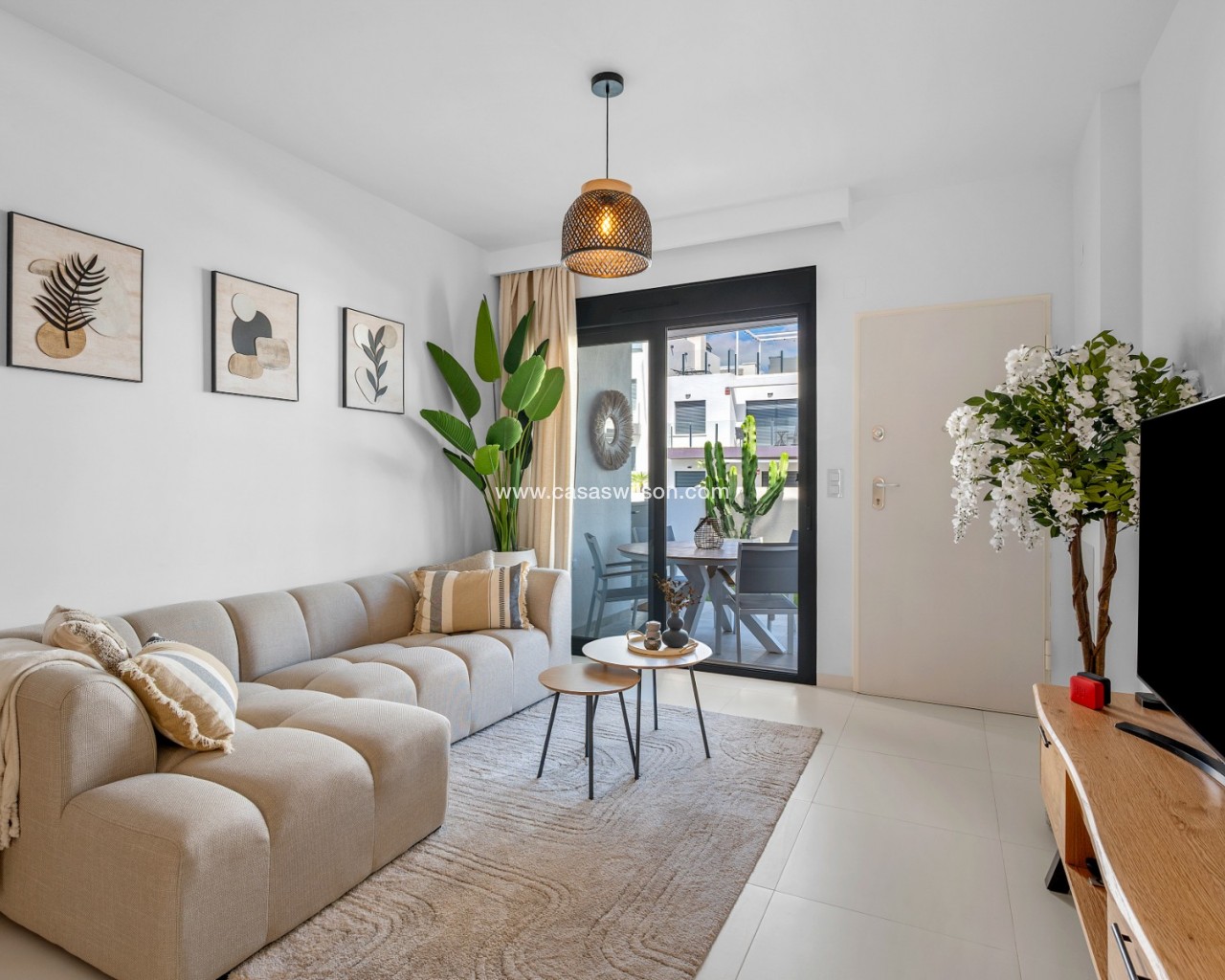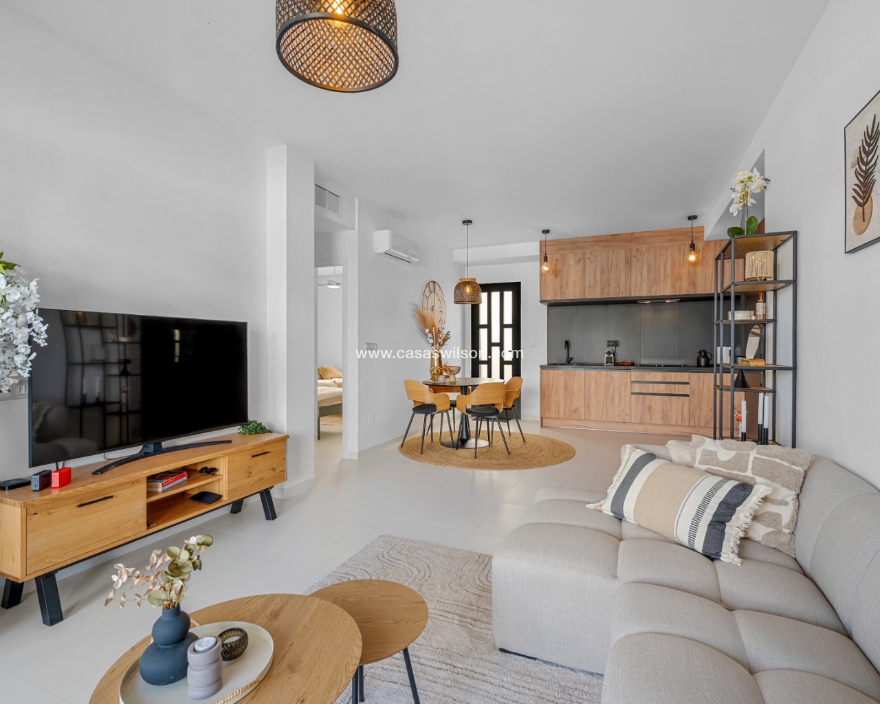 Découvrez ce magnifique appartement situé dans la paisible résidence Saoco à San Miguel de Salinas. Emménagez immédiatement ou profitez-en comme d’un excellent investissement. Le bien est entièrement meublé, équipé d’appareils électroménagers de haute qualité et décoré avec élégance. La maison présente un design moderne et épuré avec une cuisine ouverte et un séjour lumineux et spacieux donnant directement sur une grande terrasse avec vue sur la piscine communautaire. À l’arrière, un espace extérieur privé offre d’innombrables possibilités. L’appartement comprend deux chambres généreuses, dont une suite parentale avec salle de bain attenante et placards intégrés. Toutes les pièces sont équipées de stores, rideaux et ventilateurs de plafond pour un confort optimal. Les deux salles de bain sont en parfait état, dotées d’équipements et de finitions modernes. San Miguel de Salinas est une ville animée, riche en histoire, avec beaucoup à découvrir : de ses grottes fascinantes aux parcours de golf de renommée mondiale situés à seulement quelques minutes. Que vous recherchiez la détente ou l’aventure, vous la trouverez ici.