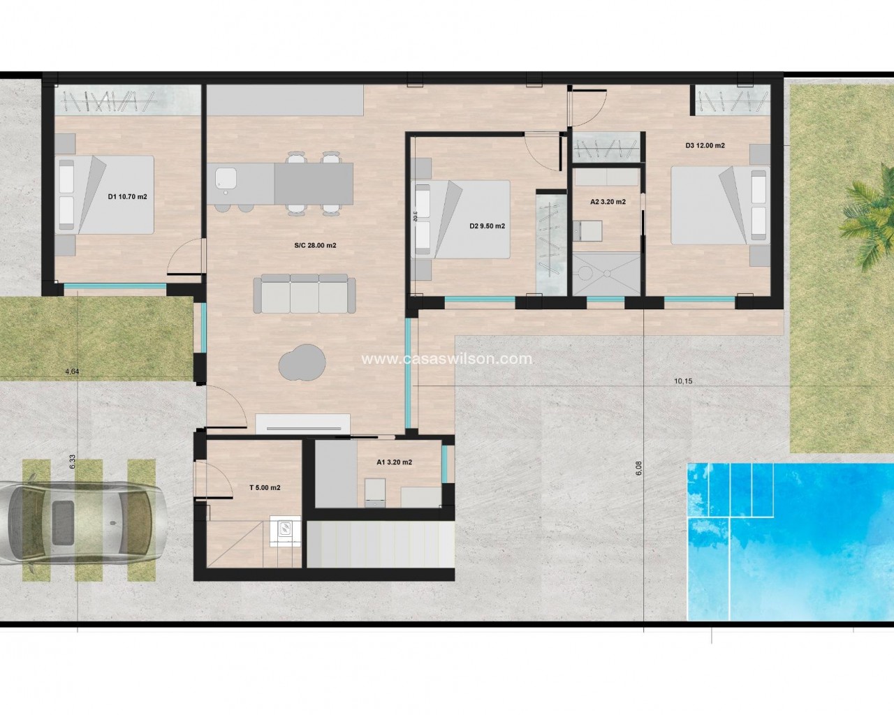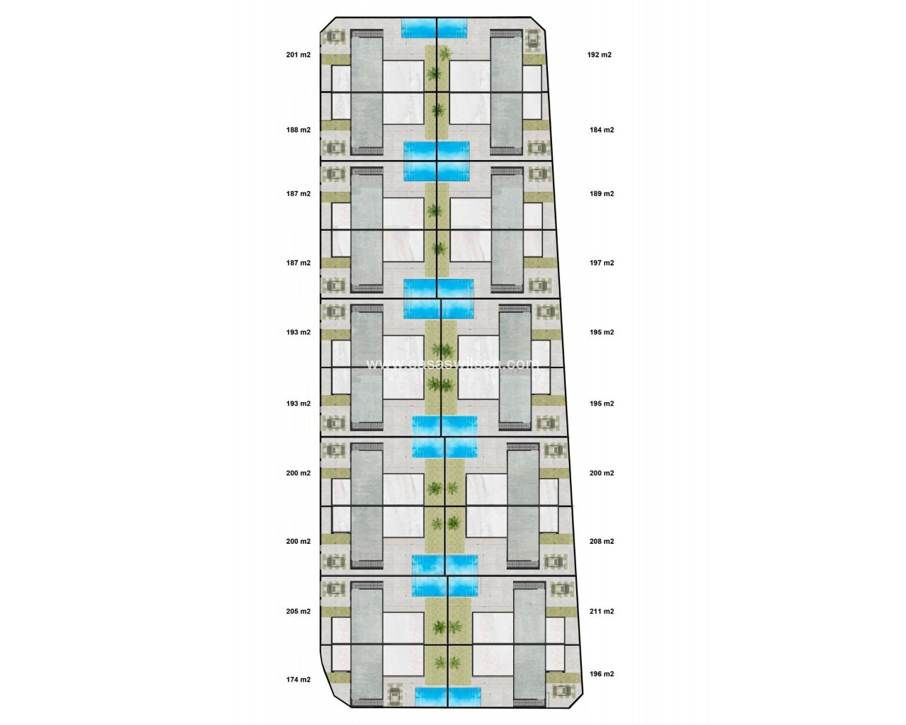 VILLAS JUMELÉES NEUVES À ROLDAN Villas neuves de 3 chambres à coucher avec parking à l'avant, murs en pierre, piscine privée à l'arrière, grand solarium sur le toit et salle de stockage à Roldan, Torre-Pacheco. Les villas sont conçues sur un seul niveau avec un plafond surélevé dans la cuisine, chaque villa dispose d'une terrasse enveloppante / zones ensoleillées au rez-de-chaussée et d'un grand solarium privé au premier étage pour profiter des heures de soleil, tout au long de l'année. 3 chambres à coucher (la chambre principale en-suite) et une salle de bains familiale séparée... conçues dans un style contemporain "éco" et un concept ouvert, comprenant une cuisine équipée et un salon-salle à manger, une pièce de rangement à l'avant et un patio d'été privé. Les villas sont équipées d'une piscine privée à l'arrière avec douche extérieure, d'un solarium, de terrasses, d'une cuisine et d'une salle de bains entièrement équipées avec miroir led, d'armoires doublées avec tiroirs, d'un éclairage intérieur/extérieur et de l'air conditionné préinstallé. Les murs en angle et le revêtement en pierre à l'avant et dans la cage d'escalier donnent du style à cette villa. Le projet est situé dans un quartier résidentiel de Roldan, entouré de services, de parcs, d'installations sportives, de deux terrains de golf et à seulement 12 minutes des superbes plages de la Méditerranée et de la Mar Menor. Il s'agit d'un lotissement sélectif de style signature - seulement 20 villas contemporaines de plain-pied - toutes dotées d'un terrain généreux, d'une piscine privée et d'un solarium sur le toit. Roldan est une ville traditionnelle avec toutes les commodités locales dont vous avez besoin, y compris des supermarchés, des restaurants, des bars, une clinique, une pharmacie, un poste de police, une station-service, des mécaniciens, des dentistes, des médecins et bien d'autres encore. Les stations de golf de La Torre et Terrazas sont facilement accessibles, l'aéroport de Corvera est à 15 minutes et les plages de Mar Menor à 20 minutes en voiture.