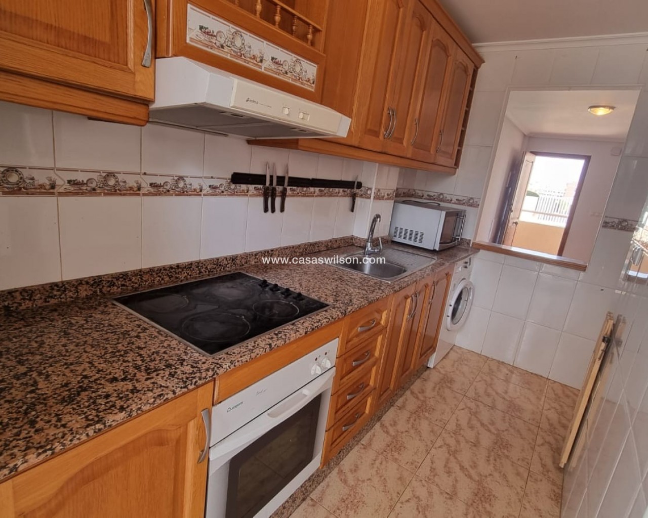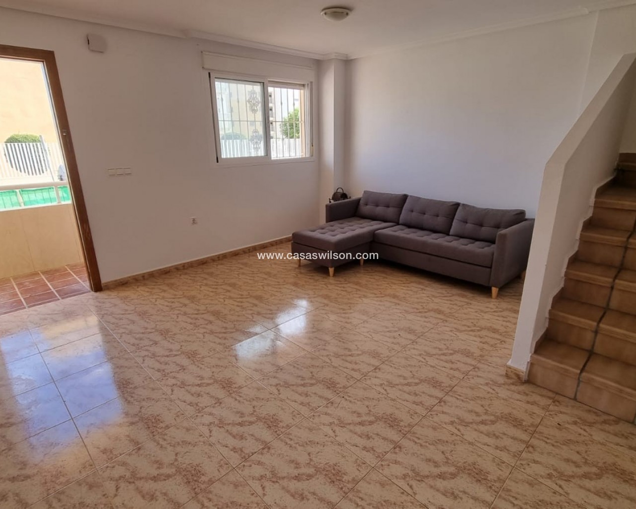 Charmante maison de ville de 3 chambres à Los Dolses – Exposition sud et prête à emménager ! Cette charmante maison de ville exposée plein sud, située rue Cilantro (Los Dolses), est idéale pour ceux qui recherchent confort, luminosité et une authentique ambiance méditerranéenne. Au rez-de-chaussée, vous trouverez un séjour/salle à manger lumineux, une cuisine semi-ouverte donnant sur la terrasse arrière et des toilettes invités. À l'avant de la propriété se trouve une spacieuse terrasse de 25 m² avec un espace de stationnement. Le premier étage comprend deux chambres : la chambre principale dispose d’une salle de bains privative et d’un dressing, tandis que la seconde chambre bénéficie d’une terrasse donnant sur la piscine commune. Deux salles de bains modernes se trouvent également à ce niveau. Le deuxième étage donne accès à un magnifique solarium privatif de 35 m², idéal pour bronzer, se détendre ou prendre ses repas en plein air. Ce bien se situe dans un complexe résidentiel bien entretenu avec piscine commune et offre une surface habitable de 90 m². Les charges annuelles s'élèvent à 191,33 € et les charges de copropriété à 620 €. Ce logement est prêt à être habité et idéal pour une résidence principale, secondaire ou un investissement.