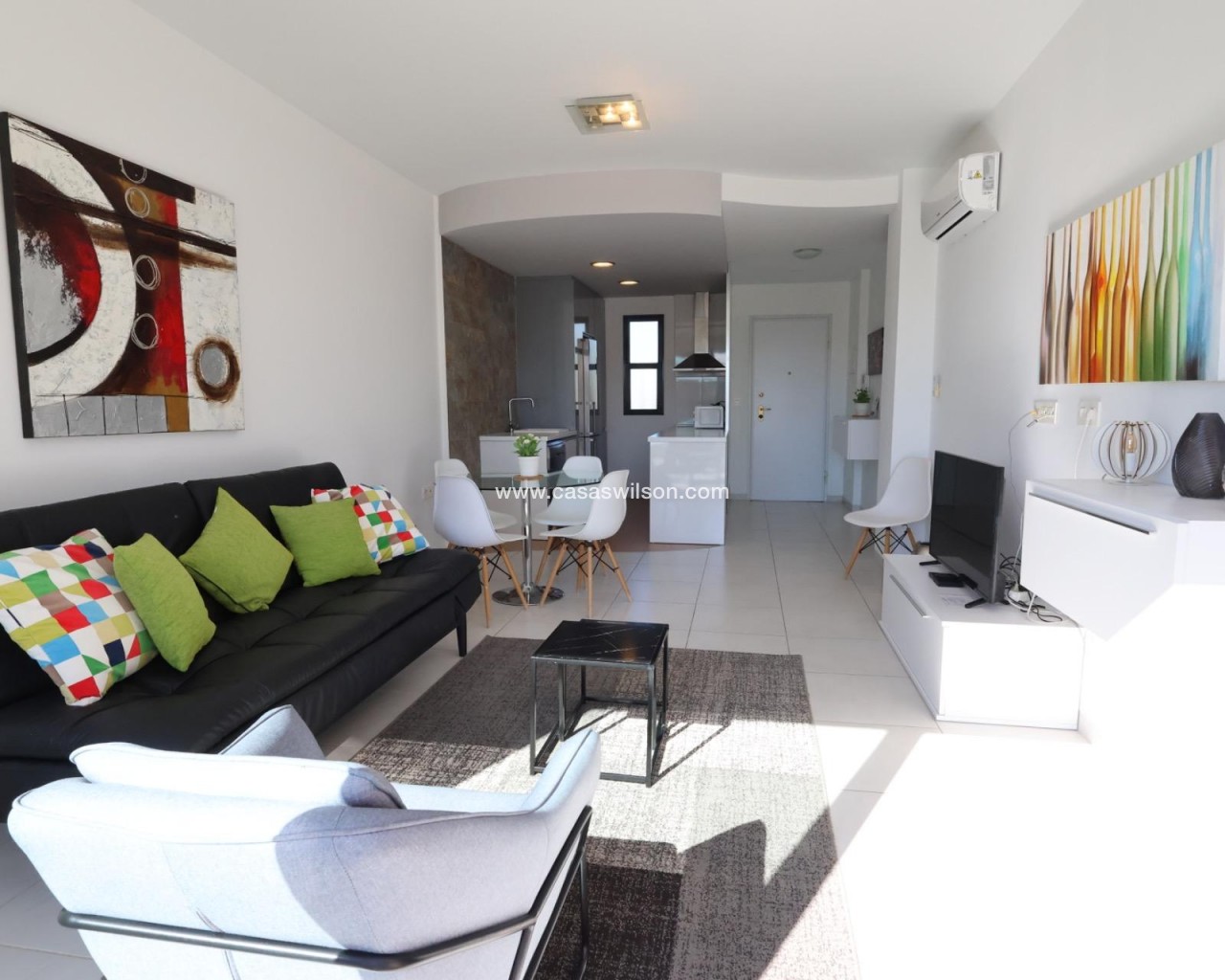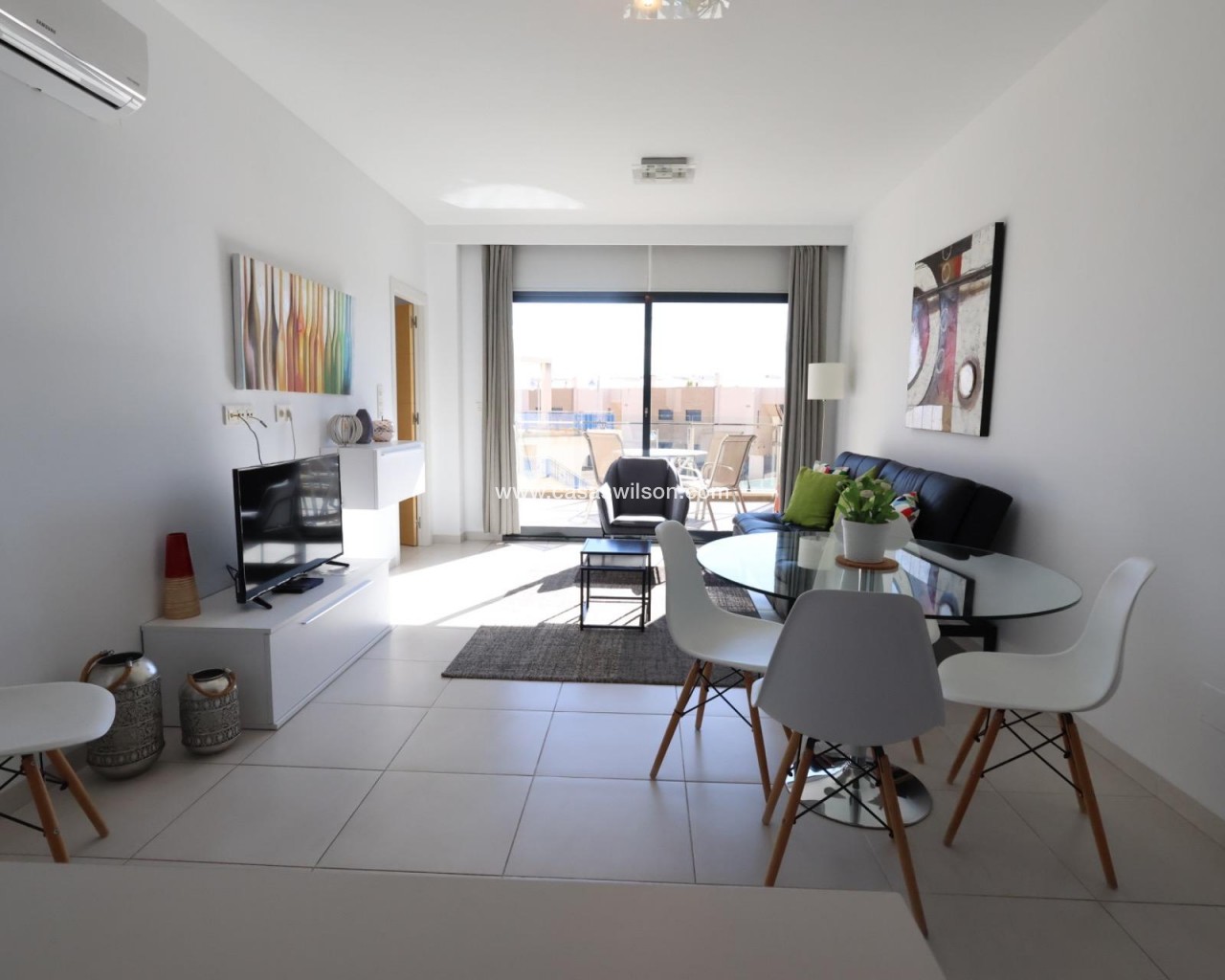 La Zenia, Résidence Sabrina.Appartement de 77 m2 orienté au sud comprenant 2 chambres (dont 1 en suite), 2 salles de bains, un vaste salon-salle à manger, une cuisine américaine ouverte sur le séjour et une terrasse.Le logement est vendu meublé et climatisé. Il dispose de larges espaces communs avec piscine communautaire, ainsi que d’une cave et d’une place de parking.L’appartement possède une licence touristique et génère actuellement d’excellents revenus.