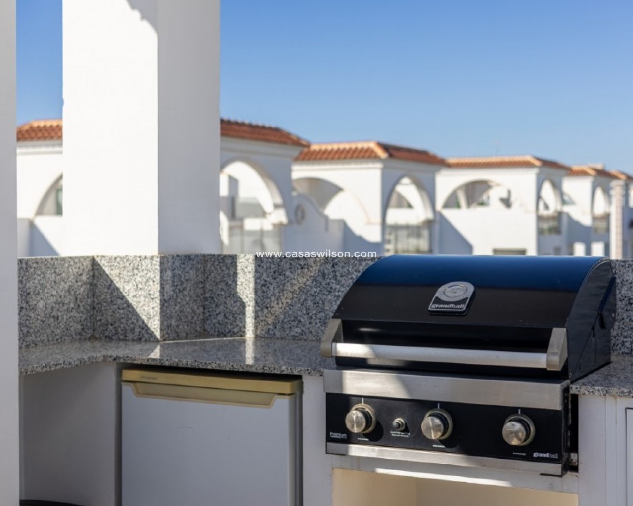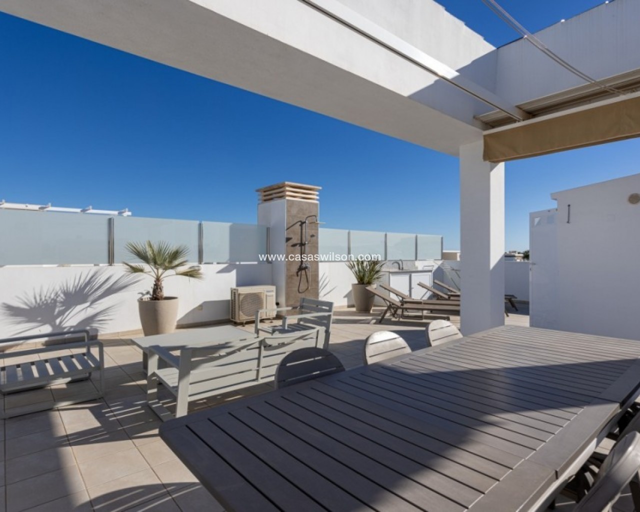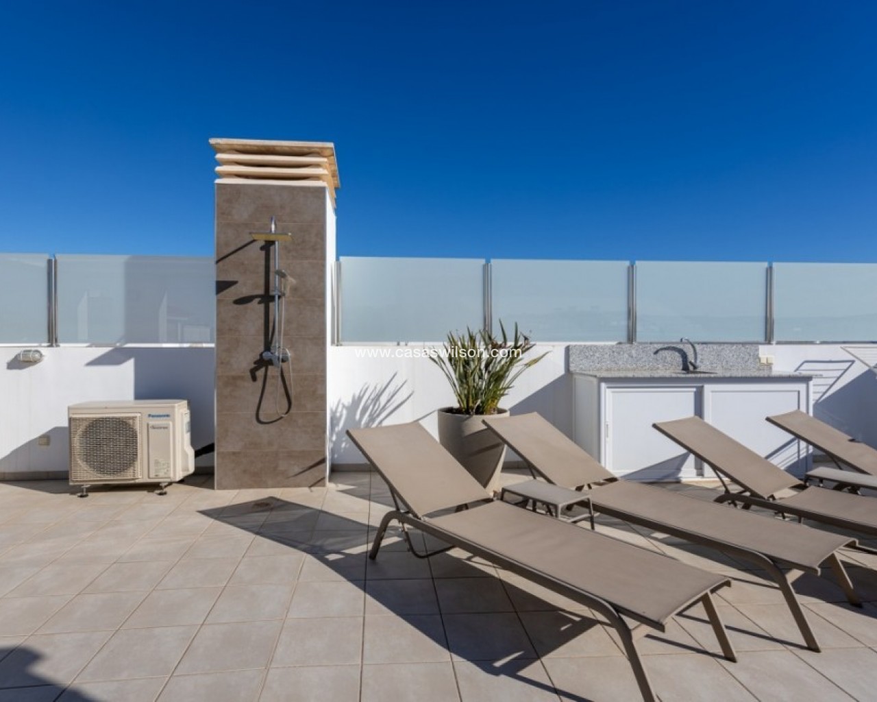 Penthouse de luxe à vendre à Ciudad Quesada – Costa Blanca SudDécouvrez ce superbe penthouse moderne à vendre à Ciudad Quesada , l'un des endroits les plus prisés de la Costa Blanca Sud, en Espagne. Entièrement meublé et équipé, ce bien offre confort, style et vues imprenables : le choix idéal pour une maison de vacances, un investissement ou une résidence principale en Espagne.Aperçu de la propriétéType : Appartement PenthouseLieu : Ciudad Quesada, Rojales – Costa Blanca Sud, AlicanteChambres : 2 spacieuses, entièrement meubléesSalles de bains : 2 modernes et bien aménagéesCuisine : Entièrement équipée avec des appareils haut de gammeEspace de vie : Salon lumineux et spacieux avec une décoration moderneTerrasses : 2 terrasses privatives, dont une avec coin repasSolarium sur le toit : terrasse privée de 78 m² avec vue panoramique sur le lagon et le jardinFonctionnalités exclusives sur le toitCe penthouse exceptionnel avec terrasse privée sur le toit offre tout pour vivre en plein air en Espagne :Grande table à manger avec six chaises et parasol rétractableEnsemble de salon élégant et chaises longuesCuisine extérieure complète avec barbecue, réfrigérateur et évierDouche extérieure avec eau chaude et froideCommunauté et commoditésSituée dans un complexe résidentiel magnifiquement entretenu, la propriété comprend :Trois grandes piscines communesJardins paysagers avec palmiers et espaces vertsAire de jeux et espace fitnessCourts de tennis gratuitsPlace de parking privée dans un domaine sécurisé avec trois portails électriquesEmplacement privilégié sur la Costa BlancaCe penthouse à Ciudad Quesada est idéalement situé à proximité de toutes les commodités — supermarchés, restaurants, terrains de golf et centres médicaux — et à quelques minutes en voiture de la côte :Torrevieja : 5 minutesGuardamar del Segura : 10 minutes – célèbre pour ses plages de sable doréGolf de La Marquesa: à proximitéExcellente connectivitéAéroport d'Alicante-Elche : 30 minutesAéroport de Murcie-Corvera : 1 heurePourquoi choisir cette propriétéCe penthouse de luxe à vendre sur la Costa Blanca allie design moderne, confort et emplacement privilégié. Que vous recherchiez un appartement de vacances en Espagne , un investissement locatif ou une maison au soleil , ce bien offre un rapport qualité-prix et un style de vie exceptionnels.