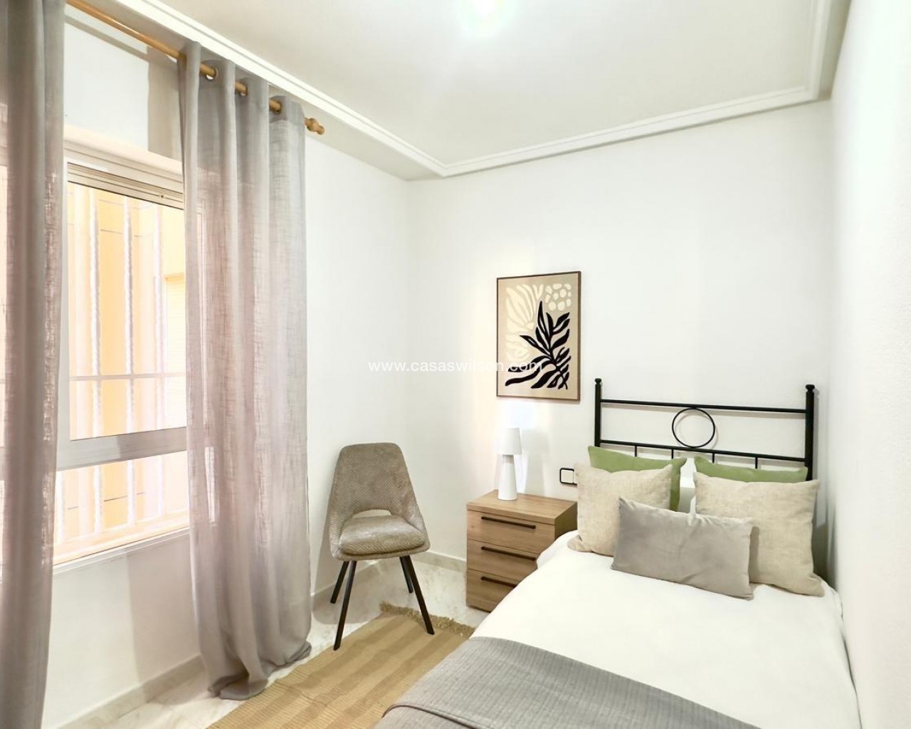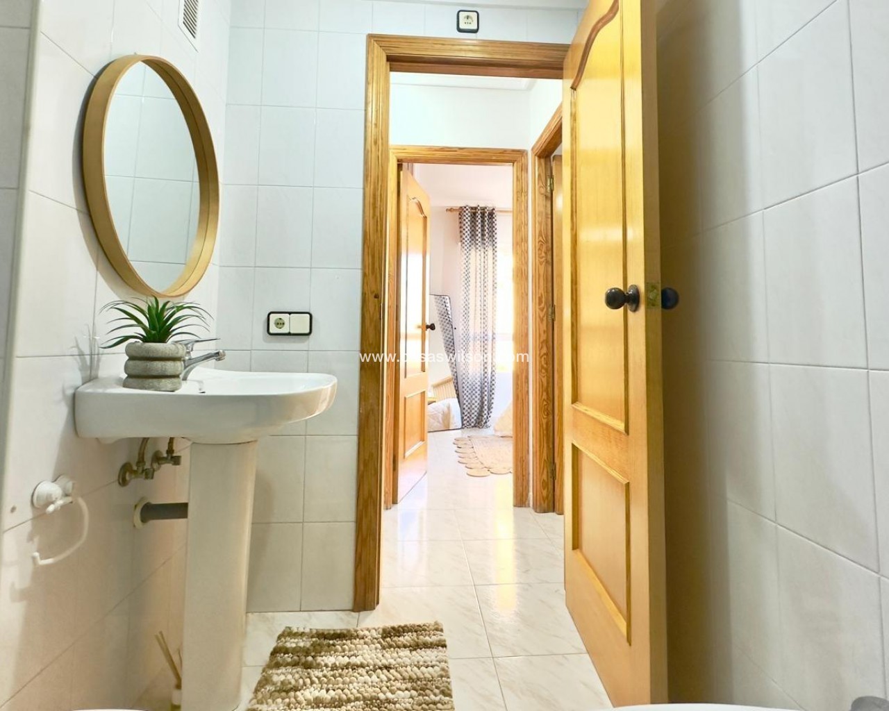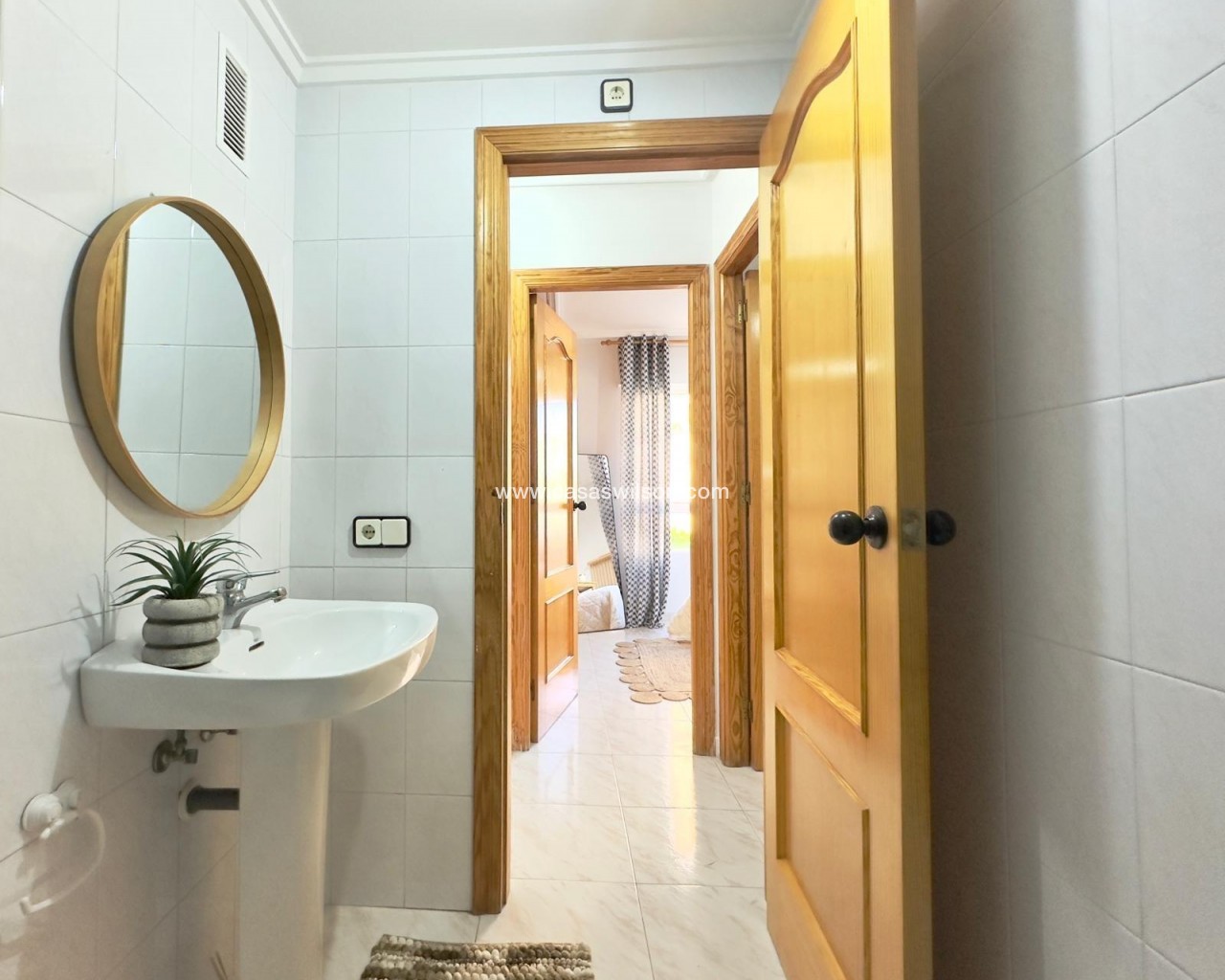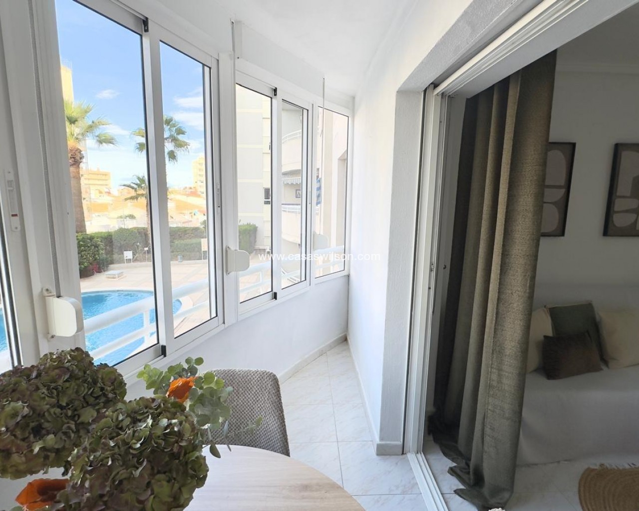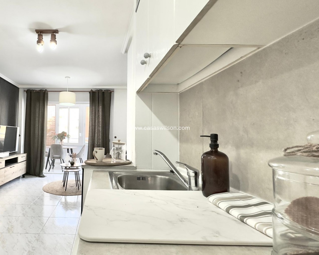 Magnifique appartement rénové au premier étage, au design moderne – Nueva Torrevieja, avec piscine commune et terrasse vitrée Nous vous présentons ce fantastique appartement au premier étage, situé dans le quartier prisé de Nueva Torrevieja. Récemment rénové, il présente un design élégant et contemporain, prêt à emménager. Ce bien se distingue par son excellent agencement et ses finitions de qualité. Il dispose de trois chambres, idéales pour les familles, les réceptions, ou comme bureau ou espace de travail. La salle de bain, équipée d'une baignoire, allie confort et fonctionnalité. L'espace de vie offre une atmosphère ouverte et accueillante, où le salon-salle à manger et la cuisine s'intègrent parfaitement dans un espace ouvert unique, offrant plus d'espace et de luminosité. La cuisine moderne et contemporaine donne directement sur la terrasse vitrée, un espace polyvalent et protégé, idéal pour profiter de la vie toute l'année. Depuis la terrasse, vous profiterez d'une agréable vue sur la piscine commune, procurant une sensation de tranquillité et de bien-être supplémentaire. Orientée ouest, la maison bénéficie d'un ensoleillement et d'une lumière naturelle l'après-midi, ce qui la rend particulièrement accueillante. De plus, la résidence offre à ses résidents une piscine commune, idéale pour se rafraîchir en été, se détendre et profiter d'un environnement agréable et sécurisé. Située dans le quartier calme de Nueva Torrevieja, la propriété est proche de toutes les commodités : supermarchés, centres médicaux, pharmacies, restaurants et transports en commun, et à seulement quelques minutes en voiture des plages et du centre-ville de Torrevieja. Une maison idéale, aussi bien comme résidence principale que comme investissement locatif, offrant tout le confort nécessaire : design moderne, espaces spacieux, piscine commune et terrasse vitrée.