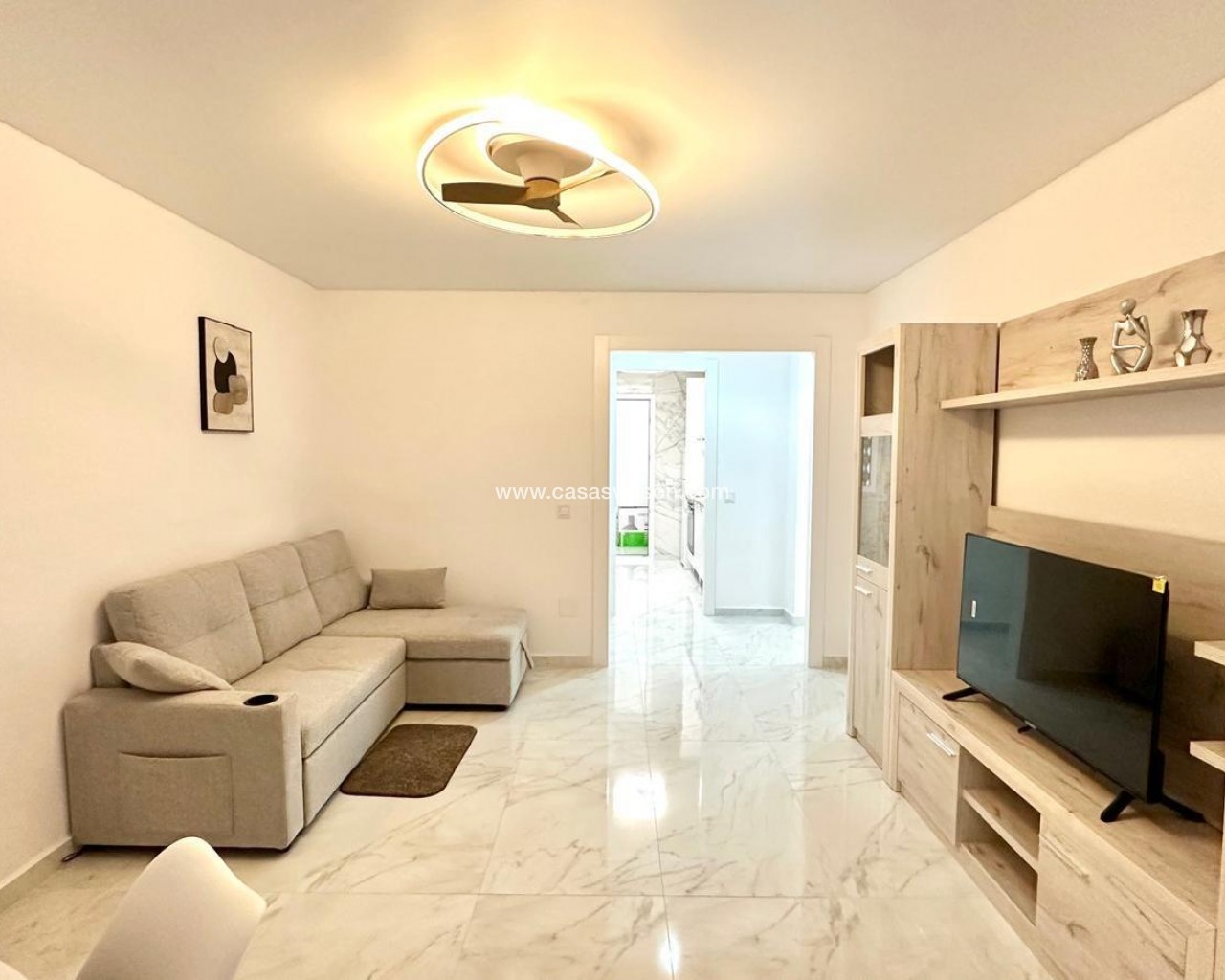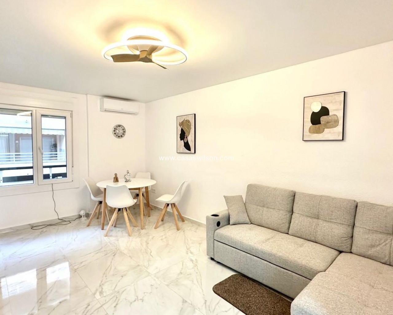 Appartement lumineux rénové à seulement 300 mètres de la plage Situé à seulement 300 mètres de la plage, ce magnifique appartement combine un excellent emplacement avec une distribution confortable et fonctionnelle, idéale aussi bien pour vivre toute l'année que pour profiter de séjours de vacances au bord de la mer. Le logement se trouve au deuxième étage sans ascenseur et a été rénové avec beaucoup de goût, offrant un style actuel et accueillant. Il dispose d'une surface parfaitement exploitée qui abrite trois chambres spacieuses et deux salles de bains complètes, dont une en suite, ce qui apporte plus d'intimité et de confort à la chambre principale. Le salon-salle à manger se distingue par sa luminosité grâce à sa terrasse orientée à l'est, qui permet de profiter du soleil du matin et d'une vue dégagée agréable, créant une atmosphère chaleureuse et confortable. Cet espace devient le cœur de la maison, idéal pour partager des moments en famille ou entre amis. La maison dispose également d'une cuisine indépendante, entièrement équipée et donnant accès à une galerie fonctionnelle, qui offre un espace supplémentaire pour le rangement ou la buanderie, apportant ainsi plus de confort au quotidien. L'une des particularités de cette propriété est qu'elle dispose également d'une deuxième terrasse orientée à l'ouest, parfaite pour profiter de la lumière de l'après-midi et des couchers de soleil, ce qui permet de bénéficier d'une lumière naturelle tout au long de la journée grâce à sa double orientation. En résumé, cet appartement représente une excellente opportunité d'acquérir un logement confortable, rénové et bénéficiant d'un emplacement privilégié, très proche de la mer et de tous les services à quelques pas : commerces, restaurants, supermarchés et transports publics. Une option idéale pour ceux qui recherchent un logement prêt à emménager dans l'un des quartiers les plus prisés de la côte.