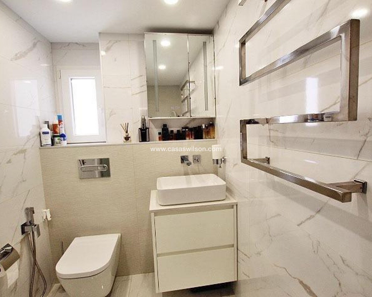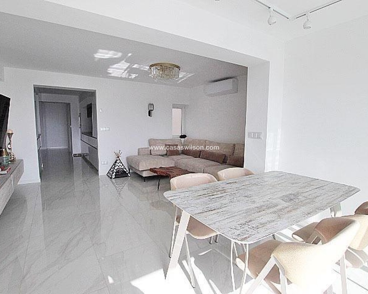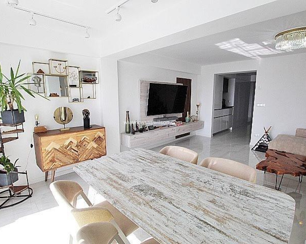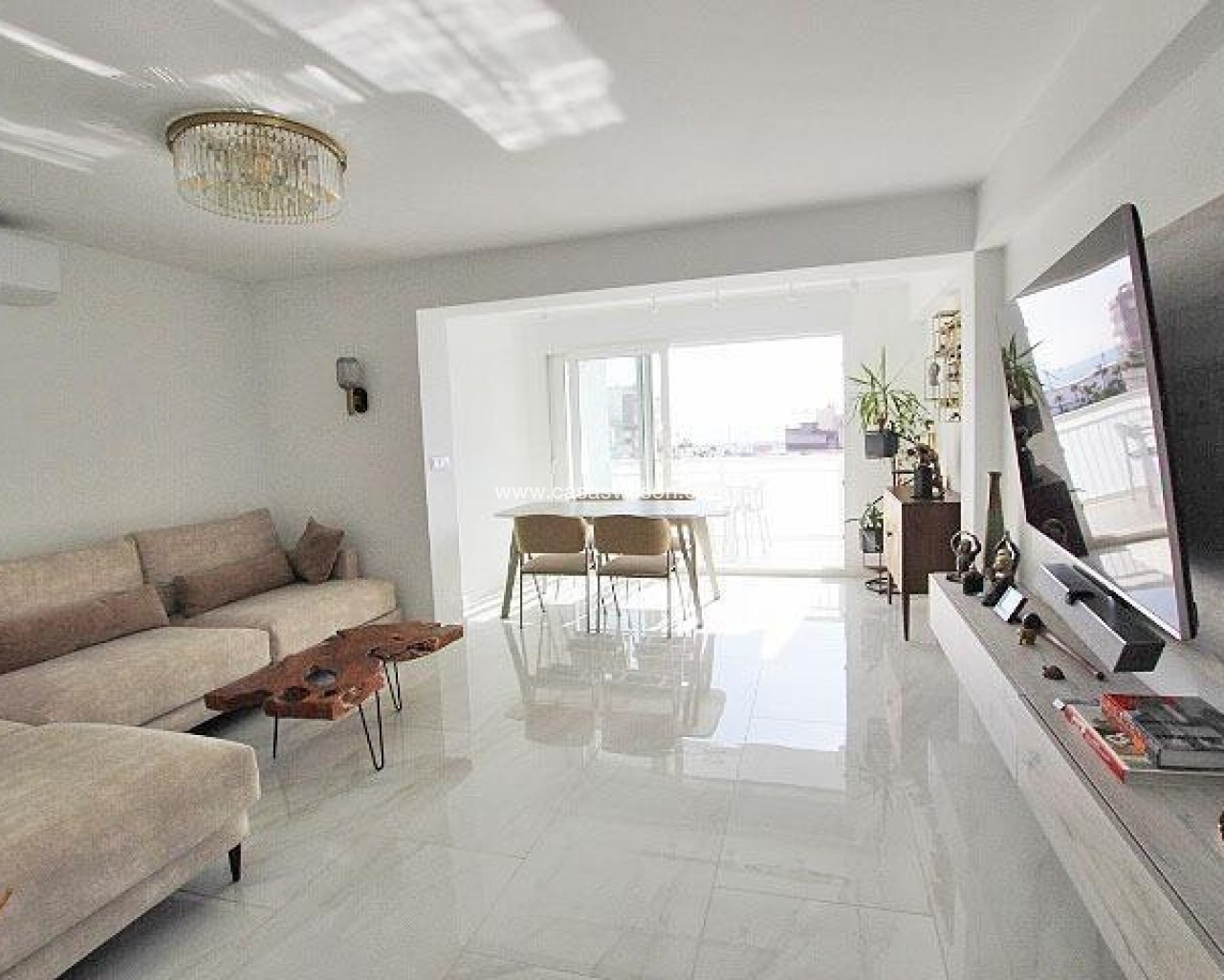 En plein centre de Torrevieja, dans l'un de ses quartiers les plus privilégiés et dynamiques, se trouve ce spectaculaire penthouse, une propriété qui allie modernité, confort et emplacement imbattable. Situé à seulement 200 mètres de la plage et avec vue sur le nouveau port, cet immeuble offre un style de vie exclusif, caractérisé par la luminosité, l'espace et la proximité de la mer. Son orientation sud garantit un éclairage naturel pratiquement toute la journée, créant une atmosphère chaleureuse et accueillante dans toutes les pièces. La maison, récemment rénovée avec des finitions de haute qualité, dispose de 100 m² répartis de manière intelligente et fonctionnelle, offrant des espaces spacieux et modernes qui s'adaptent parfaitement à la vie quotidienne ainsi qu'aux moments de détente et de plaisir. Elle dispose de deux chambres, toutes deux au design élégant et contemporain. L'une d'elles dispose d'une salle de bain attenante, ce qui apporte un plus en termes d'intimité et de confort, ainsi que des armoires encastrées qui optimisent l'espace de rangement. La propriété comprend deux salles de bains complètes, équipées dans un style moderne et pratique, idéales pour la vie quotidienne et parfaitement intégrées dans le design général du penthouse. Chaque détail a été soigneusement sélectionné pour offrir confort et fonctionnalité, sans renoncer à l'esthétique contemporaine. La cuisine, de style français et entièrement équipée, se distingue par son élégance et son intégration pratique dans l'ensemble de la maison. Son concept allie esthétique et performance, offrant un espace parfait pour cuisiner, recevoir des invités ou simplement profiter du quotidien dans un cadre agréable. L'un des points forts de l'appartement est sa grande terrasse, un espace qui devient le véritable cœur de la propriété. De là, vous pouvez profiter de la vue sur le nouveau port, du climat méditerranéen et créer un cadre idéal pour les réunions, les moments de détente ou les repas en plein air. L'orientation sud met encore plus en valeur cet espace, le baignant de lumière et le rendant particulièrement attrayant. La maison dispose également d'un chauffage au sol dans toute la propriété, un élément qui apporte un confort exceptionnel pendant les mois les plus frais, et de la climatisation dans toutes les pièces, garantissant une ambiance parfaite tout au long de l'année. Dans l'ensemble, cet appartement-terrasse situé dans le centre de Torrevieja représente une opportunité unique pour ceux qui recherchent une propriété moderne, rénovée, lumineuse et bénéficiant d'un emplacement privilégié en bord de mer. Son design contemporain, ses finitions de qualité et ses caractéristiques exclusives en font une maison idéale pour vivre toute l'année ou comme résidence de luxe dans l'un des endroits les plus prisés de la ville.