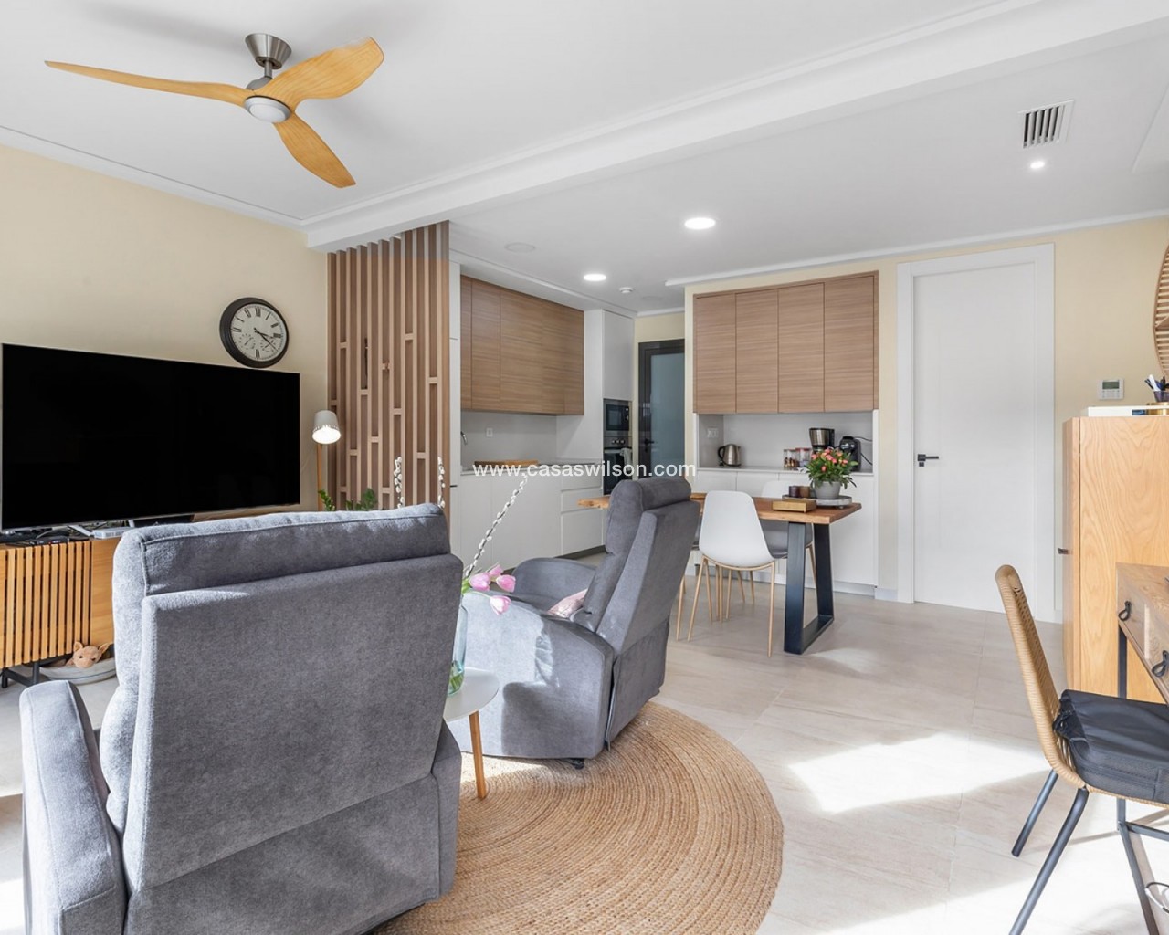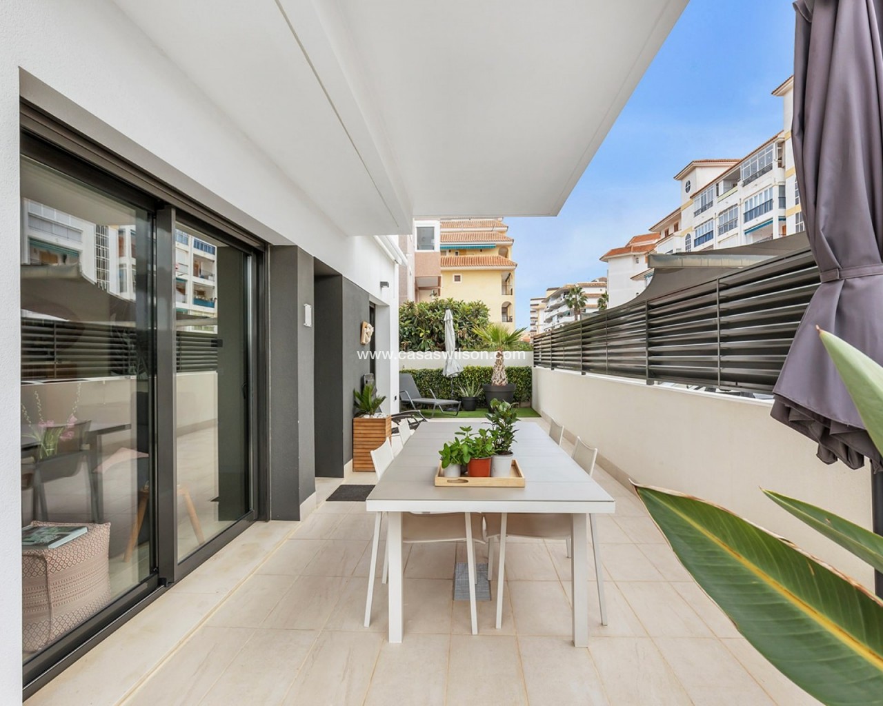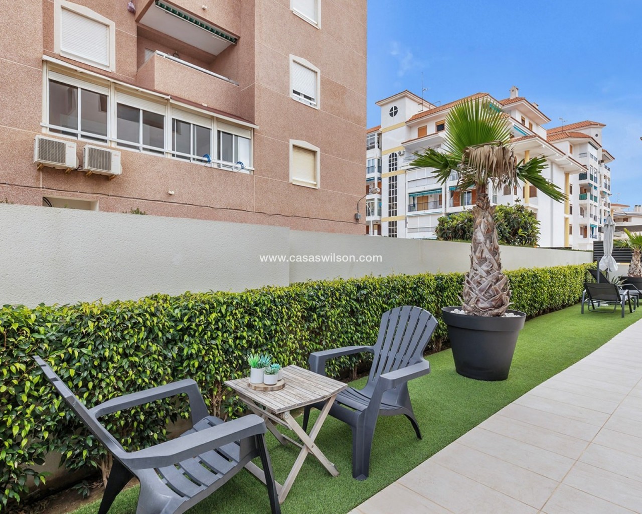 Cet appartement neuf au rez-de-chaussée à La Mata est vendu entièrement prêt à emménager (clé en main) et se trouve dans une petite résidence bien entretenue à quelques pas de la plage. La maison combine confort moderne, finitions de qualité et style de vie méditerranéen agréable. L'appartement a deux chambres spacieuses et lumineuses et deux salles de bains modernes avec douche à l'italienne, pour un confort et une intimité optimaux. L'espace de vie élégant avec cuisine ouverte entièrement équipée s'intègre parfaitement à l'espace extérieur et crée une sensation d'espace et de luminosité. Le grand jardin privé prolonge naturellement l'espace de vie et offre suffisamment de place pour un coin salon et un coin repas, idéal pour profiter toute l'année de la vie en plein air sur la Costa Blanca. La propriété est vendue entièrement meublée et équipée. L'appartement dispose également d'une place de parking privée devant l'immeuble et d'un débarras privé au sous-sol, tous deux inclus dans le prix. Les résidents peuvent également utiliser la piscine commune de la résidence. Grâce à son super emplacement à La Mata, près de la plage et de toutes les commodités, cet appart est parfait comme résidence secondaire, investissement ou maison permanente sur la Costa Blanca.