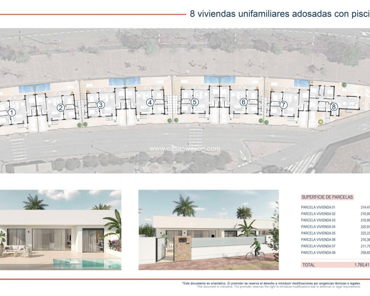 Villas jumelées neuves à Sucina : dernière unité entièrement équipée et prête à emménager Opportunité exceptionnelle à Sucina C'est l'occasion d'acquérir la dernière unité disponible dans ce nouveau complexe moderne, précédemment utilisé comme maison témoin. Elle est prête à emménager et livrée entièrement équipée avec mobilier, appareils électroménagers, éclairage intérieur et extérieur, climatisation, chargeur de voiture électrique et cuisine d'été extérieure avec réfrigérateur. Une opportunité unique clé en main dans l'une des villes les plus charmantes de la Costa Calida. Un design contemporain axé sur la lumière et le confort Ces villas jumelées se distinguent par leur design contemporain élégant et épuré, avec des agencements créés pour maximiser la lumière naturelle méditerranéenne. Les pièces à vivre principales sont conçues selon un concept ouvert où la cuisine et le salon se fondent harmonieusement, reliés par un îlot central élégant. Cet espace s'ouvre directement sur le porche et la terrasse de la piscine, créant un style de vie harmonieux entre intérieur et extérieur, idéal pour les journées ensoleillées. Vivre de plain-pied avec piscine privée et solarium La villa comprend 3 chambres et 2 salles de bains sur un seul étage, ainsi que des toilettes extérieures pratiques pour les invités près de la piscine. La chambre principale est exceptionnellement lumineuse et dispose d'une salle de bains attenante, d'un dressing et d'un accès direct à la terrasse principale. La propriété dispose également d'un impressionnant solarium de 82 m2, parfait pour prendre le soleil ou créer un salon extérieur. Construite sur un terrain de 211 m2, la villa dispose d'un parking privé à l'intérieur du terrain. Emplacement privilégié à proximité de tous les services Située à quelques pas du centre de Sucina, la villa offre un accès immédiat aux commodités quotidiennes telles que les magasins, les restaurants et les supermarchés. Sucina est une ville espagnole traditionnelle qui a gagné en popularité ces dernières années en raison de son mode de vie détendu, de son atmosphère authentique et de sa proximité avec la côte. Les belles plages de la Costa Calida et de la Mar Menor ne sont qu'à quelques minutes. Distances par rapport aux principaux points d'intérêt Aéroport de Murcie 25 km Aéroport d'Alicante 75 km Plages de la Mar Menor 15 km Terrain de golf le plus proche 4 km Port de San Pedro del Pinatar 20 km Vivez un style de vie méditerranéen de grande qualité Construites avec des matériaux d'excellente qualité et conçues pour le confort, ces villas offrent une occasion exceptionnelle de profiter d'espaces ouverts, de la lumière naturelle et d'un air pur tout au long de l'année. Contactez-nous dès aujourd'hui pour organiser une visite et acquérir cette maison exclusive prête à emménager à Sucina.