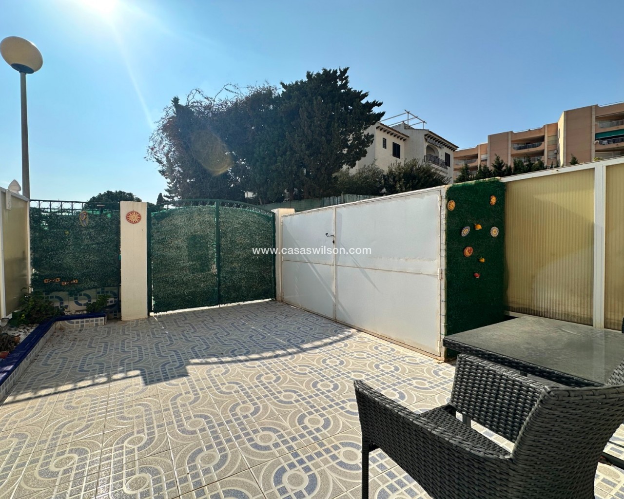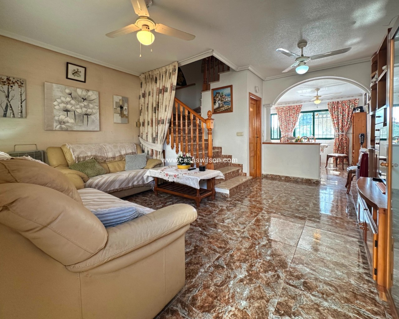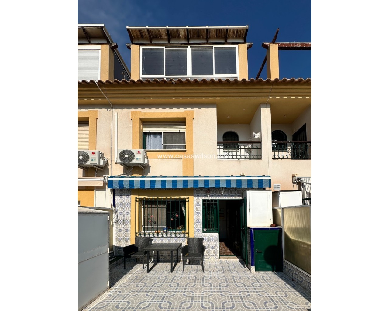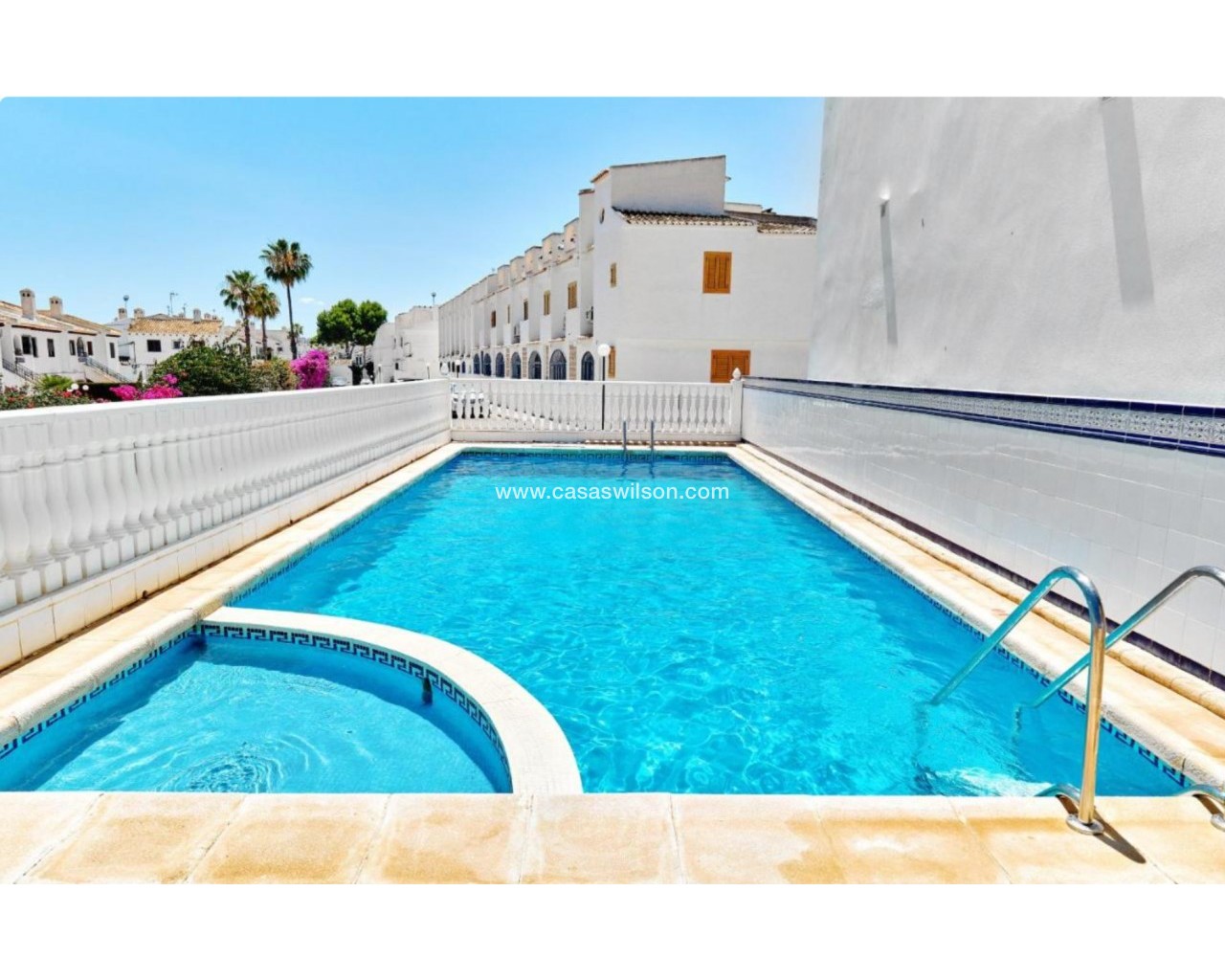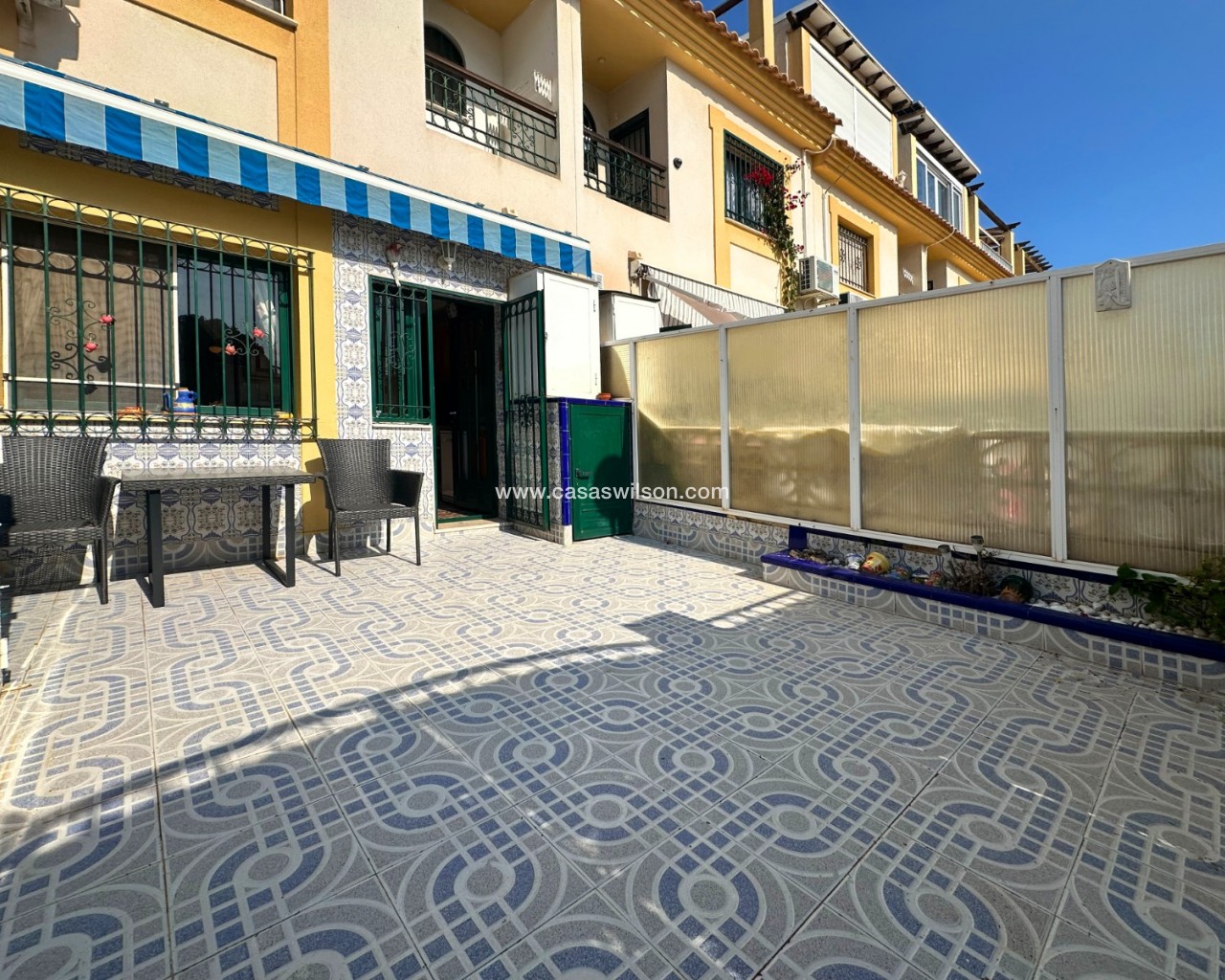 Cette charmante maison mitoyenne offre un mélange idéal d'espace, de confort et de proximité avec la côte, parfaite pour ceux qui recherchent un mode de vie à la fois tranquille et pratique sur la côte d'Orihuela. Intérieur : D'une superficie de 100 m², cette maison spacieuse comprend 3 chambres et 2 salles de bains, offrant ainsi un vaste espace de vie pour les familles ou ceux qui souhaitent disposer d'une chambre supplémentaire pour leurs invités. L'une des salles de bains est équipée d'une baignoire, tandis que le rez-de-chaussée dispose de toilettes pratiques pour plus de commodité. Salon : Un grand salon offre un espace confortable pour se détendre et recevoir, baigné de lumière naturelle provenant de la terrasse avant. Cuisine : La cuisine semi-indépendante avec coin repas intégré est entièrement équipée et donne accès au jardin/patio arrière, idéal pour un espace de rangement supplémentaire en extérieur ou un coin de détente au calme. Espace extérieur : Profitez de la vie en plein air grâce à une terrasse à l'avant, parfaite pour les repas en plein air ou la détente. La propriété dispose également d'un vaste jardin à l'arrière et d'un parking privé au sein d'une résidence sécurisée, ainsi que d'un accès à une grande piscine commune pour votre confort. La propriété comprend un solarium fermé, ce qui en fait l'endroit idéal pour se détendre et recevoir, ainsi qu'un espace pratique pouvant servir de 4e chambre. Exposition : orientée sud-est, garantissant un environnement ensoleillé et confortable tout au long de la journée. Meublé : La propriété est vendue meublée, ce qui vous permet d'emménager immédiatement et de commencer à profiter de votre nouvelle maison. Chauffage : Chauffage et climatisation dans toute la propriété. Emplacement : La propriété se trouve à quelques minutes à pied d'une gamme de commodités locales, notamment des supermarchés, des banques, des pharmacies, ainsi qu'un large choix de bars, de restaurants et de lignes de bus. Ce duplex offre la combinaison idéale entre commodité et détente dans un emplacement de choix près de la mer, ce qui en fait un excellent investissement pour toute personne recherchant un style de vie balnéaire. C'est une opportunité fantastique d'acquérir une magnifique maison dans l'un des quartiers les plus prisés de la Costa Blanca. Ne passez pas à côté : prenez rendez-vous dès aujourd'hui pour une visite !