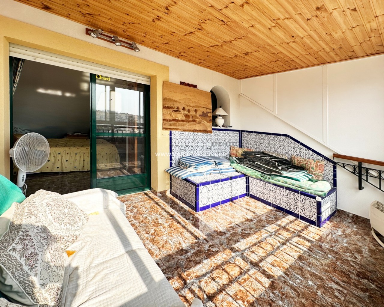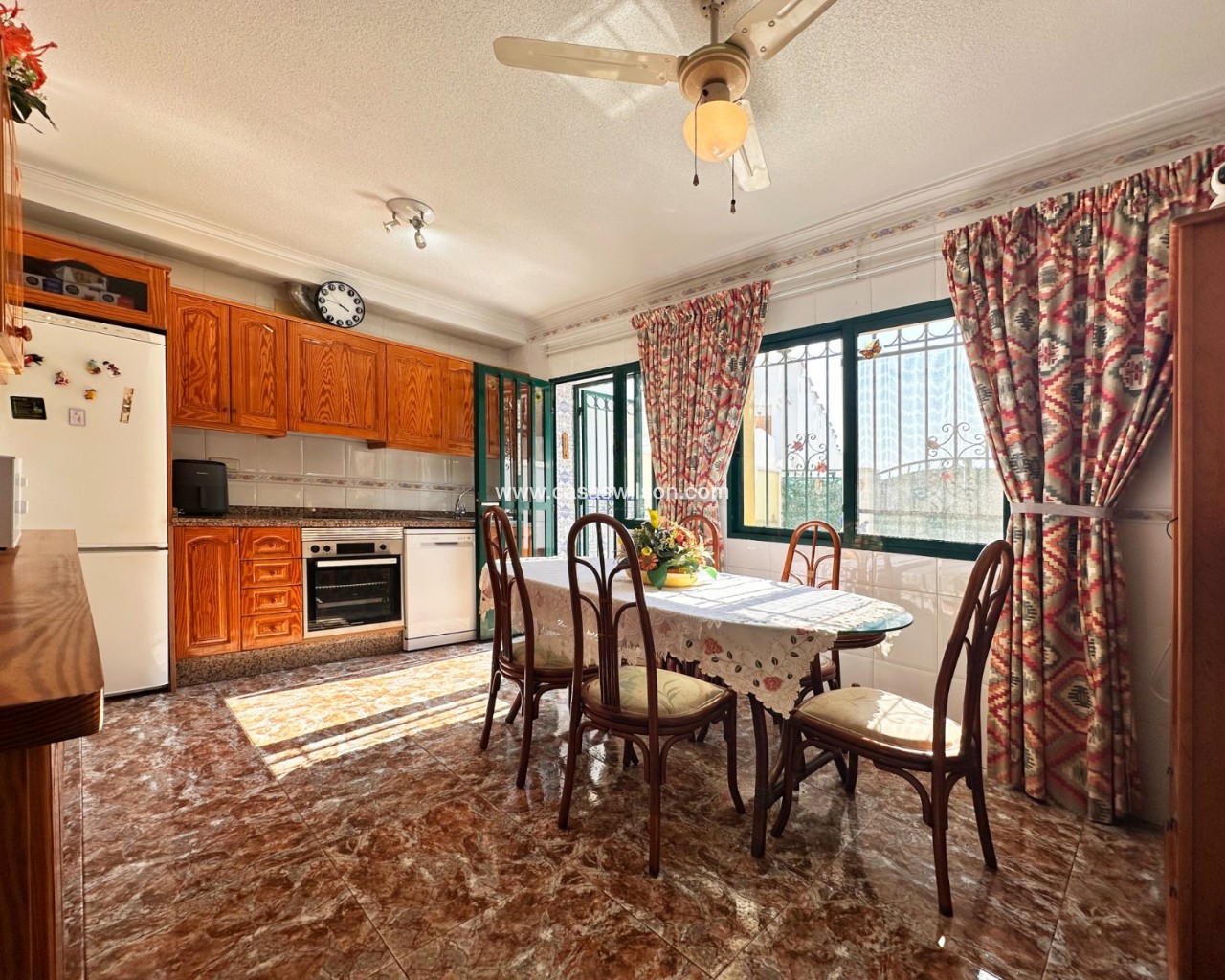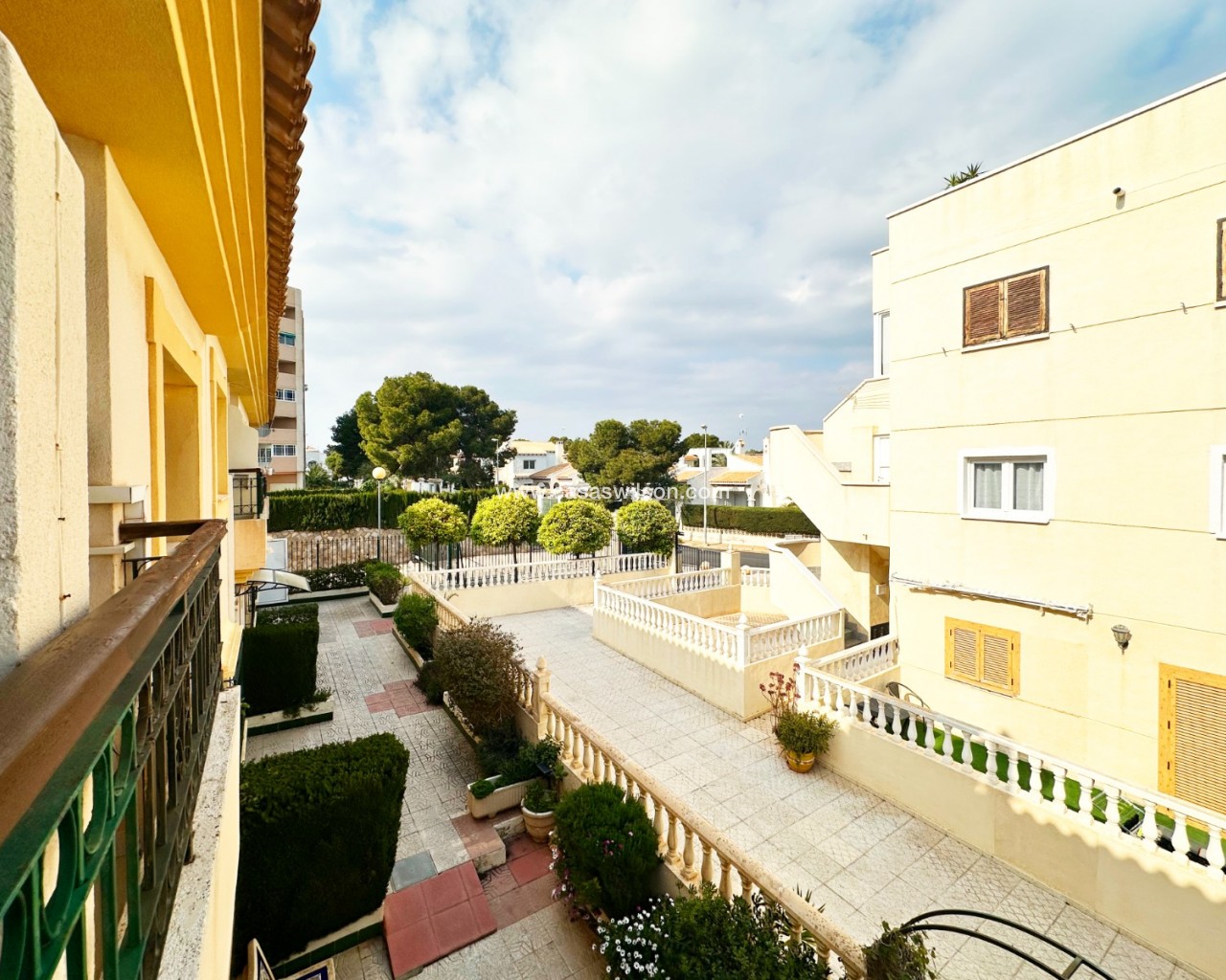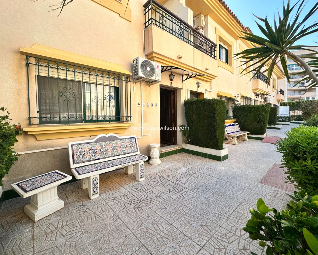 Cette charmante maison mitoyenne offre un mélange idéal d'espace, de confort et de proximité avec la côte, parfaite pour ceux qui recherchent un mode de vie à la fois tranquille et pratique sur la côte d'Orihuela. Intérieur : D'une superficie de 100 m², cette maison spacieuse comprend 3 chambres et 2 salles de bains, offrant ainsi un vaste espace de vie pour les familles ou ceux qui souhaitent disposer d'une chambre supplémentaire pour leurs invités. L'une des salles de bains est équipée d'une baignoire, tandis que le rez-de-chaussée dispose de toilettes pratiques pour plus de commodité. Salon : Un grand salon offre un espace confortable pour se détendre et recevoir, baigné de lumière naturelle provenant de la terrasse avant. Cuisine : La cuisine semi-indépendante avec coin repas intégré est entièrement équipée et donne accès au jardin/patio arrière, idéal pour un espace de rangement supplémentaire en extérieur ou un coin de détente au calme. Espace extérieur : Profitez de la vie en plein air grâce à une terrasse à l'avant, parfaite pour les repas en plein air ou la détente. La propriété dispose également d'un vaste jardin à l'arrière et d'un parking privé au sein d'une résidence sécurisée, ainsi que d'un accès à une grande piscine commune pour votre confort. La propriété comprend un solarium fermé, ce qui en fait l'endroit idéal pour se détendre et recevoir, ainsi qu'un espace pratique pouvant servir de 4e chambre. Exposition : orientée sud-est, garantissant un environnement ensoleillé et confortable tout au long de la journée. Meublé : La propriété est vendue meublée, ce qui vous permet d'emménager immédiatement et de commencer à profiter de votre nouvelle maison. Chauffage : Chauffage et climatisation dans toute la propriété. Emplacement : La propriété se trouve à quelques minutes à pied d'une gamme de commodités locales, notamment des supermarchés, des banques, des pharmacies, ainsi qu'un large choix de bars, de restaurants et de lignes de bus. Ce duplex offre la combinaison idéale entre commodité et détente dans un emplacement de choix près de la mer, ce qui en fait un excellent investissement pour toute personne recherchant un style de vie balnéaire. C'est une opportunité fantastique d'acquérir une magnifique maison dans l'un des quartiers les plus prisés de la Costa Blanca. Ne passez pas à côté : prenez rendez-vous dès aujourd'hui pour une visite !