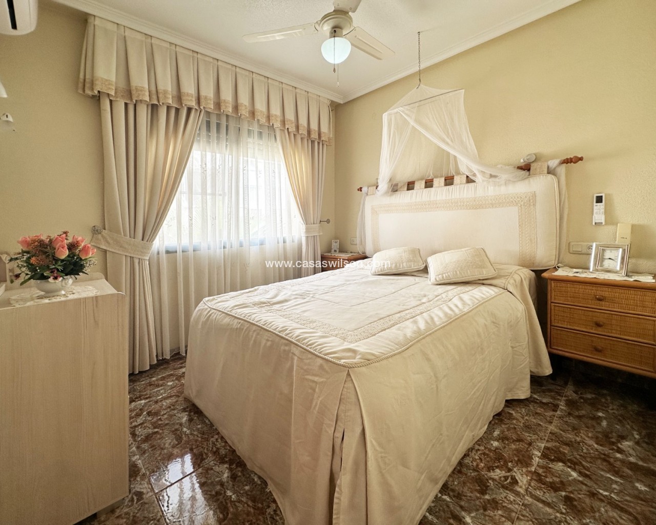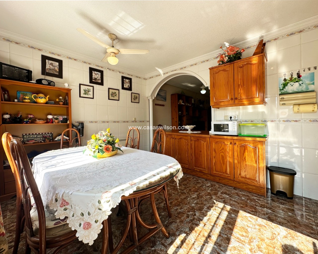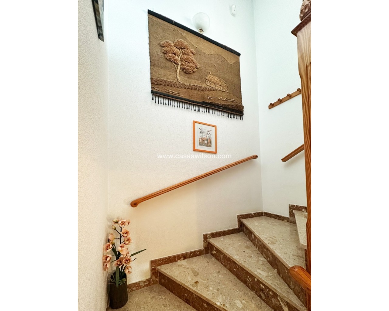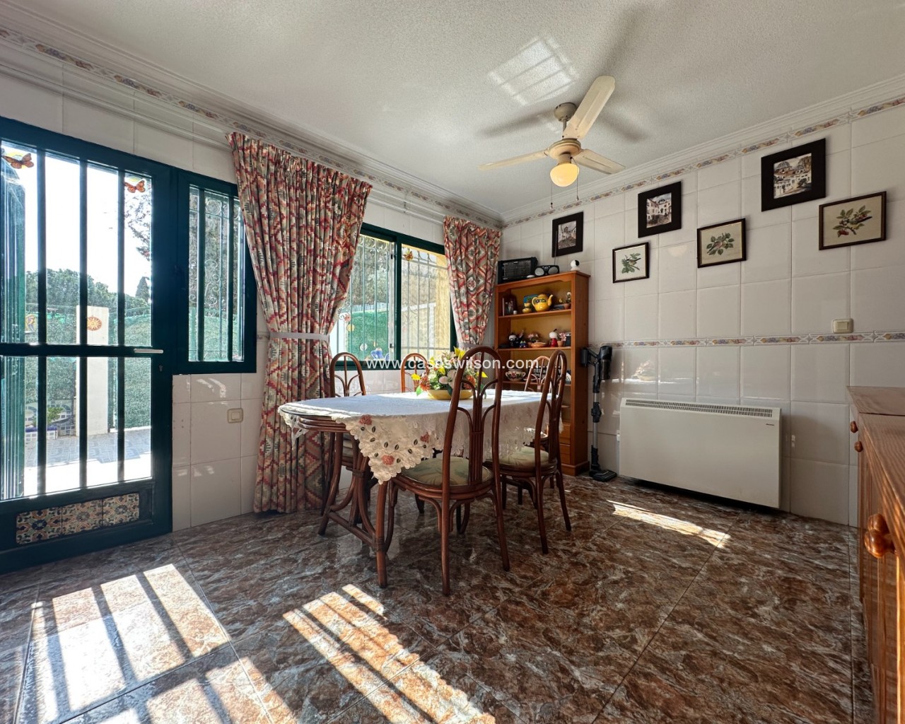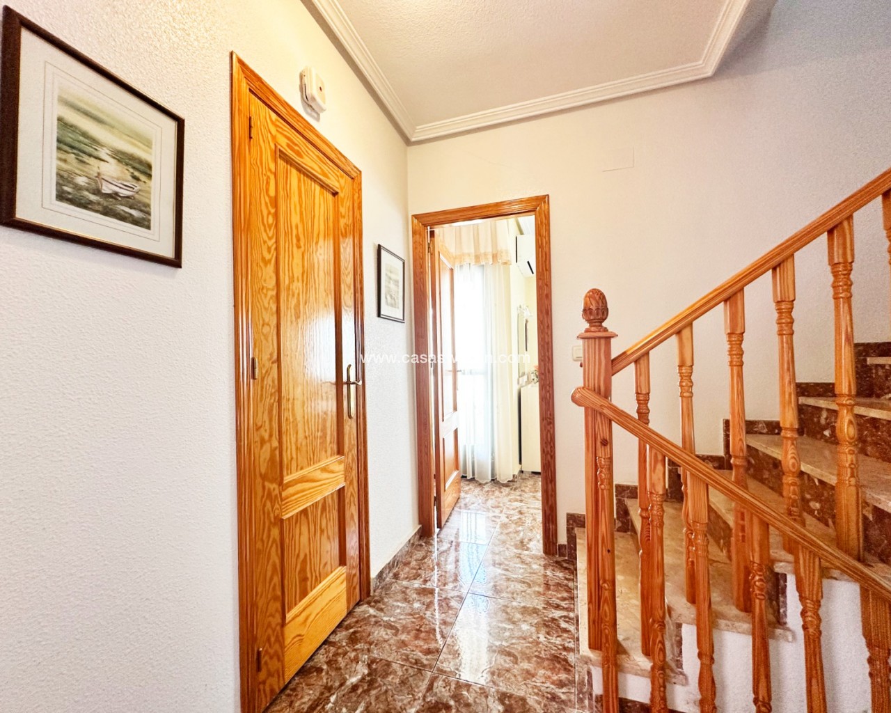 Cette charmante maison mitoyenne offre un mélange idéal d'espace, de confort et de proximité avec la côte, parfaite pour ceux qui recherchent un mode de vie à la fois tranquille et pratique sur la côte d'Orihuela. Intérieur : D'une superficie de 100 m², cette maison spacieuse comprend 3 chambres et 2 salles de bains, offrant ainsi un vaste espace de vie pour les familles ou ceux qui souhaitent disposer d'une chambre supplémentaire pour leurs invités. L'une des salles de bains est équipée d'une baignoire, tandis que le rez-de-chaussée dispose de toilettes pratiques pour plus de commodité. Salon : Un grand salon offre un espace confortable pour se détendre et recevoir, baigné de lumière naturelle provenant de la terrasse avant. Cuisine : La cuisine semi-indépendante avec coin repas intégré est entièrement équipée et donne accès au jardin/patio arrière, idéal pour un espace de rangement supplémentaire en extérieur ou un coin de détente au calme. Espace extérieur : Profitez de la vie en plein air grâce à une terrasse à l'avant, parfaite pour les repas en plein air ou la détente. La propriété dispose également d'un vaste jardin à l'arrière et d'un parking privé au sein d'une résidence sécurisée, ainsi que d'un accès à une grande piscine commune pour votre confort. La propriété comprend un solarium fermé, ce qui en fait l'endroit idéal pour se détendre et recevoir, ainsi qu'un espace pratique pouvant servir de 4e chambre. Exposition : orientée sud-est, garantissant un environnement ensoleillé et confortable tout au long de la journée. Meublé : La propriété est vendue meublée, ce qui vous permet d'emménager immédiatement et de commencer à profiter de votre nouvelle maison. Chauffage : Chauffage et climatisation dans toute la propriété. Emplacement : La propriété se trouve à quelques minutes à pied d'une gamme de commodités locales, notamment des supermarchés, des banques, des pharmacies, ainsi qu'un large choix de bars, de restaurants et de lignes de bus. Ce duplex offre la combinaison idéale entre commodité et détente dans un emplacement de choix près de la mer, ce qui en fait un excellent investissement pour toute personne recherchant un style de vie balnéaire. C'est une opportunité fantastique d'acquérir une magnifique maison dans l'un des quartiers les plus prisés de la Costa Blanca. Ne passez pas à côté : prenez rendez-vous dès aujourd'hui pour une visite !