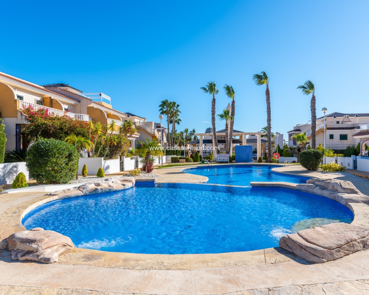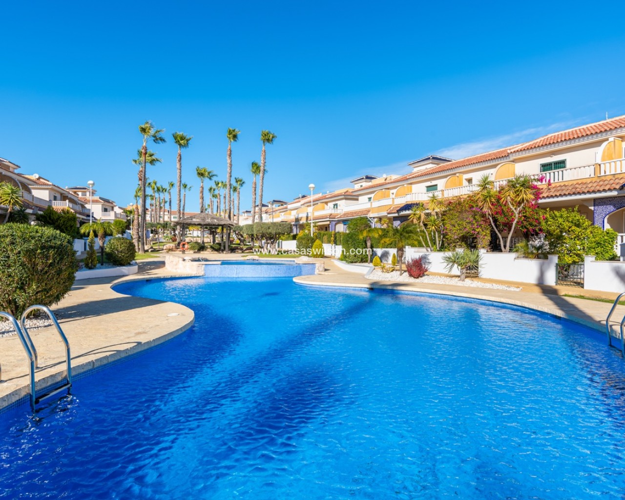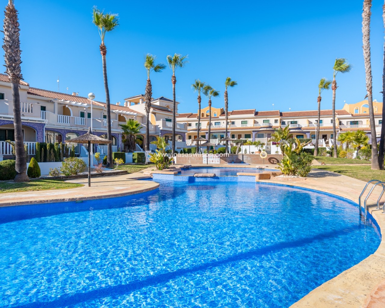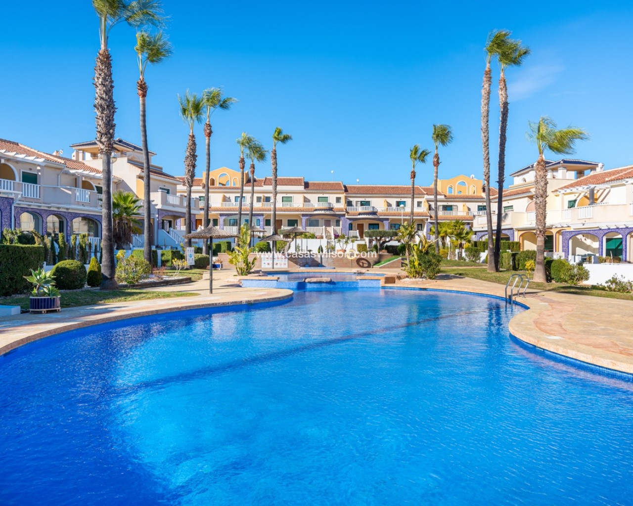 Charmant appartement situé au dernier étage dans la résidence prisée Albamar. Il offre une surface construite de 79,27 m² comprenant deux chambres doubles avec placards et une salle de bain familiale avec douche. Il dispose également d’un salon-salle à manger lumineux avec cuisine ouverte. Depuis le salon, accès direct à un grand balcon orienté ouest.Situé au premier étage avec accès par escalier, il est vendu entièrement meublé.Depuis le balcon, un escalier extérieur mène à un grand solarium privé avec débarras et barbecue en dur, offrant une vue sur les salines de Torrevieja et La Mata.Comprend une place de parking privée dans un garage souterrain. Résidence avec piscines, piscine enfants et jardins. Proche des commodités à Doña Pepa.