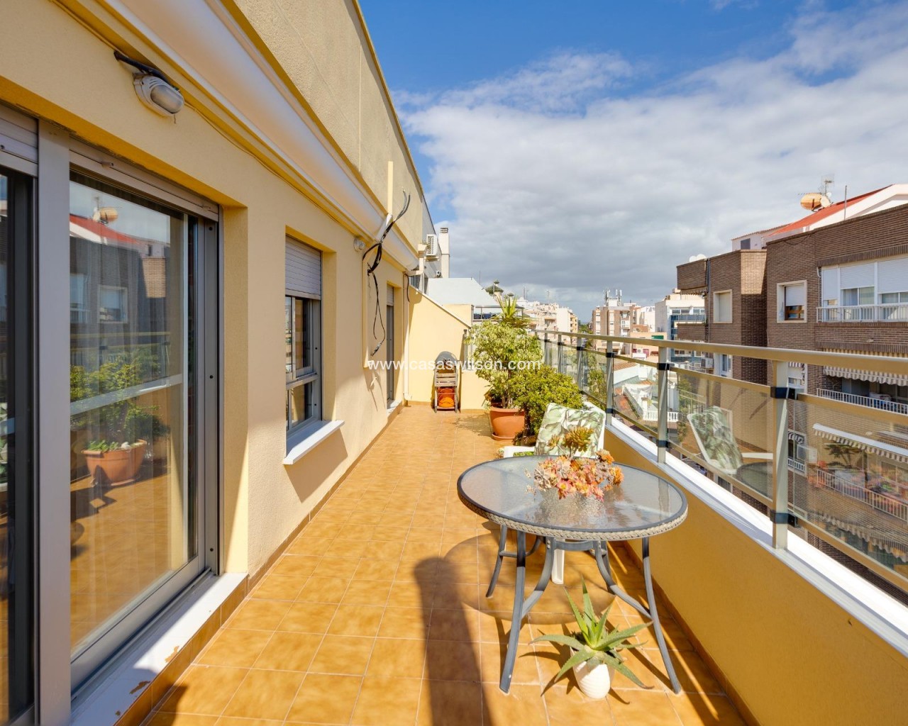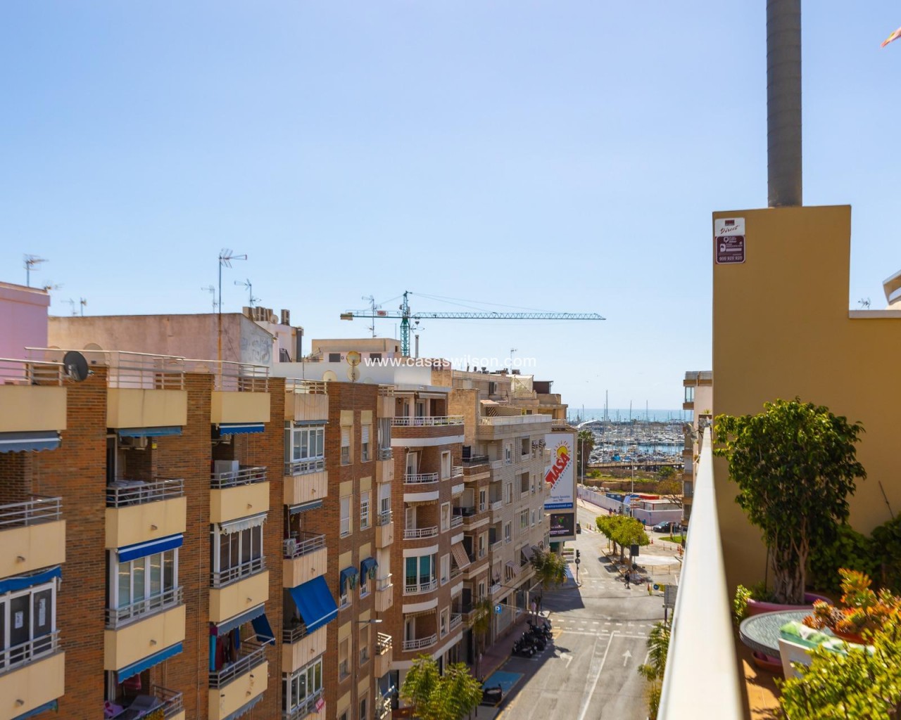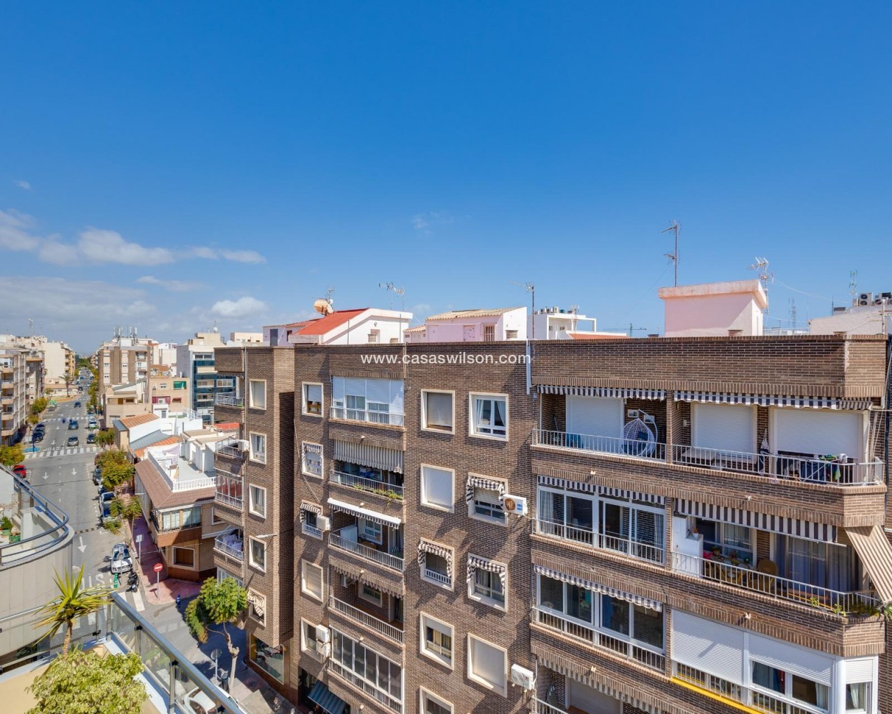 Ce penthouse, situé au cinquième étage avec ascenseur, bénéficie d’un emplacement privilégié en plein centre de Torrevieja, permettant de profiter de la proximité de la mer et de tous les services urbains à pied. Le bien se distingue par son excellente optimisation de l’espace et, surtout, par son abondante luminosité naturelle grâce à son orientation est, garantissant un ensoleillement direct toute la matinée. Il se compose d’un salon-salle à manger fonctionnel avec cuisine ouverte, un espace décloisonné qui apporte une sensation d’amplitude et donne accès directement à une terrasse privée, idéale pour profiter des petits-déjeuners en plein air. L’espace nuit est réparti de manière pratique en deux chambres : une chambre double principale et une seconde chambre individuelle. La salle de bain est complète et dispose d’une douche à l’italienne confortable. Sans aucun doute, l’élément différenciateur de ce bien est son grand solarium privé situé à l’étage supérieur. Il s’agit d’un espace privé et dégagé offrant des vues impressionnantes, parfait pour se détendre, prendre le soleil ou profiter de dîners en extérieur en toute intimité en plein cœur de la ville. Grâce à sa proximité avec le port, le Club Nautique et la zone commerciale, ce bien représente un investissement solide et polyvalent. Si vous recherchez un logement lumineux, pratique et doté d’un solarium exceptionnel en centre-ville, ce penthouse mérite une visite.