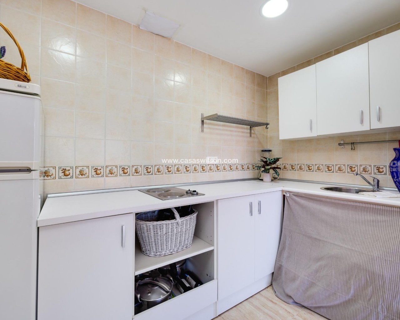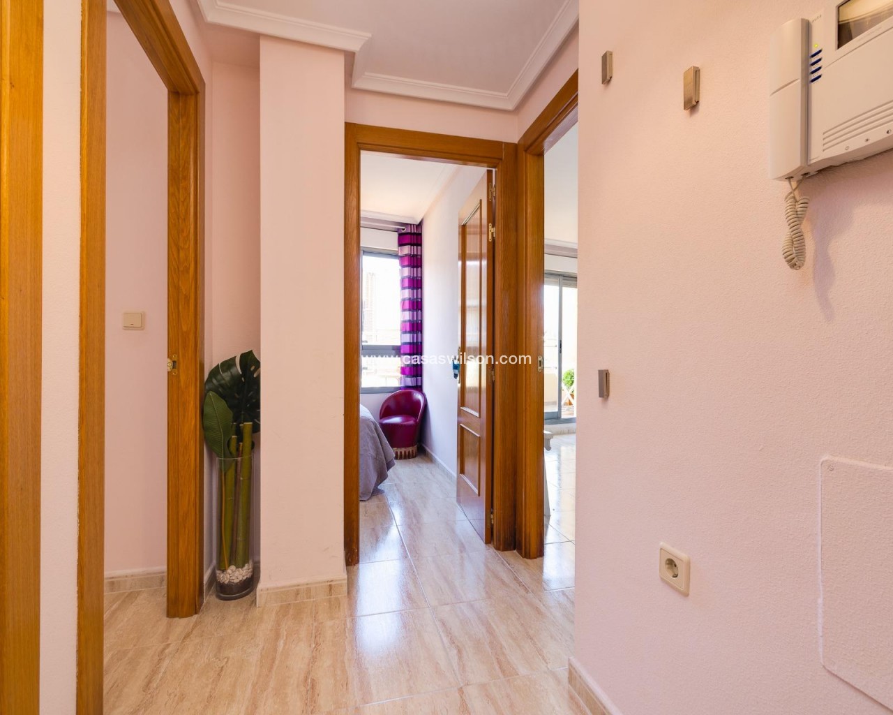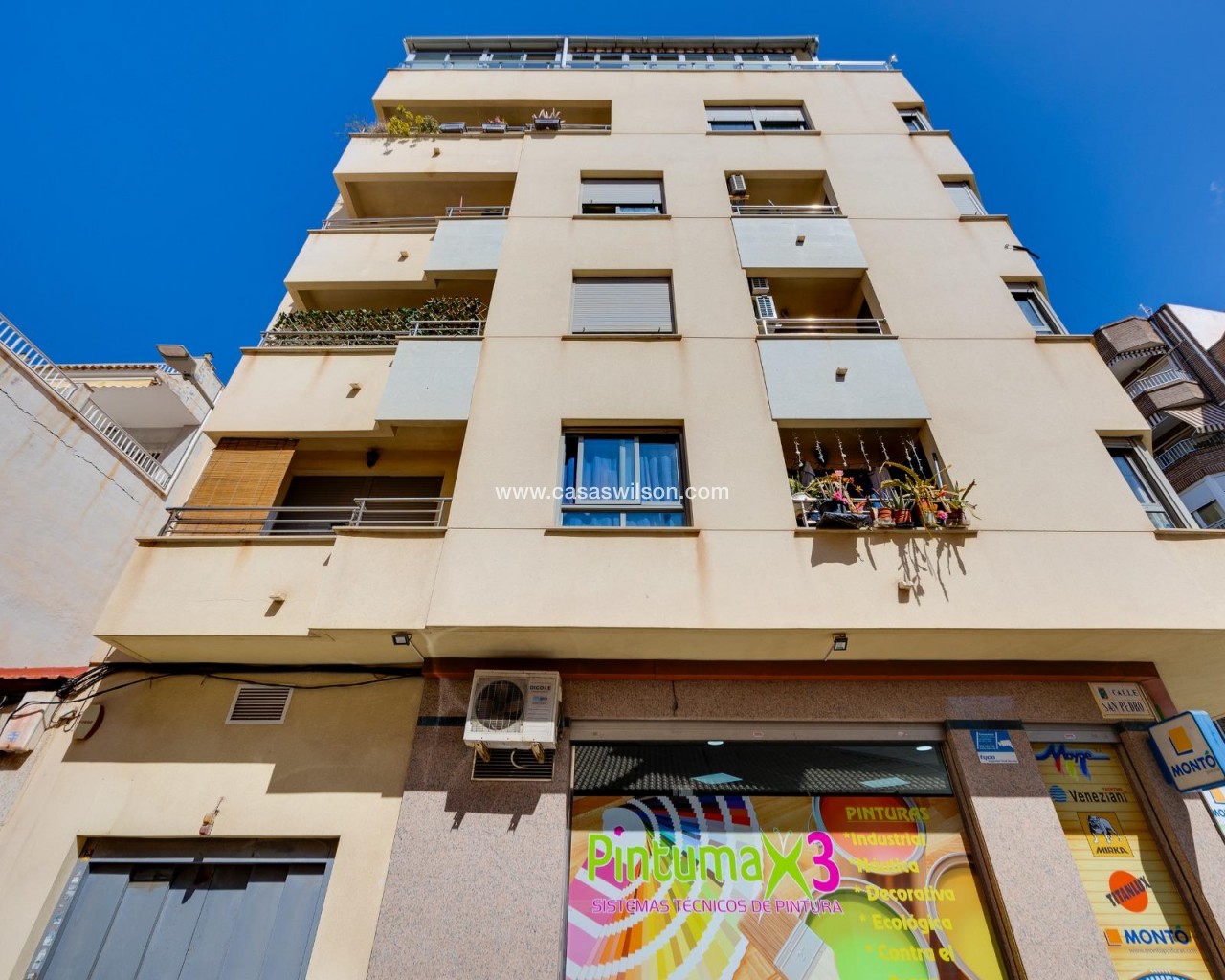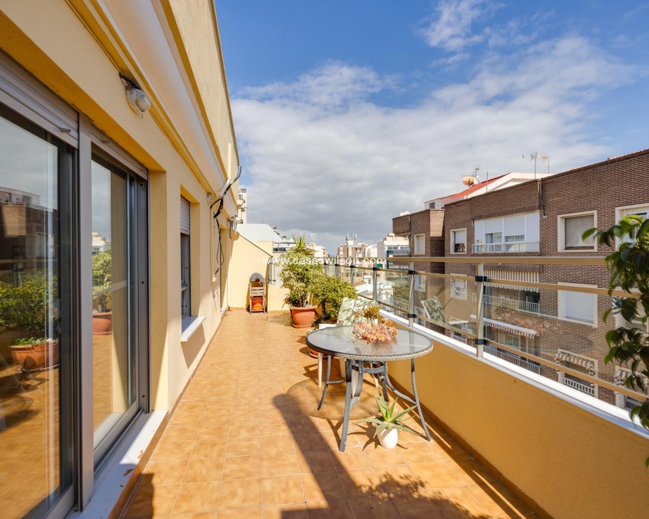 Ce penthouse, situé au cinquième étage avec ascenseur, bénéficie d’un emplacement privilégié en plein centre de Torrevieja, permettant de profiter de la proximité de la mer et de tous les services urbains à pied. Le bien se distingue par son excellente optimisation de l’espace et, surtout, par son abondante luminosité naturelle grâce à son orientation est, garantissant un ensoleillement direct toute la matinée. Il se compose d’un salon-salle à manger fonctionnel avec cuisine ouverte, un espace décloisonné qui apporte une sensation d’amplitude et donne accès directement à une terrasse privée, idéale pour profiter des petits-déjeuners en plein air. L’espace nuit est réparti de manière pratique en deux chambres : une chambre double principale et une seconde chambre individuelle. La salle de bain est complète et dispose d’une douche à l’italienne confortable. Sans aucun doute, l’élément différenciateur de ce bien est son grand solarium privé situé à l’étage supérieur. Il s’agit d’un espace privé et dégagé offrant des vues impressionnantes, parfait pour se détendre, prendre le soleil ou profiter de dîners en extérieur en toute intimité en plein cœur de la ville. Grâce à sa proximité avec le port, le Club Nautique et la zone commerciale, ce bien représente un investissement solide et polyvalent. Si vous recherchez un logement lumineux, pratique et doté d’un solarium exceptionnel en centre-ville, ce penthouse mérite une visite.