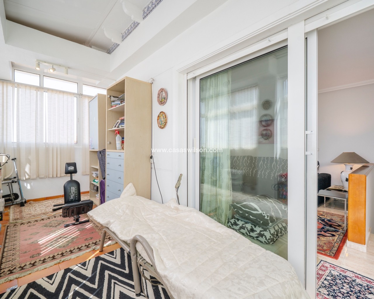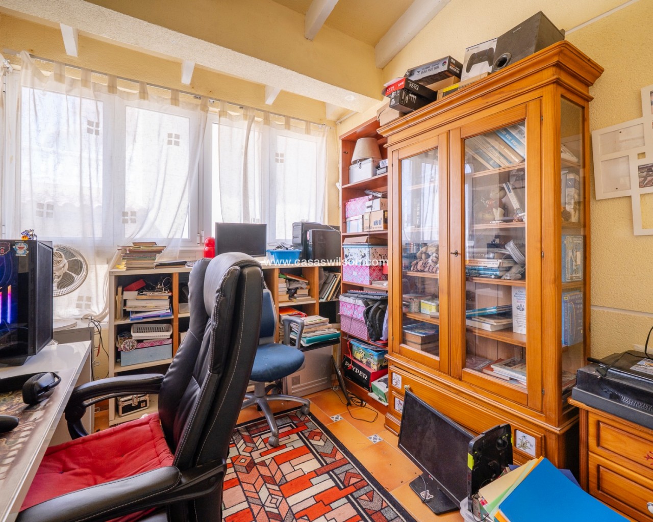Maison mitoyenne d’angle située dans un quartier résidentiel calme de Guardamar del Segura, idéale pour ceux qui recherchent confort et proximité de la mer. Construite en 1997, elle est en bon état et prête à être habitée. Elle comprend quatre chambres, deux salles de bains et un WC supplémentaire. La cuisine est indépendante et fonctionnelle. Son orientation sud-est permet de profiter d’une belle luminosité. À l’extérieur, on trouve une terrasse couverte et des espaces ouverts avec vue sur des zones vertes. La propriété fait partie d’une résidence avec piscine commune. Elle dispose également de la climatisation, du chauffage central, de placards intégrés, est vendue meublée et comprend un sous-sol avec garage privé.
