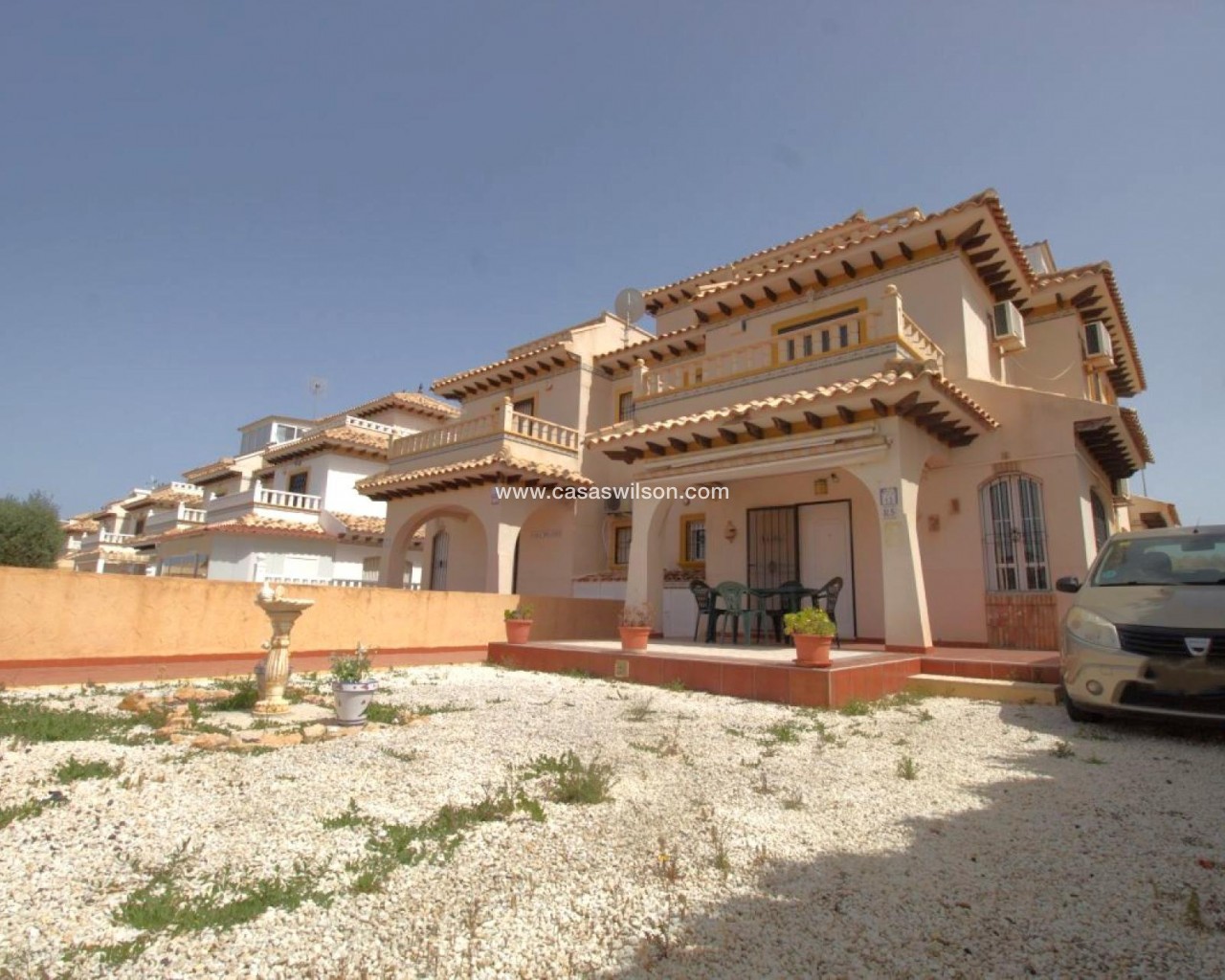 Découvrez ce charmant duplex situé dans le quartier très recherché de Lomas de Cabo Roig, à Orihuela Costa — un emplacement privilégié idéal pour profiter du style de vie méditerranéen toute l’année.La propriété offre une surface construite de 80 m² et est implantée sur un terrain de 100 m², offrant un équilibre parfait entre confort intérieur et espace extérieur. Elle dispose de 2 grandes chambres doubles et de 2 salles de bains complètes, et se présente en excellent état, prête à être habitée.Son orientation sud-ouest garantit une luminosité naturelle tout au long de la journée, créant une atmosphère chaleureuse et agréable dans toutes les pièces. La cuisine de style américain, entièrement équipée, s’intègre parfaitement au salon, offrant un espace moderne et fonctionnel.À l’extérieur, vous pourrez profiter d’une terrasse privée de 5 m² ainsi que de l’accès à une belle piscine communautaire entourée de jardins paysagers, idéale pour se détendre et profiter du soleil. La propriété comprend également une place de parking privée et 2 débarras, apportant un confort et un espace de rangement supplémentaires.En bonus, un petit véhicule type voiturette de plage est inclus dans le prix, parfait pour se déplacer facilement jusqu’à la mer.L’emplacement est idéal: à seulement 3 km de la mer Méditerranée et parfaitement desservi par les transports en commun à proximité. À quelques minutes, vous trouverez des centres commerciaux, des écoles et tous les services essentiels. Les prestigieux golfs de Campoamor et Las Ramblas sont également tout proches, parfaits pour les amateurs de golf.Informations complémentaires:* Charges de copropriété: 500 € / an