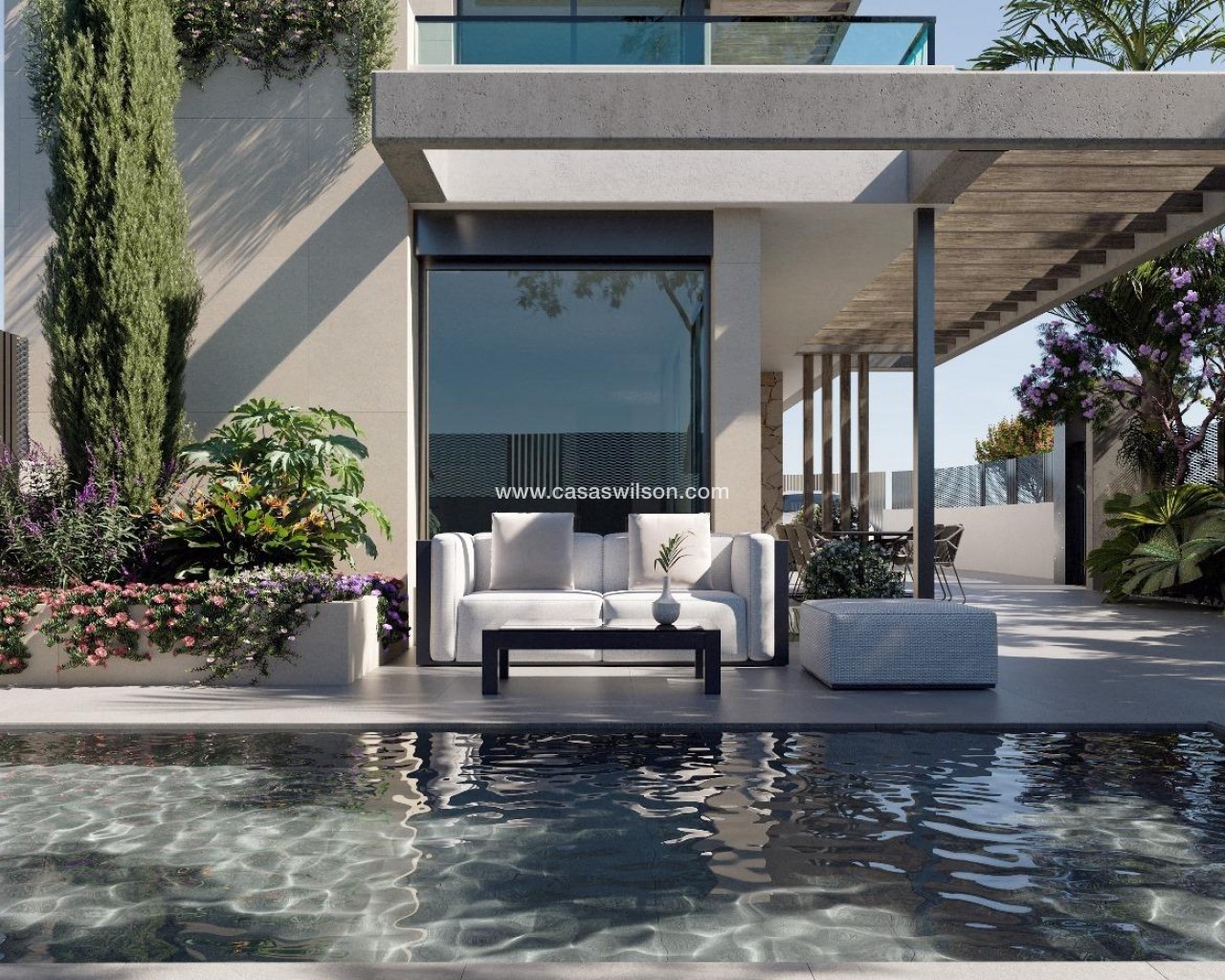 NIEUWBOUW VILLA'S IN OMHEIND PRIVÉRESORT IN PROVINCIE MURCIA Nieuwbouwvilla's in een omheind privéresort in de regio Murcia, omringd door uitstekende golfbanen en op slechts 10 minuten van de zandstranden van de Mar Menor Zee. De villa bestaat uit 3 verdiepingen en heeft 3 slaapkamers, 3 badkamers, open keuken en woon-eetkamer, inbouwkasten, kelder, privétuin met zwembad en parkeerplaats. Gelegen in een afgesloten resort, met een hoofdingang en 24 uur bewaking. Het resort is ontworpen rond een indrukwekkend groen gebied van 126.000 m2. Het bestaat uit wandel- en fietspaden, sportfaciliteiten, paddle- en tennisbanen, een minigolfbaan, tuinen, hondenparken, recreatiegebieden, clubhuis.... Ook in het centrale gebied ligt het juweel van het resort, een kristalhelder kunstmatig meer van bijna 17.000 m2 wateroppervlak, omringd door witte zandstranden en palmbomen, dat een stukje Caribisch gebied naar de regio Murcia brengt. Er zijn 2 eilanden in het meer, waarvan één met een eigen bar, en er zijn ook "strand Chiringuitos" verspreid over het meer. Het resort is strategisch gelegen op minder dan 4 km van het strand en de stad Los Alcázares, waar je verschillende watersporten kunt beoefenen, omringd door verschillende golfbanen en de stad Cartagena op minder dan 15 minuten rijden en 22 km van de luchthaven van Murcia, waardoor een breed cultureel, gastronomisch en sportief aanbod binnen handbereik ligt.
