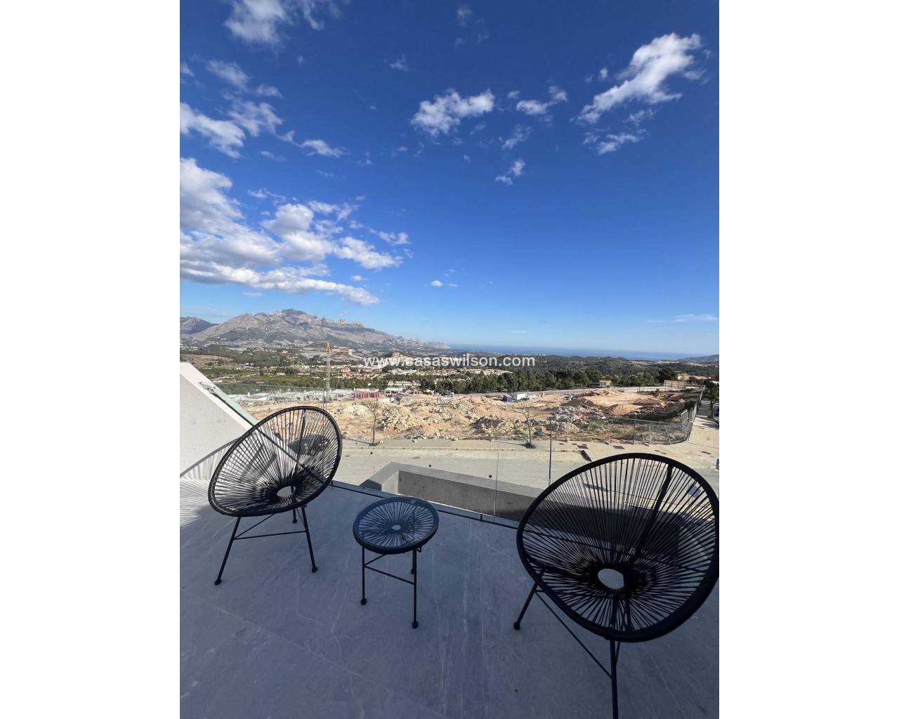 NIEUWBOUW HALFVRIJSTAANDE VILLA'S IN POLOP Nieuwbouw moderne halfvrijstaande villa's met verschillende terrassen en solarium, volledig omheind, met parkeerplaats voor voertuigen en privézwembad in Polop. Moderne woningen met 3 ruime slaapkamers met ingebouwde kasten (de belangrijkste op de begane grond, met badkamer en kleedkamer en suite), 2 ruime badkamers, grote woon-eetkamer met open keuken, ruime terrassen. Keuken uitgerust met onderkasten en silestone werkbladen, met keramische kookplaat, oven, afzuigkap, koelkast, wasmachine, vaatwasser en aerothermische kachel. Eerste kwaliteiten: binnenschrijnwerk in hout en wit gelakt laminaat, buitenschrijnwerk in antracietgrijs pvc met dubbele beglazing en koudebrugonderbreking, en automatische rolluiken met aluminium lamellen, keramische vloeren van 1e kwaliteit antislip, gladde muren, veiligheidsdeur met 5 verankeringspunten, grote ingebouwde kasten. De stad Polop biedt een verbazingwekkend scala aan mogelijkheden voor liefhebbers van het buitenleven, omringd door natuur en ongeëvenaarde rust. De gemeente heeft een mediterraan klimaat met koelere temperaturen en schonere lucht en ligt op minder dan 10 kilometer van Benidorm, Altea en hun stranden. Het strekt zich uit van de rivieren Guadalest en Algar tot de stad Villajoyosa, inclusief de stranden van Albir en Benidorm; in het binnenland grenst het aan Callosa en Guadalest.