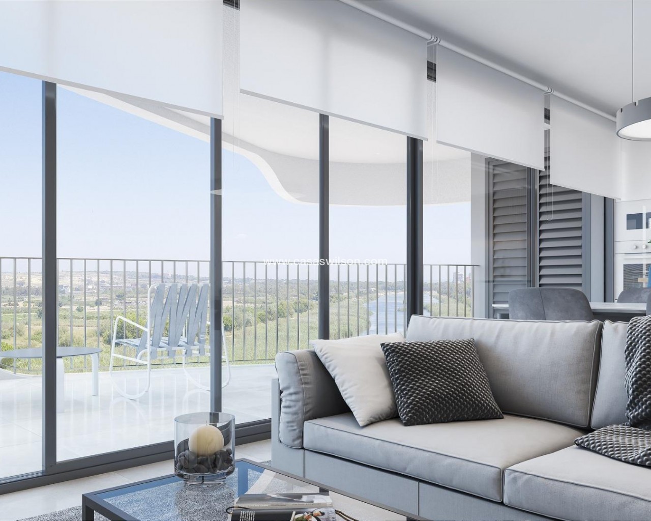 Nieuwbouwappartementen met uitzicht op de rivier in Guardamar del Segura Exclusief wooncomplex met slechts 9 moderne woningen Dit nieuwe woonproject in Guardamar del Segura, Alicante, biedt een unieke kans om te wonen op een bevoorrechte locatie met vrij uitzicht op de rivier Segura en de Vega Baja. Het gebouw bestaat uit slechts 9 exclusieve woningen, één per verdieping, wat privacy, rust en comfort garandeert. Ruime woningen met grote terrassen Elk appartement heeft 3 slaapkamers en 2 badkamers, plus ruime buitenruimtes: Begane grond met privétuin van 120 m² Tussenverdiepingen met terrassen van 18 m² Penthouse met terras en privésolarium van 78 m² Deze woningen zijn ontworpen in een eigentijdse stijl, ideaal voor zowel permanente woningen als vakantiehuizen aan de Costa Blanca. Eersteklas uitrusting en afwerking De woningen worden opgeleverd met een uitstekende afwerking, ontworpen om comfort en efficiëntie te bieden: Beveiligde toegangsdeur Badkamers met hangende wastafels, spiegel, douchebak van muur tot muur en glazen douchewand Aerothermisch systeem voor sanitair warm water (100 liter) Parkeerplaats inbegrepen in de prijs Ideale ligging dicht bij zee en alle voorzieningen De residentie ligt op slechts 1,4 km van het strand en op enkele minuten van de haven van Guardamar, het natuurlijke dennenbos en een levendig winkelgebied met supermarkten, restaurants en alle essentiële voorzieningen. Afstanden tot belangrijke punten: Centrum van Guardamar: 1,2 km (15 minuten lopen) Dichtstbijzijnde strand: 1,4 km Jachthaven: 1 km Park Reina Sofía: 1,5 km Golfbaan La Marquesa (Ciudad Quesada): 9 km Winkelcentrum Habaneras (Torrevieja): 13 km Luchthaven Alicante-Elche: 33 km Guardamar biedt ook een directe busverbinding naar Alicante en Torrevieja, waardoor u zich gemakkelijk kunt verplaatsen zonder eigen auto. Uw nieuwe thuis in Guardamar wacht op u Of het nu gaat om een investering, een permanente woning of een vakantiehuis, dit wooncomplex is een uitzonderlijke kans in een van de meest gewilde gebieden van de Costa Blanca. Neem nu contact met ons op en verzeker u van uw appartement met uitzicht in Guardamar del Segura.