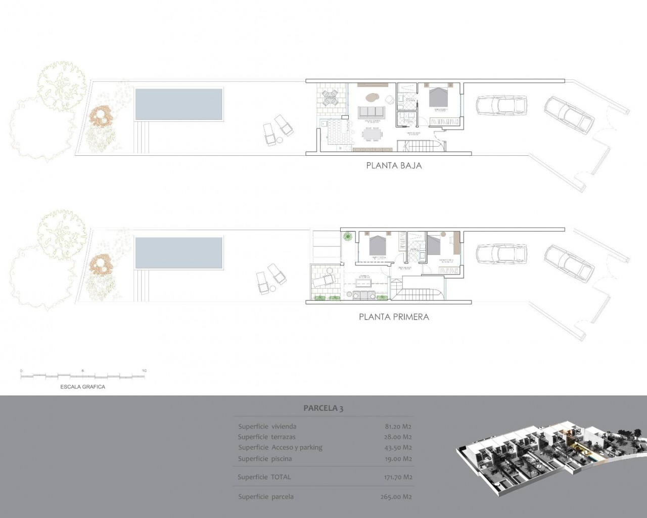 Moderne nieuwbouwwoning in Alfaz del Pi: uw nieuwe thuis aan de Costa Blanca Eigentijds ontwerp op een bevoorrechte locatie Gelegen in de exclusieve wijk Barranc Fondo in Alfaz del Pi, bieden deze moderne nieuwbouwwoningen de mediterrane levensstijl waar u altijd al van gedroomd heeft. Met een oostelijke ligging die vanaf het eerste uur van de dag garant staat voor natuurlijk licht, combineren deze woningen design, energie-efficiëntie en comfort, ideaal als permanente woning of als investering. Ruime en functionele binnenruimtes De woningen hebben twee verdiepingen en een bebouwde oppervlakte van ongeveer 110 m², verdeeld over: 3 ruime en lichte slaapkamers, waarvan 1 op de begane grond. 2 complete badkamers en 1 gastentoilet Open keuken uitgerust met inductiekookplaat, afzuigkap, oven en magnetron Open woon-eetkamer met veel natuurlijk licht Terras op de bovenverdieping, ideaal om te genieten van het uitzicht of het goede klimaat Het interieur is voorzien van hoogwaardige materialen, waaronder buitenkozijnen met thermische onderbreking, dubbele beglazing, badkamers met hangende meubels, spiegel en ledverlichting, airconditioning (warm/koud) en warmwatervoorziening door middel van aerothermie. Privétuin en mogelijkheid tot zwembad Buiten biedt het pand een privétuin van 265 m², een perfecte plek om van het buitenleven te genieten, te zonnen, te barbecueën of te ontspannen. Er is de mogelijkheid om een zwembad toe te voegen (tegen meerprijs). Er is ook een privé parkeerplaats op het perceel voor extra gemak. Uitstekende verbindingen en voorzieningen in de buurt Deze woning is gelegen op slechts: 5 km van de Blauwe Vlag-stranden van Albir en Altea 6 km van de golfclub Don Cayo 7 km van de jachthaven van Altea 8 km van het winkelcentrum La Marina 65 km van de luchthaven Alicante-Elche Bovendien staat Alfaz del Pi bekend om zijn internationale sfeer, veiligheid, levenskwaliteit en de nabijheid van internationale scholen, medische centra en een groot gastronomisch aanbod. Ideaal om te wonen of te investeren Of u nu op zoek bent naar een gezinswoning of wilt investeren in een gebied met een hoge vraag naar huurwoningen, deze woning biedt een geweldige kans met een hoog rendementspotentieel en een ongeëvenaarde levensstijl. Neem vandaag nog contact met ons op voor een bezichtiging en ontdek alles wat deze woning u te bieden heeft in het hart van de Costa Blanca.
