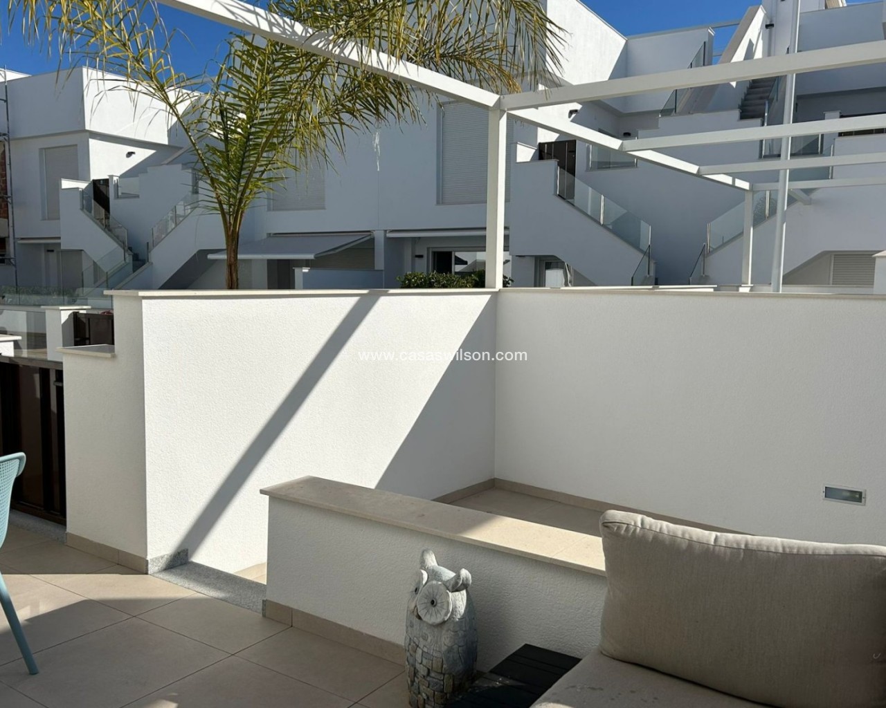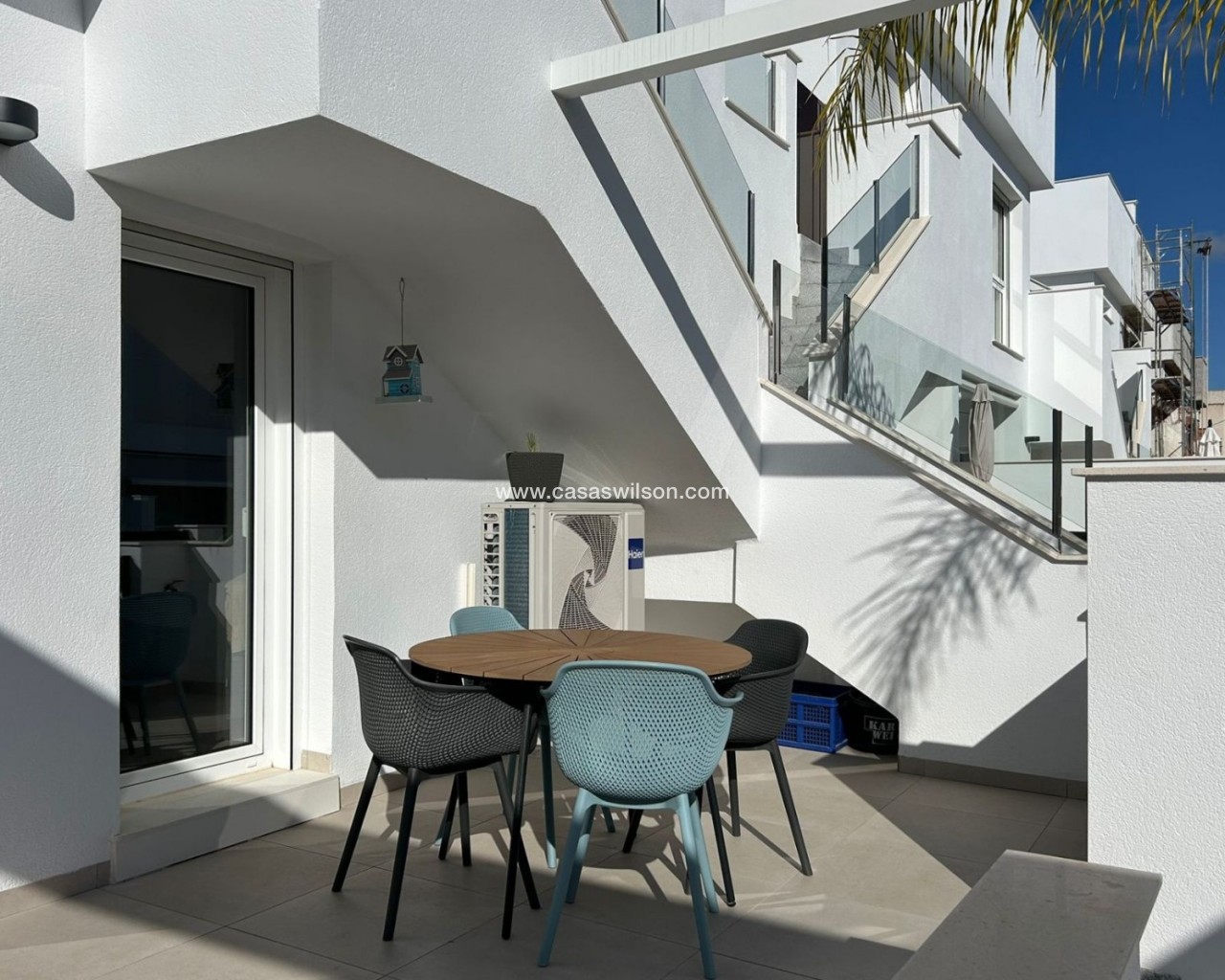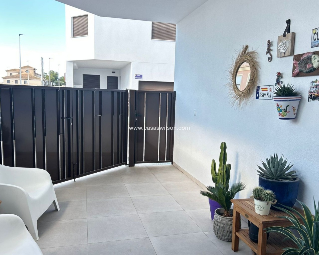 Appartement op de begane grond te Pilar de la Horadada – Modern comfort aan de Costa Blanca Ontdek het ultieme wooncomfort in dit zo goed als nieuwe appartement, opgeleverd in augustus 2024, gelegen in het zonnige Pilar de la Horadada aan de geliefde Costa Blanca. Dit stijlvolle hoek appartement biedt u de perfecte balans tussen modern design en mediterrane ontspanning. De ruime woonkamer met grote ramen en een glazen schuifpui zorgt voor veel natuurlijk licht en een gevoel van vrijheid. Geniet van twee comfortabele slapkamers met ingebouwde kasten en twee luxe badkamers met vloerverwarming, waarvan één en-suite voor extra privacy. De volledig uitgeruste open keuken is ideaal voor het bereiden van heerlijke maaltijden. Buiten wacht een grote voor- en achtertuin waar u het hele jaar door geniet van het mediterrane klimaat. Ontspan in de schaduw of zon, en neem een verfrissende duik in het gemeenschappelijke zwembad waartoe u direct toegang heeft. Extra voordelen zoals airconditioning, elektrische rolluiken en een privéparkeerplaats verhogen uw wooncomfort. Deze woning is perfect voor wie op zoek is naar rust, comfort en gemak, of het nu gaat om een permanente woning of een vakantieverblijf. Beleef de mediterrane levensstijl in een veilige en vriendelijke omgeving. Neem vandaag nog de stap richting uw Spaanse droom en plan een bezichtiging! Leven in Pilar de la Horadada – Geniet van het beste van de Costa Blanca Pilar de la Horadada biedt een hoogwaardige levensstijl in een omgeving die bekend staat om haar zonnig klimaat, rust en natuurlijke schoonheid. Hier geniet u van meer dan 300 dagen zon per jaar en zachte winters, ideaal om te ontspannen en te genieten van het buitenleven. De locatie is perfect voor wie houdt van comfort en gemak: op korte afstand vindt u supermarkten, winkels, gezellige restaurants en medische centra. Alles wat u nodig heeft is binnen handbereik. Actieve levensgenieters kunnen hun hart ophalen met golfbanen op 5 km afstand, eindeloze fiets- en wandelroutes en de prachtige stranden van Torre de la Horadada en Mil Palmeras op slechts 5 minuten rijden. Ontdek lokale markten, festivals en culturele routes en ervaar de unieke sfeer van de Costa Blanca en de nabijgelegen Costa Cálida. Deze regio combineert authentiek Spaans dorpsleven met moderne voorzieningen, ideaal voor wie op zoek is naar ontspanning én avontuur. Maak kennis met het beste van Spanje – uw nieuwe leven wacht op u!
