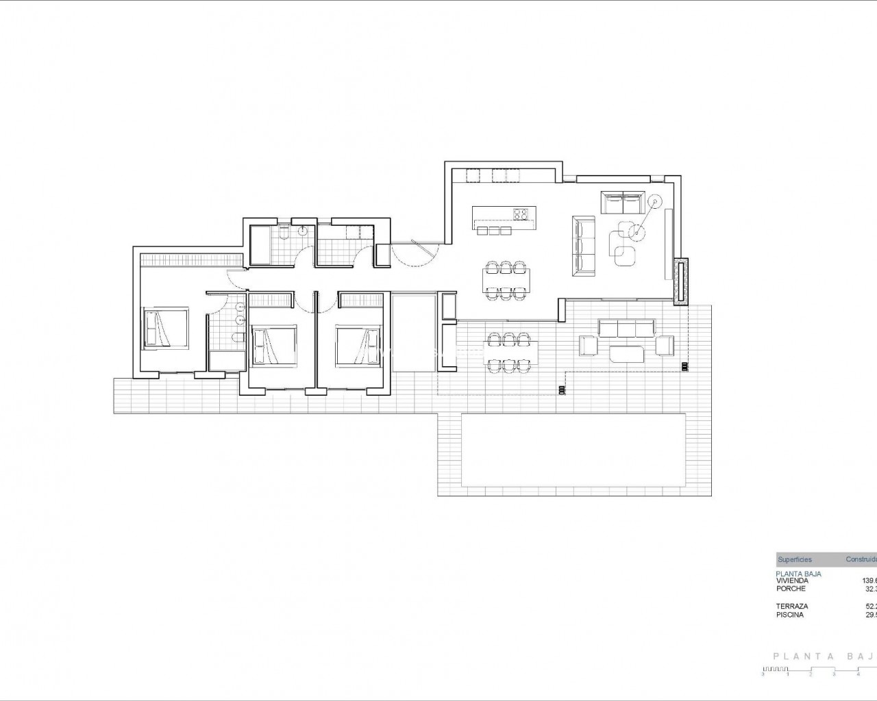 NIEUWBOUW VILLA IN CALPE Nieuwbouwvilla gelegen in een van de woonwijken die de voorkeur genieten van alle inwoners van Calpe, vanwege de nabijheid van het stadscentrum, de stranden en tegelijkertijd omdat het een rustige maar veilige buurt is, omdat het aan de rand van het stadscentrum ligt. De woning is gepland op een enkele verdieping, wat dit project praktisch en comfortabel maakt. Het hele perceel is omheind en heeft binnen een haag van cipressen, wat zorgt voor privacy en een aangename omgeving. Vanuit de hoofdingang van het huis hebben we toegang tot een hal, van waaruit we aan de linkerkant toegang hebben tot het daggedeelte, bestaande uit een woonkamer met eetkamer en open keuken met eiland. Vanuit de woonkamer hebben we toegang tot de buitenkant, waar we een overdekte veranda hebben met barbecue en een groot terras met zwembad van 40m2. Aan de rechterkant van het huis is het slaapgedeelte, met 4 slaapkamers: de master suite met kleedkamer en badkamer, een andere slaapkamer met en-suite badkamer en nog twee slaapkamers die een badkamer delen. Er is ook een wasruimte. Buiten is er een parkeerplaats met een pergola in de vorm van een zeil voor twee auto's. Calpe, een van de steden van La Marina Alta, ligt aan de noordkust van de provincie Alicante, omringd door de steden Altea, Benidorm, Teulada-Moraira, Benissa. Calpe heeft een prachtige mix van oude Valenciaanse cultuur en moderne toeristische faciliteiten. Het is een prima uitvalsbasis om de omgeving te verkennen of te genieten van de vele plaatselijke stranden. Calpe alleen al heeft drie van de mooiste zandstranden aan de kust. Calpe heeft ook twee zeilclubs: Real Club Náutico de Calpe en Club Náutico de Puerto Blanco. Vissersdorp Calpe is nu omgetoverd tot een toeristische trekpleister, de stad ligt op een ideale locatie, gemakkelijk bereikbaar via de snelweg A7 en de N332 die van Valencia naar Alicante loopt; het is ongeveer 1 uur rijden van het vliegveld van Alicante en 1,5 uur van het vliegveld van Valencia.