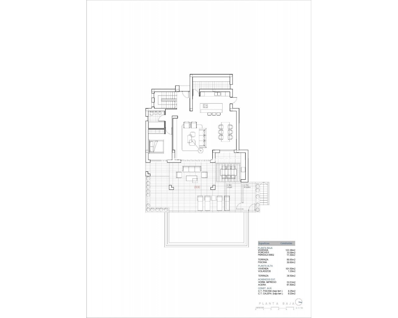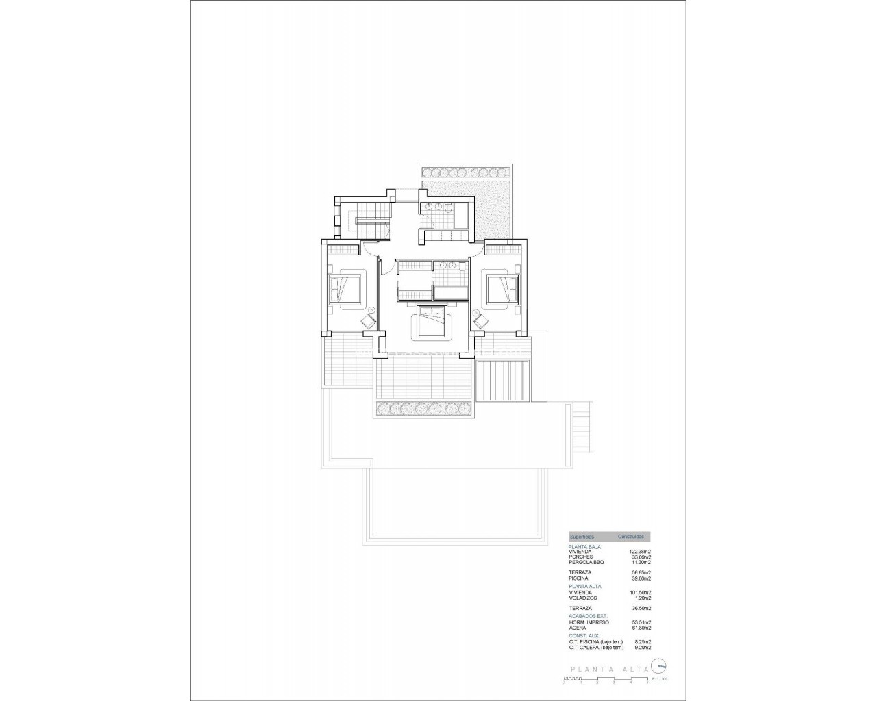 Villa met zeezicht en Ibiza-charme in La Fustera, Benissa Deze prachtige nieuwbouwwoning combineert de elegantie van hedendaagse architectuur met de warmte en het karakter van Ibiza-design. Gelegen in de gewilde wijk La Fustera (Benissa Costa), geniet deze woning van een panoramisch uitzicht op zee en ligt op slechts enkele minuten van het strand, supermarkten, restaurants en andere essentiële voorzieningen. De woning is gelegen op een perceel van meer dan 1.000 m² en is verdeeld over twee verdiepingen en biedt in totaal 4 ruime slaapkamers en 3 badkamers. De begane grond heeft een open indeling met een grote woonkamer, eethoek en volledig uitgeruste keuken met kookeiland en ontbijtbar. Kamerhoge schuifdeuren verbinden het interieur met een royaal terras op het zuiden, waardoor een perfecte overgang tussen binnen en buiten ontstaat. Op deze verdieping bevinden zich ook een slaapkamer en een badkamer. Buiten beschikt de villa over verschillende ontspannings- en eetruimtes, een overdekte barbecueplaats en een uitnodigend zwembad omgeven door weelderige beplanting en ligstoelen. Op de bovenverdieping zijn er drie extra slaapkamers (waaronder de master suite met en-suite badkamer en privéterras), evenals een tweede terras met prachtig uitzicht. De woning is volledig uitgerust voor comfort het hele jaar door en is voorzien van vloerverwarming, airconditioning en hoogwaardige afwerkingen. Extra voorzieningen zijn onder meer een technische ruimte voor het verwarmingssysteem en een aparte ruimte voor het zwembadmateriaal, beide ondergronds gelegen om de ruimte en functionaliteit te maximaliseren. Verzeker uzelf van uw droomvilla in La Fustera, Benissa Costa, en omarm de ultieme mediterrane levensstijl met adembenemend uitzicht op zee en ongeëvenaard comfort.