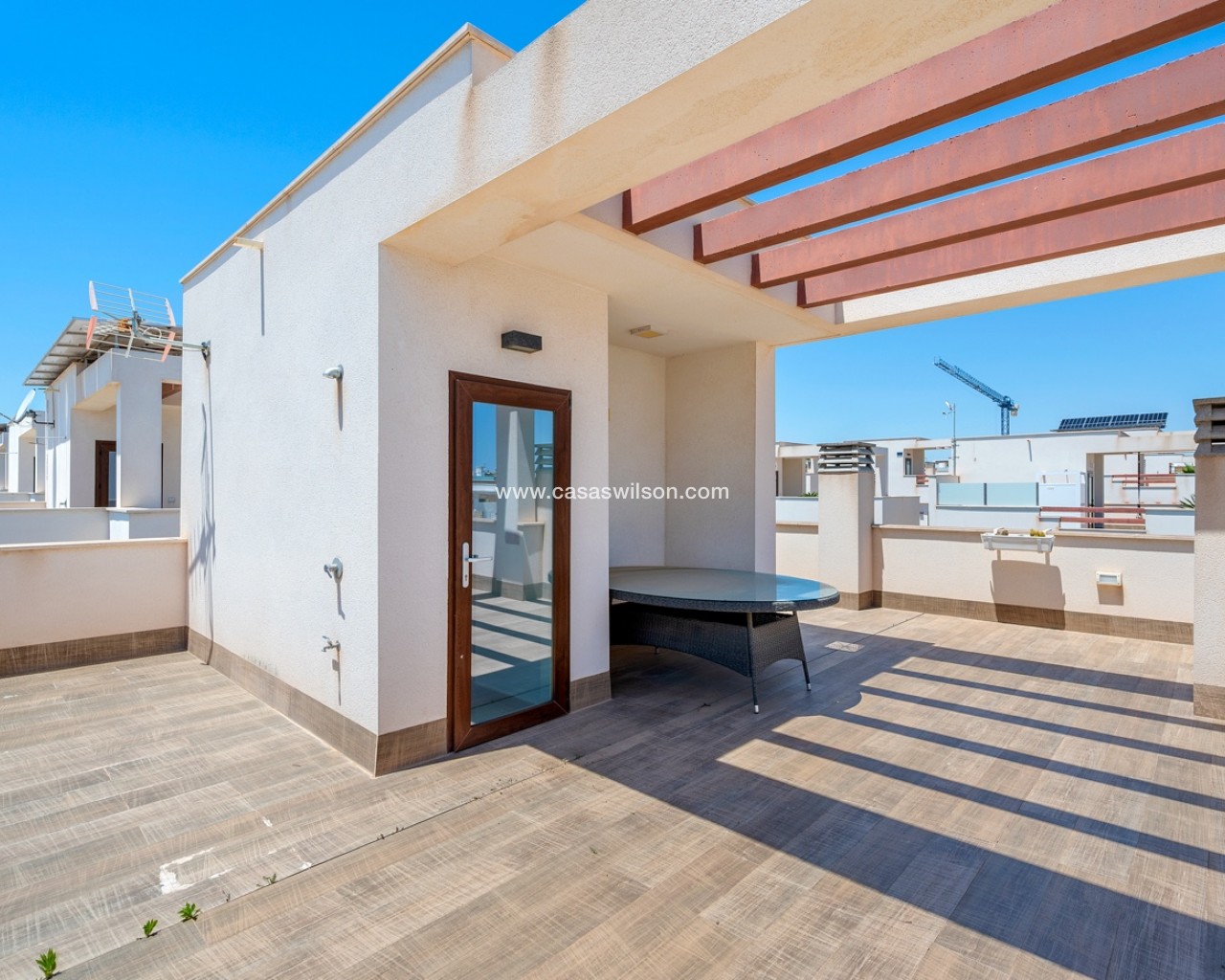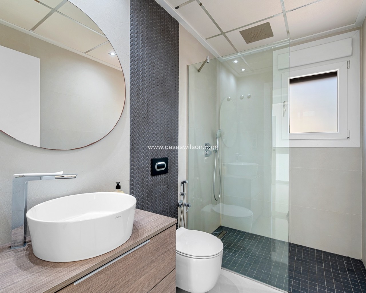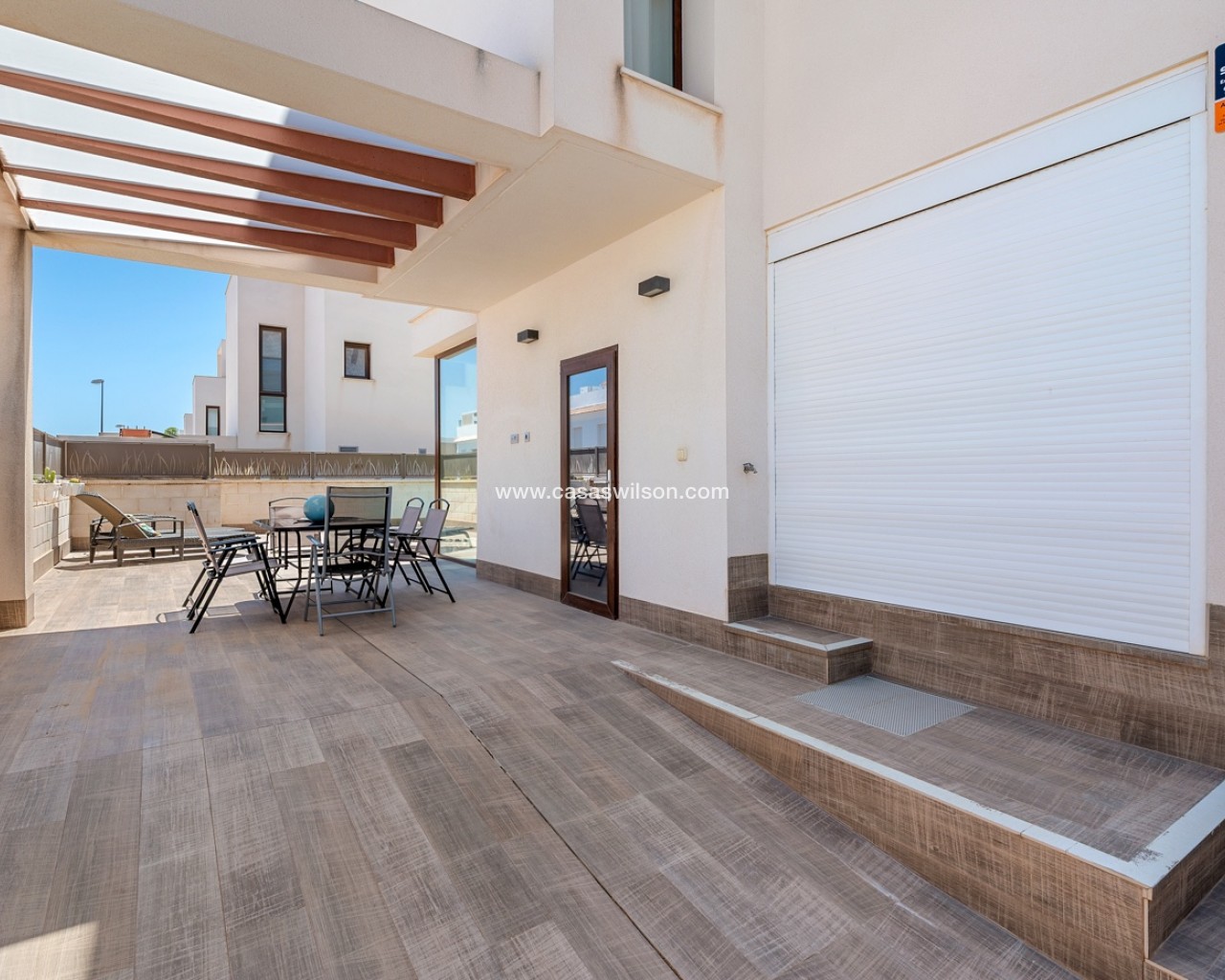 Gelegen in een rustige woonwijk van Ciudad Quesada biedt deze woning, gebouwd in 2018, een functionele indeling en goed benutbare binnen- en buitenruimtes. De woning heeft een bebouwde oppervlakte van 101 m² op een perceel van 184 m², met drie slaapkamers, drie badkamers, een kelder en een dakterras. De begane grond beschikt over een woonkamer, eetruimte en een open keuken met een centraal kookeiland. Op dit niveau bevindt zich ook een slaapkamer met ingebouwde kast, een complete badkamer, een wasruimte en directe toegang tot de tuin en het privézwembad. Op de bovenverdieping zijn nog twee slaapkamers. De hoofdslaapkamer heeft een en-suite badkamer en toegang tot een privéterras. De tweede slaapkamer ligt naast een andere complete badkamer. Een hal verbindt beide kamers. De kelder wordt momenteel gebruikt als recreatieruimte met een biljartgedeelte en biedt extra ruimte voor diverse doeleinden. Het privé dakterras beschikt over een volledig geïnstalleerde en functionele buitenkeuken met directe toegang vanuit het huis, waardoor het een comfortabele ruimte is voor gebruik het hele jaar door. Buiten beschikt de woning over een privézwembad van 3,30 x 6,50 meter, een tuin met kunstgras en een privéparkeerplaats op het perceel. Als hoekwoning geniet het huis van meer natuurlijk licht en meer onafhankelijkheid ten opzichte van aangrenzende woningen. De woning wordt volledig gemeubileerd verkocht en is uitgerust met airconditioning, ingebouwde kasten, automatische rolluiken, horren, een beveiligingssysteem en een volledig uitgeruste keuken. Ze is geschikt als permanente woning of als vakantieverblijf, en ligt dicht bij voorzieningen en hoofdverkeersroutes.