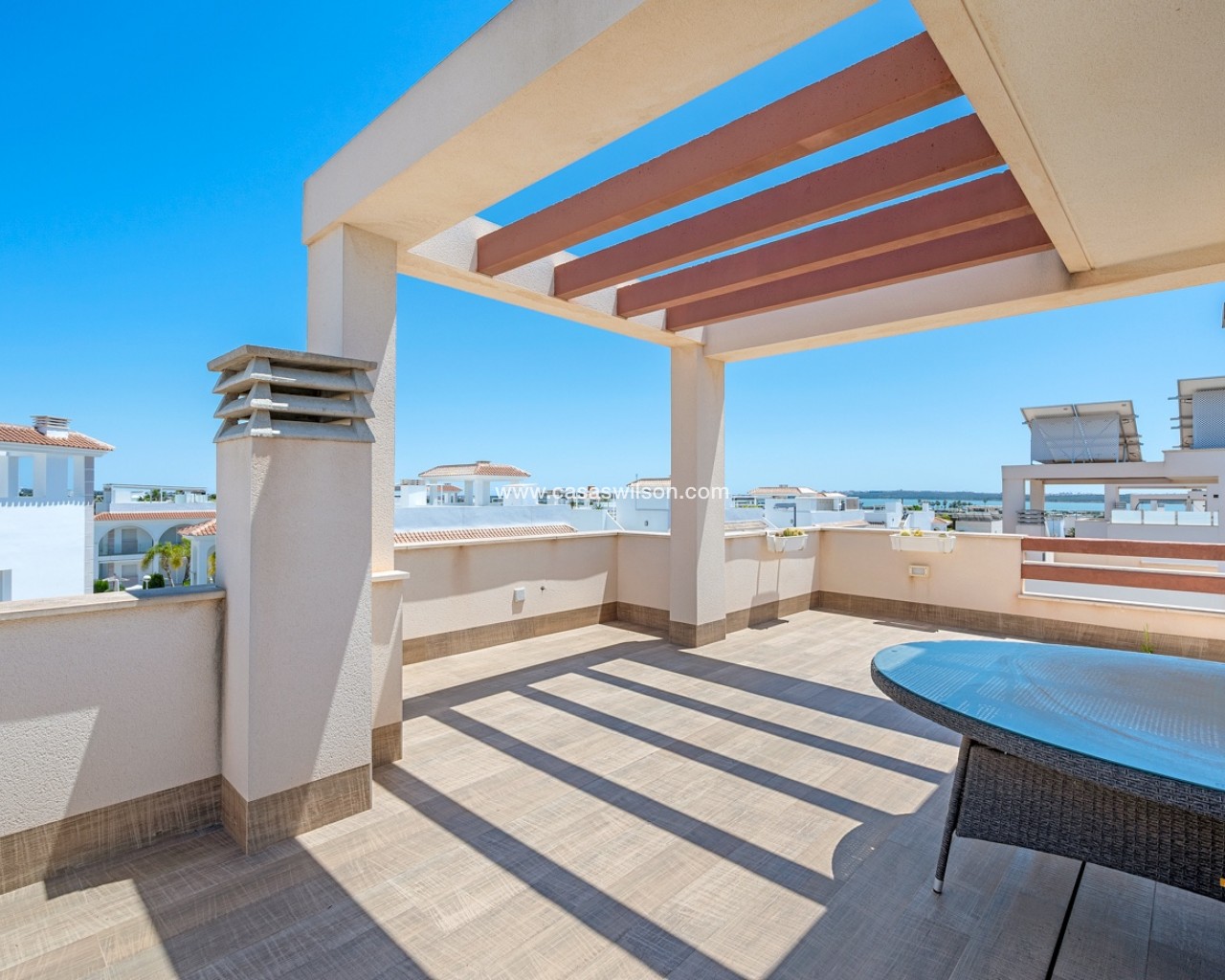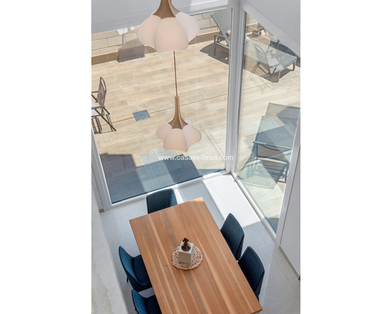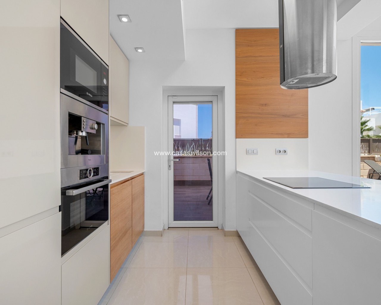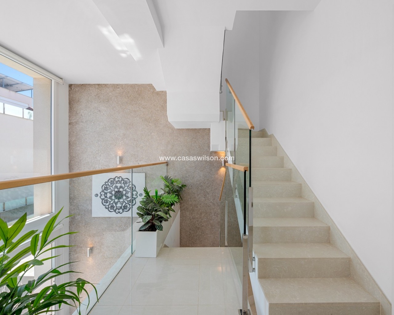 Gelegen in een rustige woonwijk van Ciudad Quesada biedt deze woning, gebouwd in 2018, een functionele indeling en goed benutbare binnen- en buitenruimtes. De woning heeft een bebouwde oppervlakte van 101 m² op een perceel van 184 m², met drie slaapkamers, drie badkamers, een kelder en een dakterras. De begane grond beschikt over een woonkamer, eetruimte en een open keuken met een centraal kookeiland. Op dit niveau bevindt zich ook een slaapkamer met ingebouwde kast, een complete badkamer, een wasruimte en directe toegang tot de tuin en het privézwembad. Op de bovenverdieping zijn nog twee slaapkamers. De hoofdslaapkamer heeft een en-suite badkamer en toegang tot een privéterras. De tweede slaapkamer ligt naast een andere complete badkamer. Een hal verbindt beide kamers. De kelder wordt momenteel gebruikt als recreatieruimte met een biljartgedeelte en biedt extra ruimte voor diverse doeleinden. Het privé dakterras beschikt over een volledig geïnstalleerde en functionele buitenkeuken met directe toegang vanuit het huis, waardoor het een comfortabele ruimte is voor gebruik het hele jaar door. Buiten beschikt de woning over een privézwembad van 3,30 x 6,50 meter, een tuin met kunstgras en een privéparkeerplaats op het perceel. Als hoekwoning geniet het huis van meer natuurlijk licht en meer onafhankelijkheid ten opzichte van aangrenzende woningen. De woning wordt volledig gemeubileerd verkocht en is uitgerust met airconditioning, ingebouwde kasten, automatische rolluiken, horren, een beveiligingssysteem en een volledig uitgeruste keuken. Ze is geschikt als permanente woning of als vakantieverblijf, en ligt dicht bij voorzieningen en hoofdverkeersroutes.