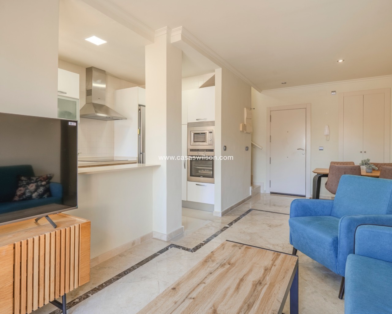 Dit exclusieve duplex-penthouse met 3 slaapkamers bevindt zich in de prestigieuze urbanisatie Nueva Ribera Beach Club, direct aan de eerste lijn van het beste strand van de Mar Menor. Met een bebouwde oppervlakte van 97,78 m² verdeeld over twee verdiepingen, biedt deze woning de perfecte combinatie van comfort, stijl en een bevoorrechte ligging. Op de hoofdverdieping vindt u een lichte en ruime woon-eetkamer met toegang tot een balkon met uitzicht op het gemeenschappelijke zwembad, een volledig uitgeruste aparte keuken, een complete badkamer, een tweede slaapkamer en een hoofdslaapkamer met toegang tot een ander balkon met uitzicht op de aangelegde gemeenschappelijke tuin en het zwembad. De bovenverdieping beschikt over een extra slaapkamer, een complete badkamer, een handige berging en een groot privé-solariumterras, ideaal om buiten te ontspannen en het hele jaar door van het mediterrane klimaat te genieten. De woning omvat een parkeerplaats en een berging in de prijs. Opvallend zijn de uitstekende afwerkingen: gepantserde voordeur, witgelakte binnendeuren en inbouwkasten van hoge kwaliteit. De afgesloten urbanisatie biedt uitgestrekte groene zones, een gemeenschappelijk zwembad en 24-uurs bewaking, allemaal in een rustige en veilige omgeving op slechts een paar stappen van de zee, waardoor u kunt genieten van zon, strand en een unieke levensstijl aan de Mar Menor.