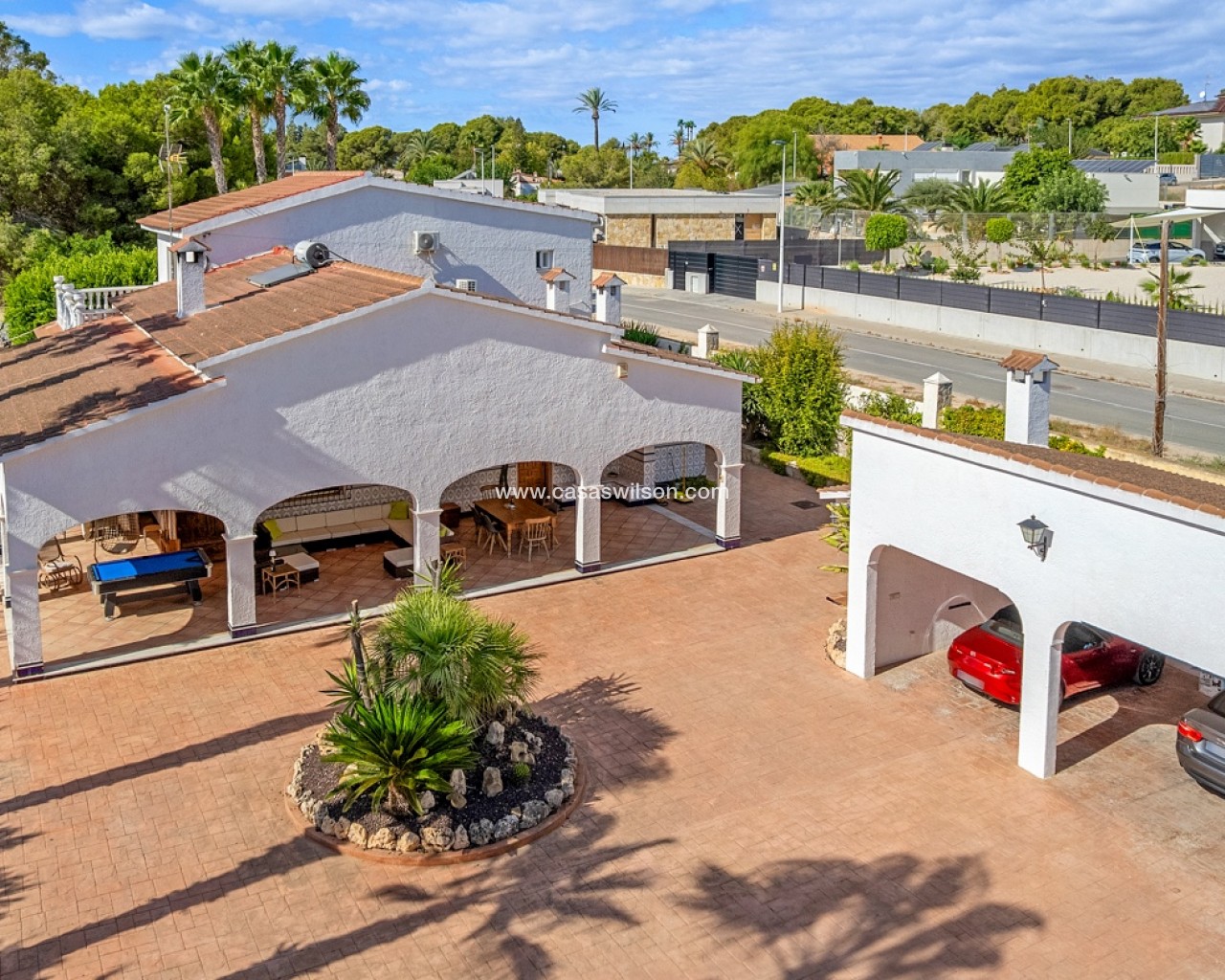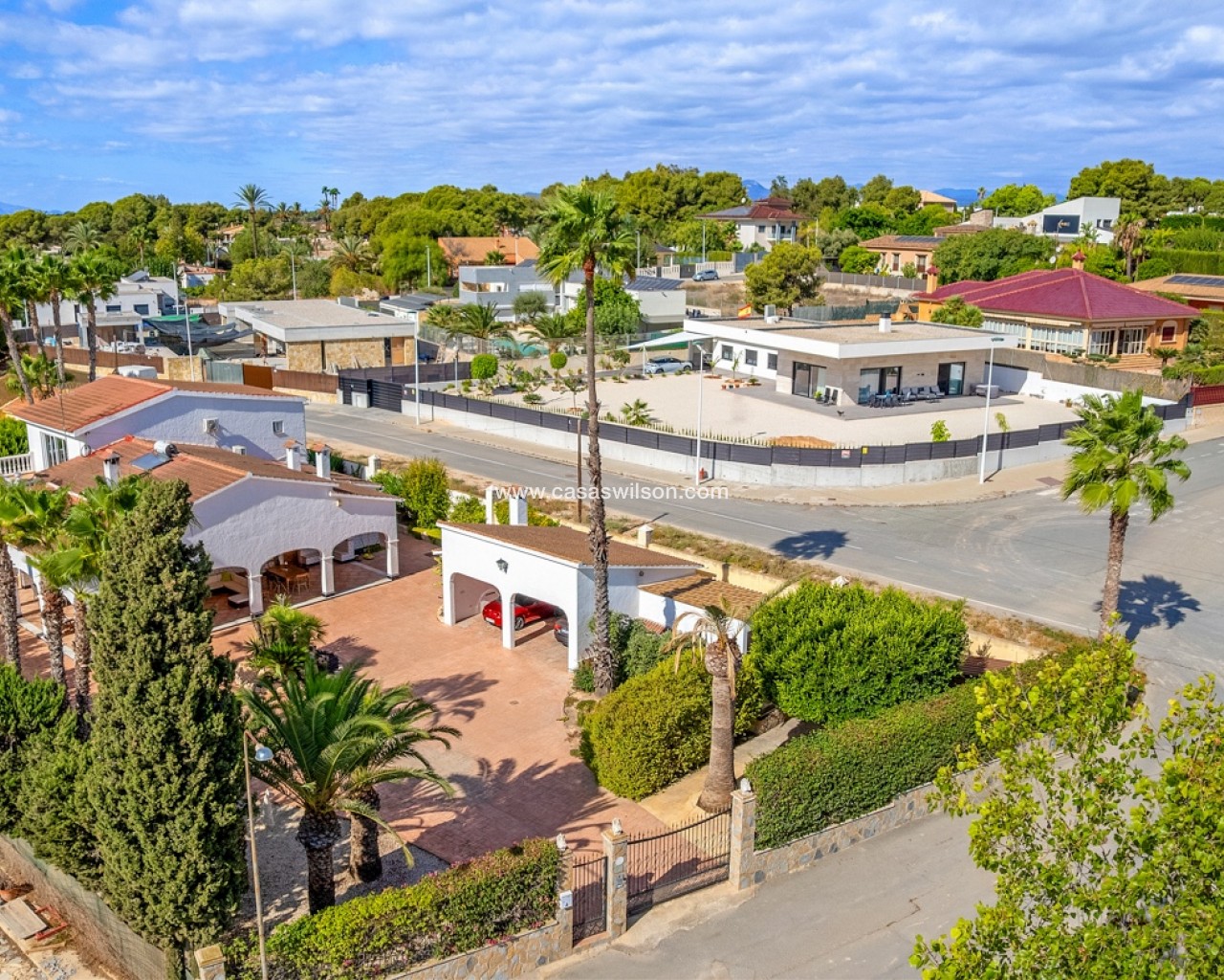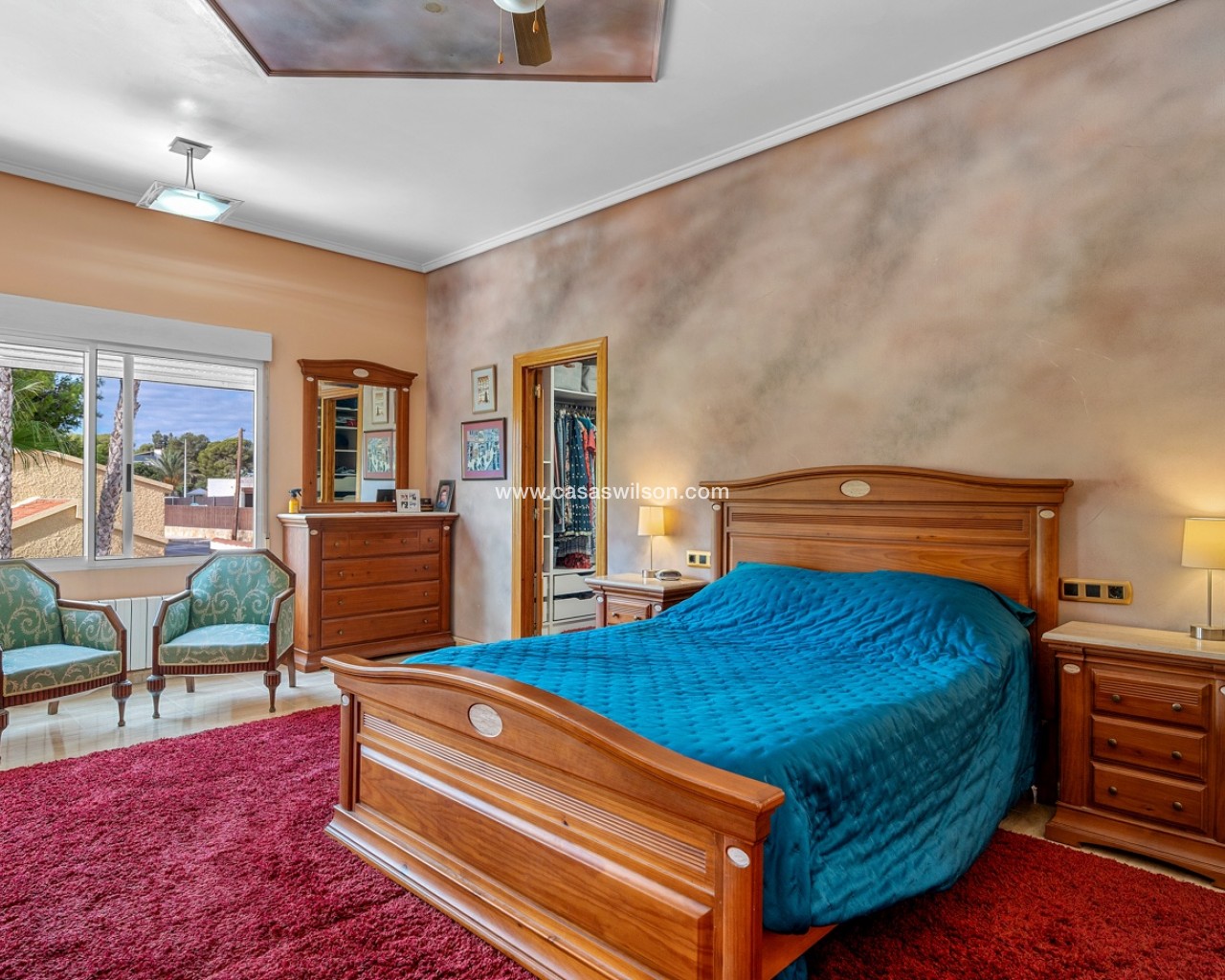Tussen de zee en de stad Elche ligt deze spectaculaire villa in mediterrane stijl, waar elk detail is ontworpen om te genieten van een zonnig, rustig en toch levendig leven.Op een perceel van 2.220 m² biedt de woning de perfecte balans tussen privacy, vrijheid en ontspanning. Er is privéparkeergelegenheid voor twee auto’s, extra ruimte voor motoren of kleinere voertuigen, en ruime zones waar kinderen veilig kunnen spelen.De grote veranda met dubbele oriëntatie nodigt uit tot ontspanning op elk moment van de dag, of wordt de favoriete plek voor etentjes met vrienden en familie, met een barbecue of paella in de buitenkeuken.Aan de zijkant bevindt zich een gastenverblijf met een volledig uitgeruste slaapkamer en badkamer — ideaal voor bezoekers. Achter het huis liggen het privézwembad en het ruime terras, die op zonnige dagen het hart van de woning vormen. Binnen behoudt het huis zijn warme, gastvrije karakter. De volledig uitgeruste keuken beschikt over een ondergrondse wijnkelder, ideaal voor wijnliefhebbers. De woon- en eetkamer in Britse stijl combineert charme en comfort. Op dezelfde verdieping bevinden zich drie ruime slaapkamers en twee badkamers (waarvan één en suite met directe toegang tot het zwembad), terwijl het kantoor ook kan worden omgebouwd tot extra slaapkamer. Op de bovenverdieping heerst rust: stel je voor dat je een boek leest in de leeskamer, luisterend naar het geknetter van de open haard, of een spelletjesavond beleeft in de zitkamer met toegang tot het privéterras. Op deze verdieping bevindt zich ook de hoofdslaapkamer, met een grote inloopkast en eigen badkamer. Gelegen in een rustige maar goed bereikbare omgeving, combineert deze villa het beste van alle werelden: de zeelucht van het strand, de charme van een historische stad als Elche en de nabijheid van de internationale luchthaven van Alicante. Een huis met een echte mediterrane ziel.
