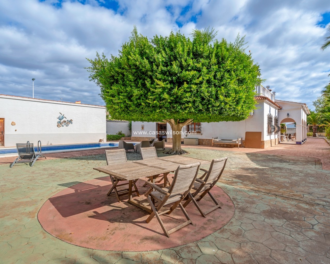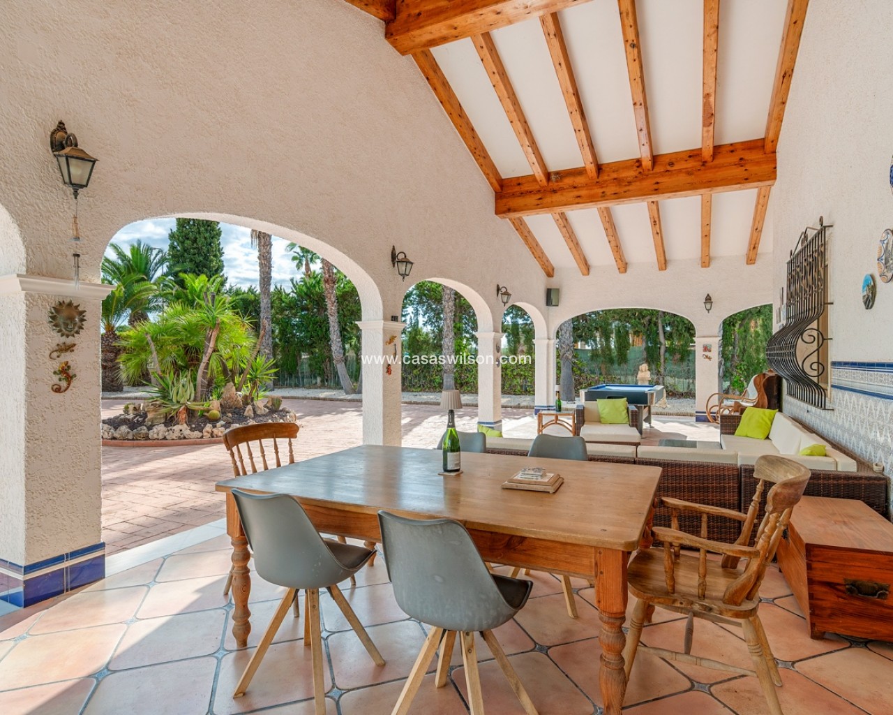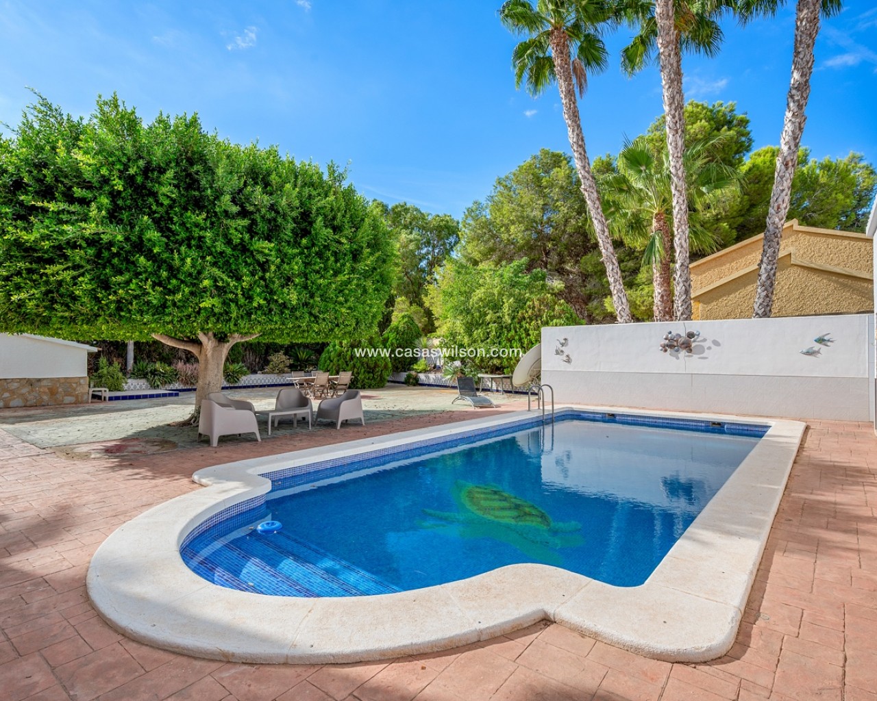 Tussen de zee en de stad Elche ligt deze spectaculaire villa in mediterrane stijl, waar elk detail is ontworpen om te genieten van een zonnig, rustig en toch levendig leven.Op een perceel van 2.220 m² biedt de woning de perfecte balans tussen privacy, vrijheid en ontspanning. Er is privéparkeergelegenheid voor twee auto’s, extra ruimte voor motoren of kleinere voertuigen, en ruime zones waar kinderen veilig kunnen spelen.De grote veranda met dubbele oriëntatie nodigt uit tot ontspanning op elk moment van de dag, of wordt de favoriete plek voor etentjes met vrienden en familie, met een barbecue of paella in de buitenkeuken.Aan de zijkant bevindt zich een gastenverblijf met een volledig uitgeruste slaapkamer en badkamer — ideaal voor bezoekers. Achter het huis liggen het privézwembad en het ruime terras, die op zonnige dagen het hart van de woning vormen. Binnen behoudt het huis zijn warme, gastvrije karakter. De volledig uitgeruste keuken beschikt over een ondergrondse wijnkelder, ideaal voor wijnliefhebbers. De woon- en eetkamer in Britse stijl combineert charme en comfort. Op dezelfde verdieping bevinden zich drie ruime slaapkamers en twee badkamers (waarvan één en suite met directe toegang tot het zwembad), terwijl het kantoor ook kan worden omgebouwd tot extra slaapkamer. Op de bovenverdieping heerst rust: stel je voor dat je een boek leest in de leeskamer, luisterend naar het geknetter van de open haard, of een spelletjesavond beleeft in de zitkamer met toegang tot het privéterras. Op deze verdieping bevindt zich ook de hoofdslaapkamer, met een grote inloopkast en eigen badkamer. Gelegen in een rustige maar goed bereikbare omgeving, combineert deze villa het beste van alle werelden: de zeelucht van het strand, de charme van een historische stad als Elche en de nabijheid van de internationale luchthaven van Alicante. Een huis met een echte mediterrane ziel.
