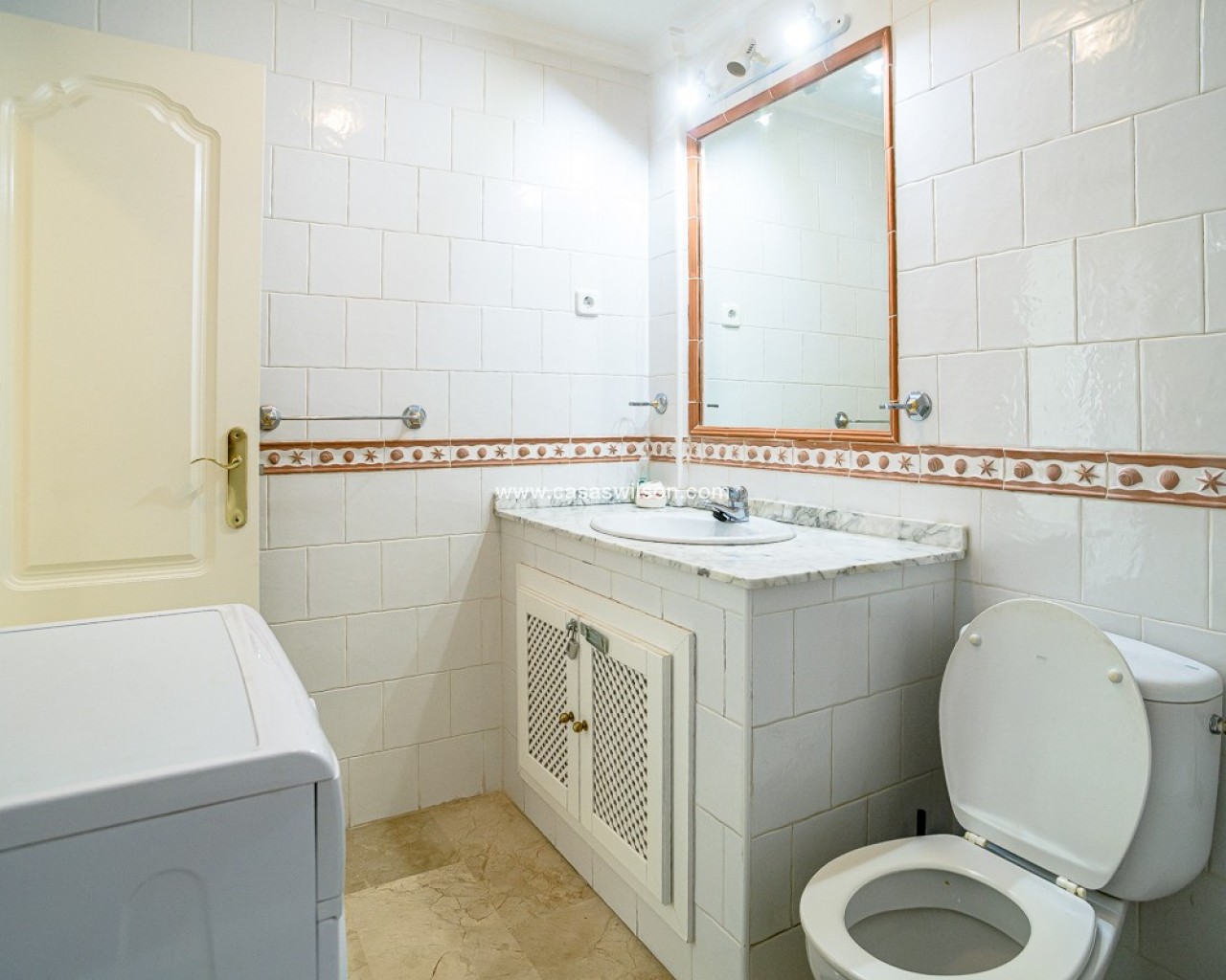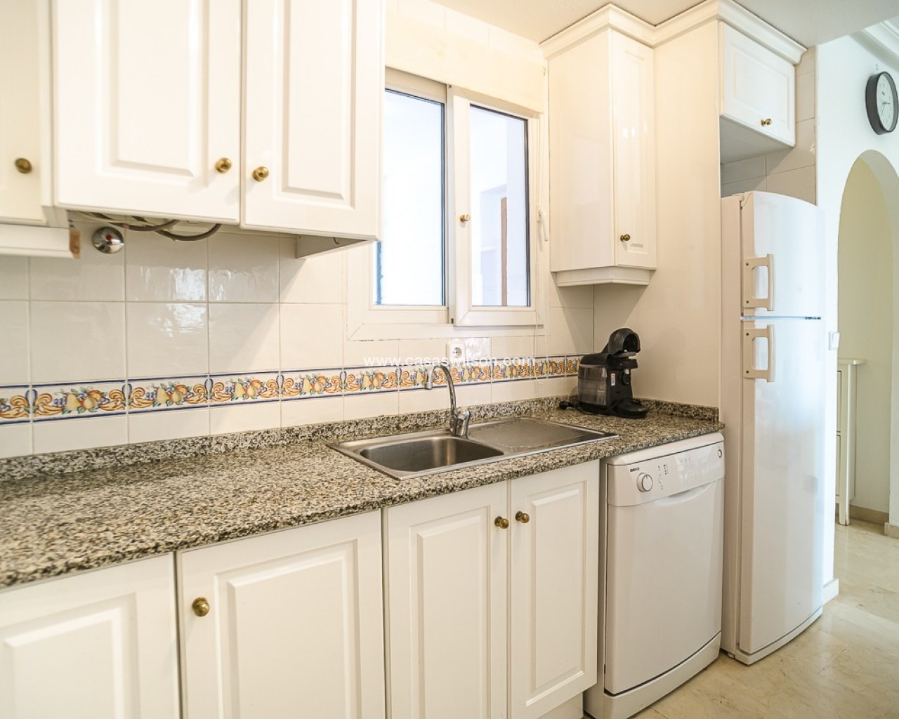 Wij nemen u graag mee naar dit prachtige appartement met 2 slaapkamers en 2 badkamers in hartje Villamartín. Dit appartement ligt op steenworp afstand van het Villamartín Plaza en wordt praktisch omgeven door de golfbaan van Villamartín. Met dit terras op het oosten zijn weidse uitzichten verzekerd en is de zee dus ook goed zichtbaar. Dit volledig instapklare appartement is gelegen in een prachtige en zeer rustige urbanisatie, met een prachtige gemeenschappelijke tuin en toch vlakbij alle restaurants en bars van Villamartín. Wanneer u de woning betreedt, komt u bij het gastentoilet, met direct links de ruime logeerkamer voorzien van ingebouwde kasten. Zeker ruim genoeg voor een tweepersoonsbed. Als we vervolgens de woonkamer binnenlopen, hebben we aan de linkerkant de eethoek en aan de rechterkant de volledig uitgeruste keuken. De keuken is in rustieke stijl, voorzien van alle benodigde moderne apparatuur. Door de grote panoramische ramen is er een overvloed aan natuurlijk licht en dit in combinatie met de zeer grote woonkamer zorgt voor een gevoel van vrijheid. Aan het einde van de woonkamer van dit appartement bevindt zich de hoofdslaapkamer met de en suite badkamer. Opnieuw is deze slaapkamer en badkamer verrassend ruim. De woning dateert uit 2002 en toen was het aantal vierkante meters per woning veel hoger. En dan is er ook nog een ruim terras van 8m², waar je tot in de middag kunt genieten van de lekkerste cocktail van het leven: zon met uitzicht op zee. Het open terrein aan de overkant behoort toe aan de Villamartín Golf Club en kan daarom alleen maar worden getransformeerd in een nog mooiere groene ruimte. Het resort beschikt over een prachtige gemeenschappelijke tuin met een gigantisch zwembad. De maandelijkse huur bedraagt € 800/maand, behalve in de zomermaanden juli en augustus bedraagt deze € 1200 De borg bedraagt 1 maand huur en kan voor 11 maanden gehuurd worden. Internet, elektriciteit en water zijn niet bij de huurprijs inbegrepen Wilt u meer informatie over deze woning op een toplocatie? Of meteen een bezichtiging inplannen? Neem dan gerust contact met ons op!