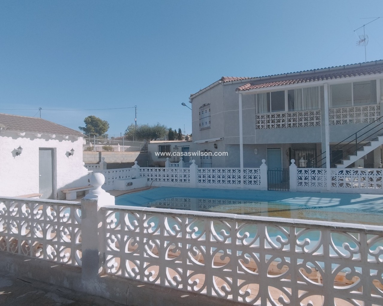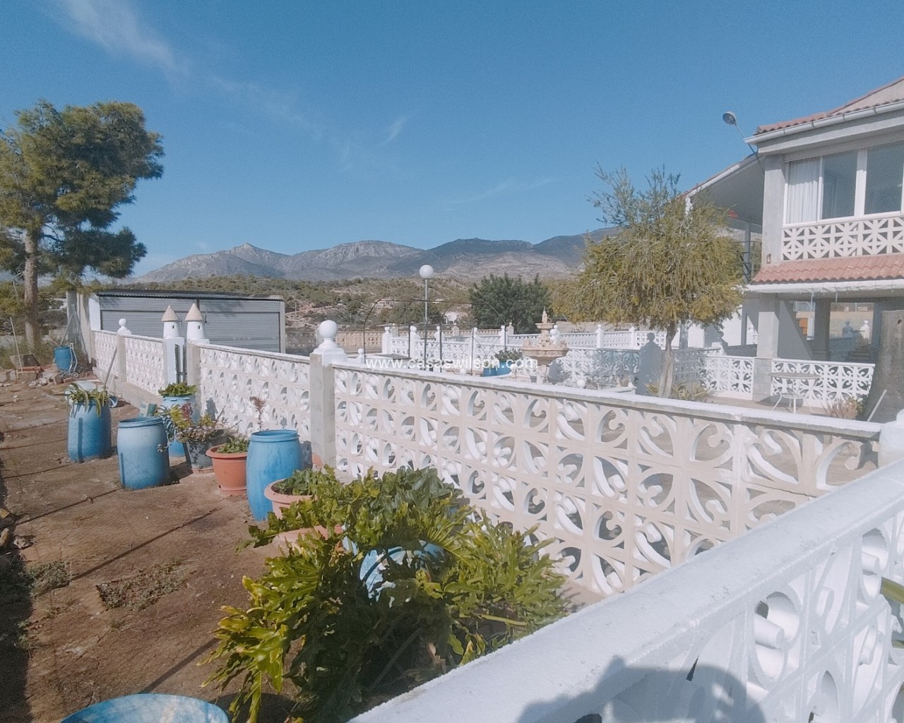 Een kans voor een villa in zeer goede staat in de rustige omgeving van Crevillente, deze ruime villa van 390 m² is ideaal voor een gezin op zoek naar ruimte, comfort en contact met de natuur. Gelegen op een perceel van 1757 m², heeft deze woning een privé zwembad, goed onderhouden tuinen en ruime binnenruimtes, deze woning is ideaal om naar eigen smaak en grootte te maken, in het onderste terras zou het uitgebreid kunnen worden om de begane grond ruimer, moderner te maken.Belangrijkste kenmerken: 6 slaapkamers: Ruim en licht, perfect voor het hele gezin of om extra ruimtes te creëren zoals een kantoor of speelkamer.2 woonkamers: Royaal in ruimte, ideaal voor familiebijeenkomsten of om te genieten van rustige momenten, met directe toegang tot de glazen veranda.3 complete badkamers en een bij het zwembad: Functioneel verdeeld om comfort te bieden aan alle leden van het huishouden.Beglaasde veranda op de eerste verdieping: Een veelzijdige ruimte waar je het hele jaar door kunt genieten van het uitzicht en het natuurlijke licht.Buiten: Privézwembad: De perfecte aanvulling voor warme dagen, ideaal om van te genieten met familie en vrienden.Verzorgde tuin: Ideale ruimte voor buitenactiviteiten, spelletjes voor kinderen of gewoon ontspannen in een natuurlijke omgeving.Deze villa ligt in een rustige en goed bereikbare wijk van Crevillente, bekend om zijn levenskwaliteit. De woning ligt op ongeveer 3 km van essentiële voorzieningen zoals winkels en scholen, met gemakkelijke toegang tot de hoofdwegen.