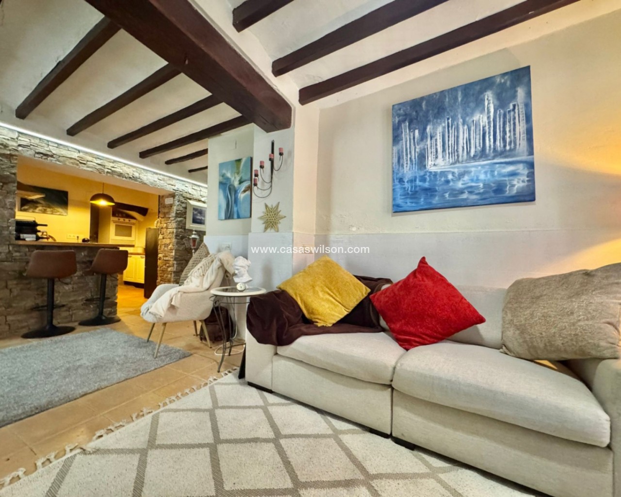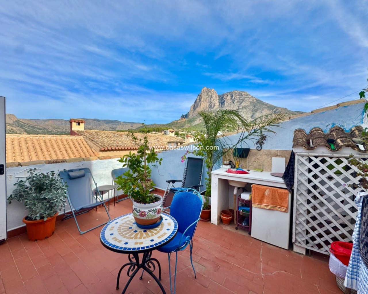 Charmante geschakelde woning in het hart van Finestrat Pueblo – 102 m² met uitzicht op de bergenOntdek deze gezellige en lichte geschakelde woning van 102 m², gelegen in het pittoreske oude centrum van Finestrat, op loopafstand van alle voorzieningen en met de onmiskenbare charme van een traditioneel dorp. De woning is verdeeld over drie verdiepingen plus een privé solarium met indrukwekkend uitzicht op de majestueuze Puig Campana-berg.Op de begane grond biedt het huis een ruime woonkamer-eetkamer die geïntegreerd is met een volledig uitgeruste keuken, ideaal om comfortabel en praktisch te wonen. Een gastentoilet en een charmante binnenplaats completeren dit niveau, perfect om buiten te ontspannen of momenten te delen met vrienden en familie.Op de eerste verdieping vindt u twee tweepersoons slaapkamers, een complete badkamer en een klein terras, wat zorgt voor lichtinval en natuurlijke ventilatie in de ruimtes.De tweede verdieping herbergt een ruime open slaapkamer, suite-stijl, met een eigen badkamer, perfect als hoofdslaapkamer of zelfs als multifunctionele ruimte voor gasten, een kantoor of een ontspanningsruimte.Tenslotte biedt het solarium op het dak een unieke plek om te ontspannen, met de mogelijkheid om een barbecue te installeren en te genieten van het panoramische uitzicht op de Puig Campana en de charmante omgeving van het dorp.Een eigendom vol karakter, ideaal als hoofdverblijf, tweede woning of aantrekkelijke investering in een van de mooiste dorpen aan de Costa Blanca.