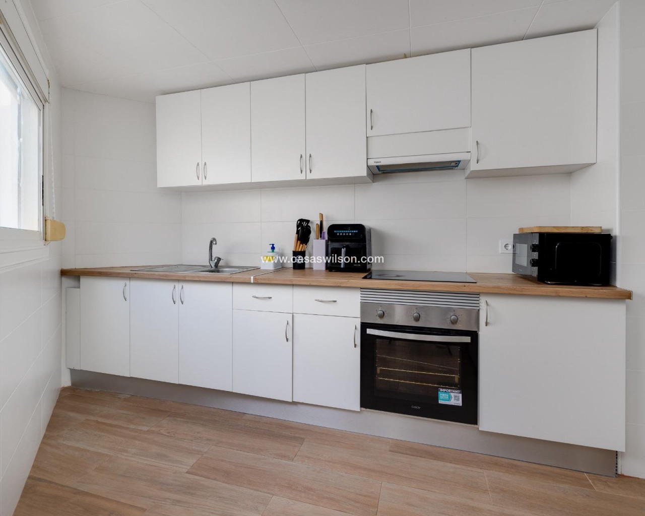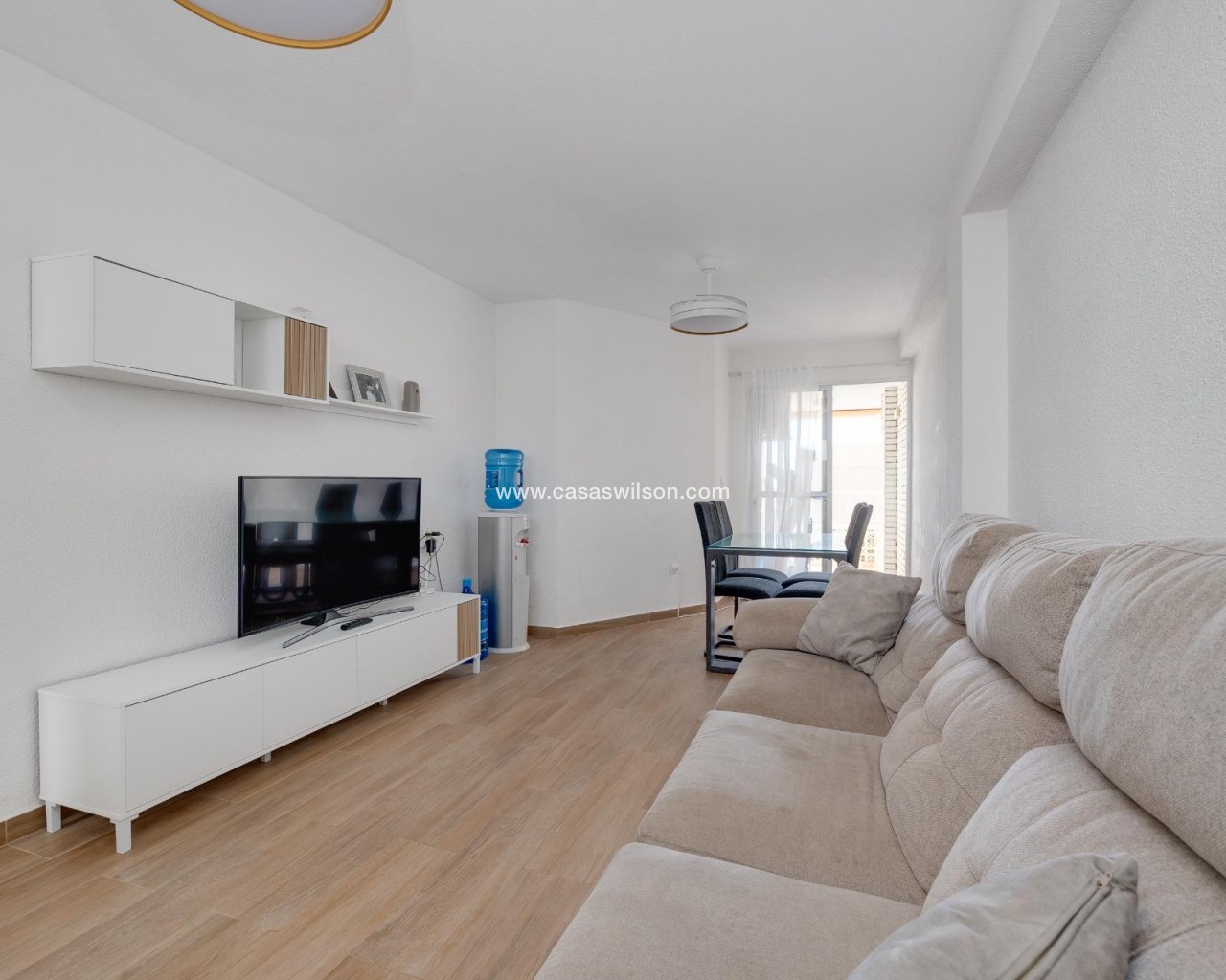 Uitzicht op het strand en verbeterde leefruimte in het hart van Torrevieja Stap binnen in het uitzonderlijke - dit prachtige appartement biedt direct panoramisch uitzicht op zee vanaf het charmante terras, waardoor u de glinsterende Middellandse Zee voor de deur heeft. Deze woning is zorgvuldig omgebouwd van een driekamerappartement naar een ruim tweekamerappartement en biedt nu meer wooncomfort en elegantie - met grotere woon- en eetruimtes, royale slaapkamers en een verfijnde indeling. Deze woning ligt in het bruisende Playa Los Locos (letterlijk vertaald: Het Gekke Strand) van Torrevieja, op loopafstand van het gouden zandstrand, de cafés aan de boulevard, restaurants en alle lokale voorzieningen. U zult genieten van het ontwaken met uitzicht op zee, luieren op het terras terwijl de golven zachtjes voorbij rollen, en ontspannen in een ruimte die doelgericht, licht en open aanvoelt. De op maat gemaakte verbouwing van drie naar twee slaapkamers is ontworpen om de levensstijl te verbeteren: geen krappe gastenkamers meer, maar een indeling waarbij elke ruimte zinvol is. De master suite is ruim, de tweede tweepersoonsslaapkamer is zeer comfortabel en ideaal voor familie, gasten of flexibel gebruik als thuiskantoor/fitnessruimte. De open woon-/eetkamer is nu ruim genoeg voor entertainment, dagelijks leven en veel momenten met uitzicht op zee. Belangrijkste kenmerken in één oogopslag: • Eerstelijnsligging met indrukwekkend ononderbroken uitzicht over het strand en de kustlijn • Gerenoveerd volgens hoge normen, omgebouwd van 3 slaapkamers naar een luxere indeling met 2 slaapkamers • Charmant terras om te genieten van de zeewind en het uitzicht — stel je voor: 's ochtends koffie of 's avonds een glas wijn met de golven op de achtergrond • Centraal gelegen en toch rustig, waardoor je zowel de levendigheid van Torrevieja als de rust van het leven aan het strand kunt ervaren • Ideaal als droomhuis, vakantiehuis of slimme investering (combineer aantrekkelijke locatie met geoptimaliseerde indeling) Kortom: dit is een zeldzame kans om een woning aan het strand te bemachtigen waar de typische indeling is opgewaardeerd tot iets eleganter en ruimer. Als u op zoek bent naar een woning waar uitzicht, kwaliteit en levensstijl samenkomen, dan is dit huis een schot in de roos.
