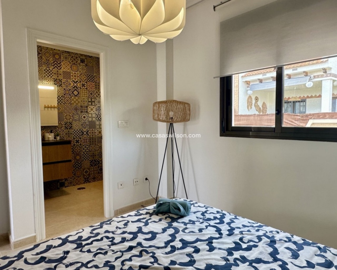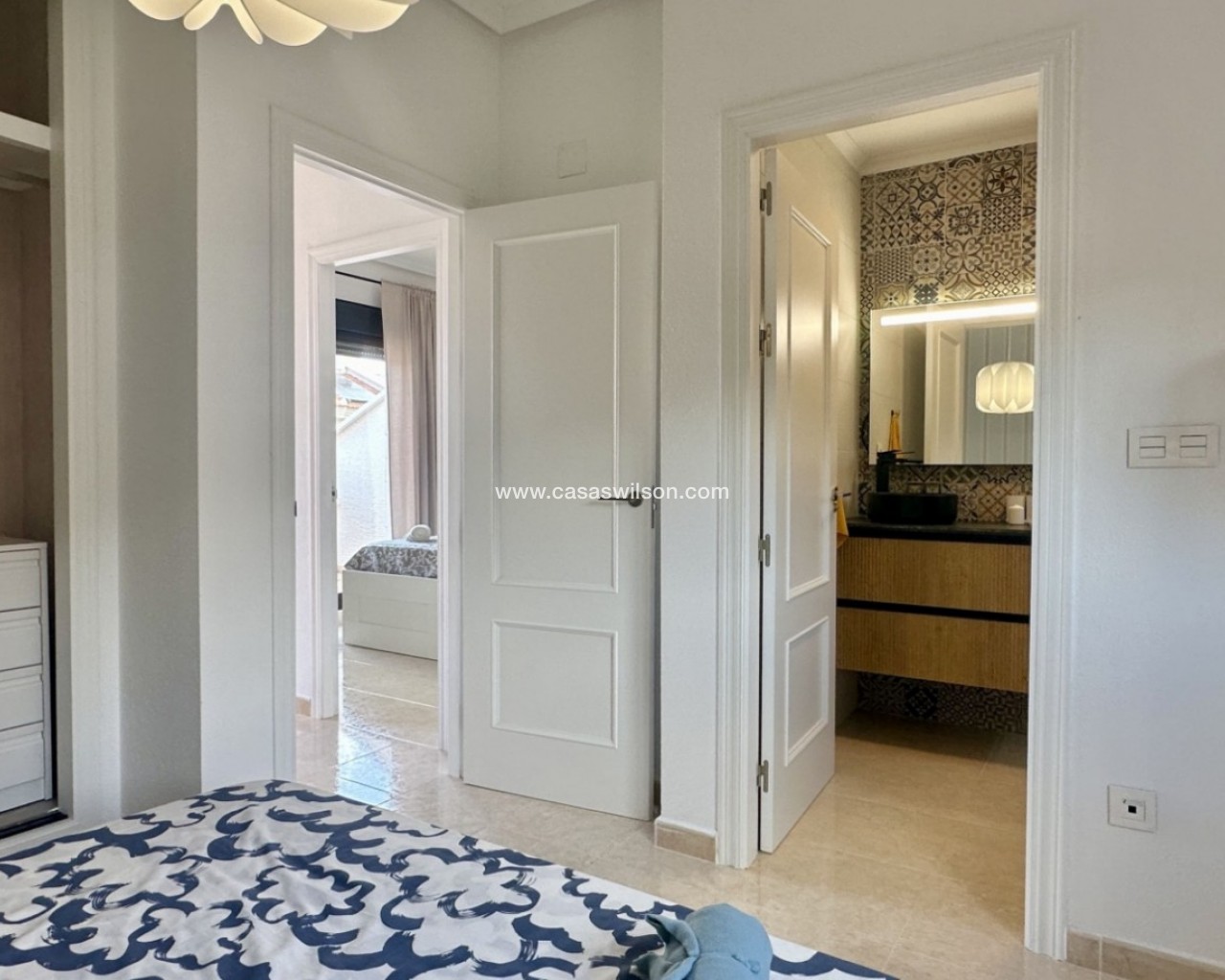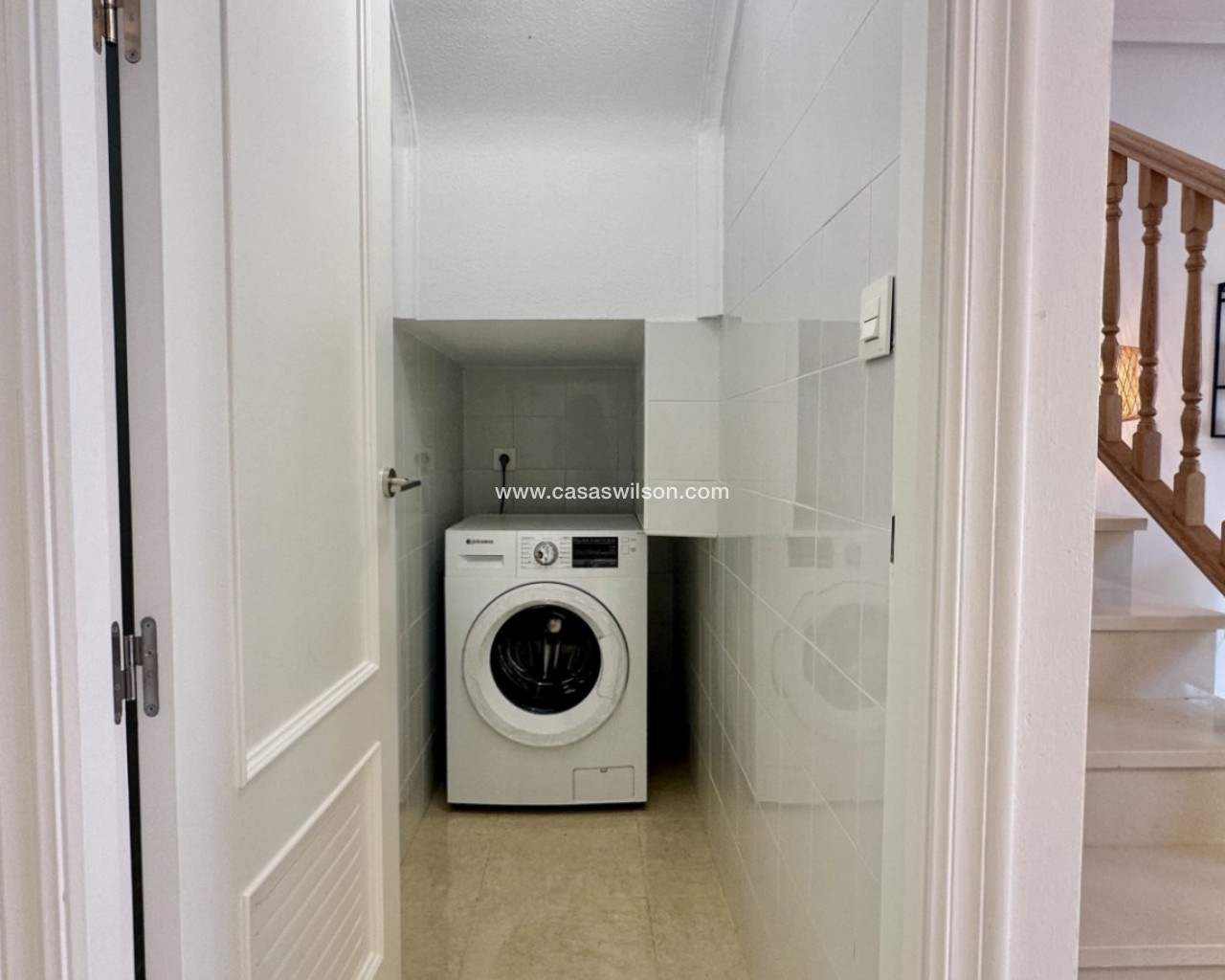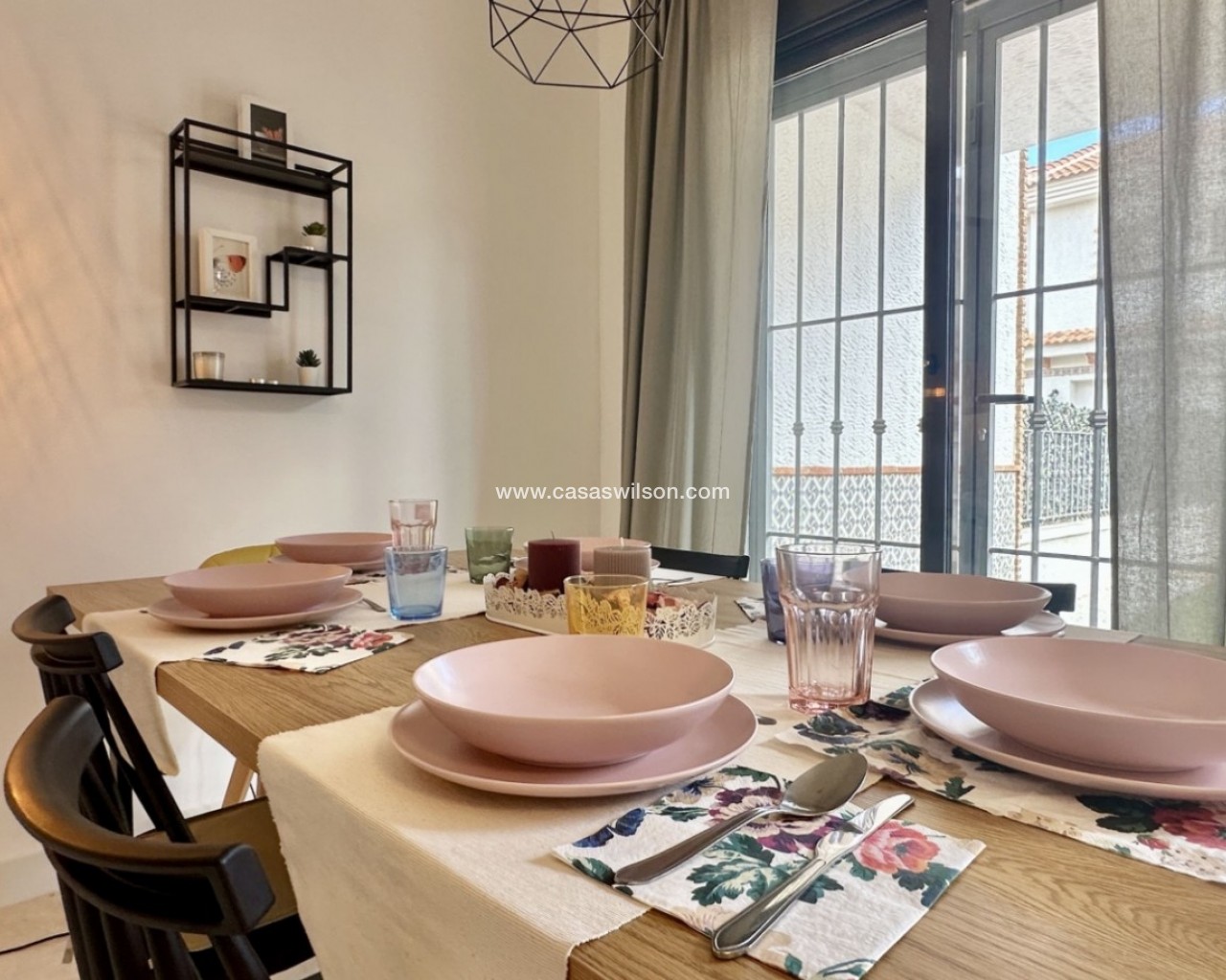 Wij zijn trots om dit prachtig gerenoveerde herenhuis te presenteren, gelegen in een rustige maar gunstige omgeving van San Miguel de Salinas — de perfecte mix van comfort, ruimte en modern wonen. Deze woning met 3 slaapkamers en 3 badkamers is instapklaar en ideaal als permanente woning, vakantieverblijf of investeringspand. Uitstekende locatie Gelegen in een goed onderhouden urbanisatie, op loopafstand van twee restaurants en een internationale school. Op korte rijafstand vind je het dorp, winkelcentra en extra scholen — de ideale balans tussen rust en bereikbaarheid. Buitenleven Geniet van een ruime, onderhoudsvriendelijke voortuin met een groot terras — perfect om buiten te dineren, een boek te lezen of gasten te ontvangen in de zon. Lichte en functionele interieurs De begane grond beschikt over een lichte woon- en eetkamer met stijlvolle afwerking en een uitnodigende sfeer. De aparte volledig uitgeruste keuken heeft moderne apparatuur en directe toegang tot een wasruimte. Ook op deze verdieping bevindt zich een flexibel slaapkamer (momenteel een eenpersoonskamer) en een prachtig gerenoveerde badkamer met inloopdouche — ideaal voor gasten of wie gelijkvloers wil wonen. Bovenverdieping Boven vind je twee ruime tweepersoonsslaapkamers, elk met een eigen en-suite badkamer. De hoofdslaapkamer heeft bovendien toegang tot een privébalkon met vrij uitzicht — een heerlijke plek voor een kopje koffie in de ochtend of een frisse avondbries. Extra gemakDe woning beschikt over toegang tot een beveiligde gemeenschappelijke garage met berging en een privéparkeerplaats, een waardevolle voorziening in deze populaire buurt. Of je nu op zoek bent naar een stijlvolle nieuwe woning of een solide investering aan de Costa Blanca, dit perfect gepresenteerde herenhuis is een fantastische kans. Neem vandaag nog contact met ons op voor een privébezichtiging — dit pand blijft niet lang op de markt!