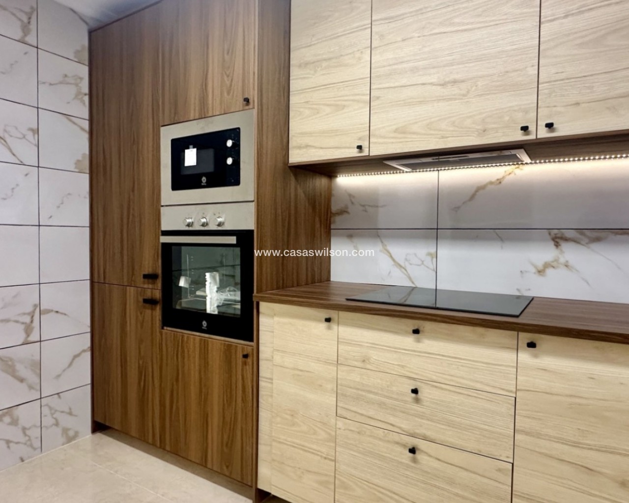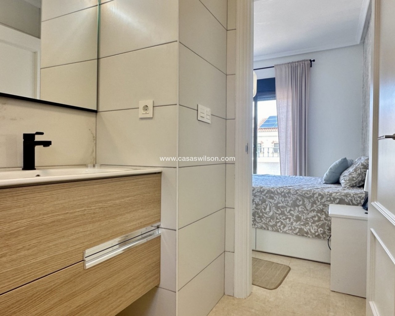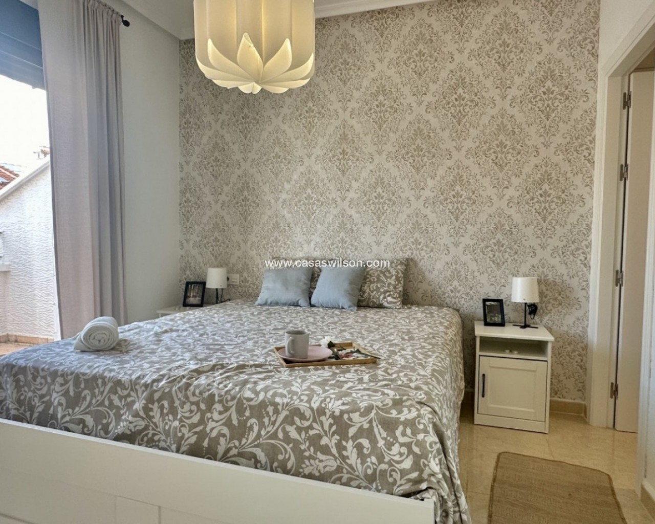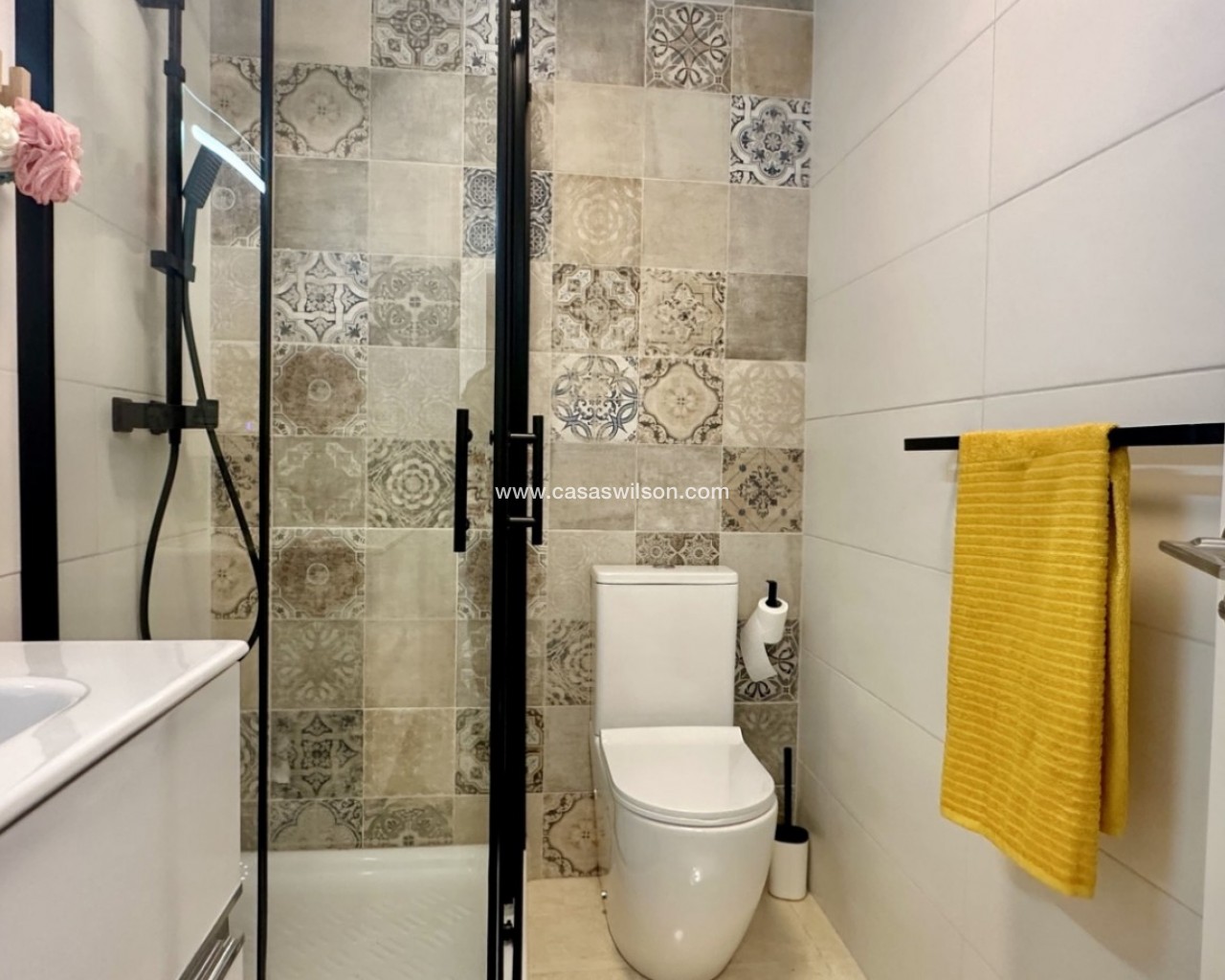 Wij zijn trots om dit prachtig gerenoveerde herenhuis te presenteren, gelegen in een rustige maar gunstige omgeving van San Miguel de Salinas — de perfecte mix van comfort, ruimte en modern wonen. Deze woning met 3 slaapkamers en 3 badkamers is instapklaar en ideaal als permanente woning, vakantieverblijf of investeringspand. Uitstekende locatie Gelegen in een goed onderhouden urbanisatie, op loopafstand van twee restaurants en een internationale school. Op korte rijafstand vind je het dorp, winkelcentra en extra scholen — de ideale balans tussen rust en bereikbaarheid. Buitenleven Geniet van een ruime, onderhoudsvriendelijke voortuin met een groot terras — perfect om buiten te dineren, een boek te lezen of gasten te ontvangen in de zon. Lichte en functionele interieurs De begane grond beschikt over een lichte woon- en eetkamer met stijlvolle afwerking en een uitnodigende sfeer. De aparte volledig uitgeruste keuken heeft moderne apparatuur en directe toegang tot een wasruimte. Ook op deze verdieping bevindt zich een flexibel slaapkamer (momenteel een eenpersoonskamer) en een prachtig gerenoveerde badkamer met inloopdouche — ideaal voor gasten of wie gelijkvloers wil wonen. Bovenverdieping Boven vind je twee ruime tweepersoonsslaapkamers, elk met een eigen en-suite badkamer. De hoofdslaapkamer heeft bovendien toegang tot een privébalkon met vrij uitzicht — een heerlijke plek voor een kopje koffie in de ochtend of een frisse avondbries. Extra gemakDe woning beschikt over toegang tot een beveiligde gemeenschappelijke garage met berging en een privéparkeerplaats, een waardevolle voorziening in deze populaire buurt. Of je nu op zoek bent naar een stijlvolle nieuwe woning of een solide investering aan de Costa Blanca, dit perfect gepresenteerde herenhuis is een fantastische kans. Neem vandaag nog contact met ons op voor een privébezichtiging — dit pand blijft niet lang op de markt!