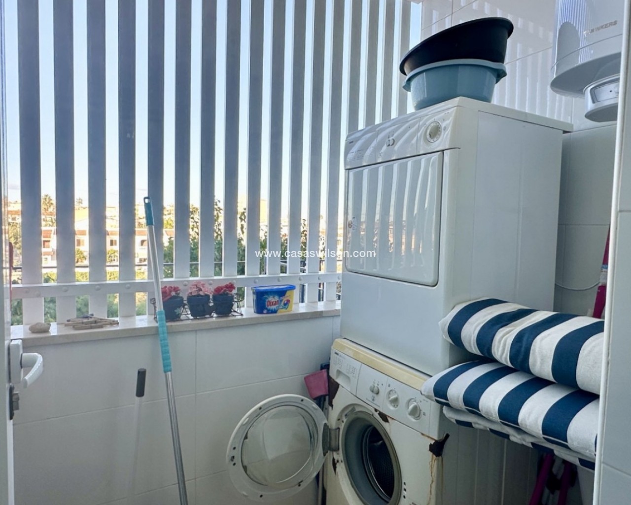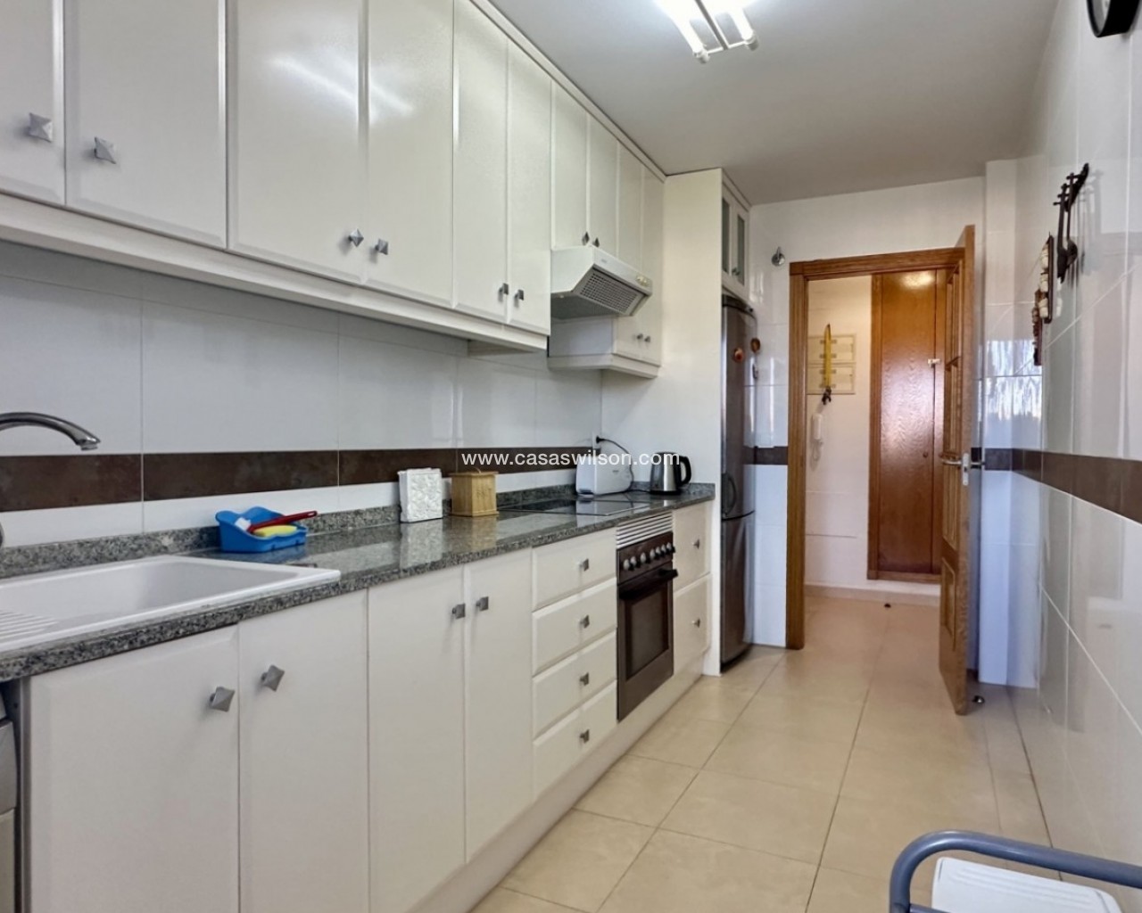 Dit charmante appartement op de begane grond ligt slechts 200 meter van het strand in Mil Palmeras, een van de meest rustige en schilderachtige delen van Pilar de la Horadada. Omringd door natuur en open ruimtes biedt het de perfecte combinatie van comfort, functionaliteit en mediterrane charme — ideaal voor zowel vakanties als permanent wonen. De woning heeft een totale oppervlakte van 90 m² met twee lichte slaapkamers met inbouwkasten, een badkamer met daglicht, een volledig uitgeruste keuken en een ruime woonkamer met directe toegang tot een groot terras van 50 m² met prachtig zeezicht. Het appartement wordt volledig gemeubileerd verkocht, beschikt over airconditioning en heeft ramen in alle kamers waardoor het veel natuurlijk licht krijgt. De residentie biedt een zwembad met kinderbad, twee jacuzzi’s (open in de zomer), een tennisbaan, voetbalveld en speeltuin omgeven door groene zones. Het gebouw heeft een lift en is volledig toegankelijk voor mindervaliden. De woning beschikt over een ruime garage en berging. Gelegen op slechts 200 meter van de zee en 500 meter van het centrum met winkels en restaurants is dit een ideale woning om te genieten van rust, comfort en de mediterrane levensstijl.