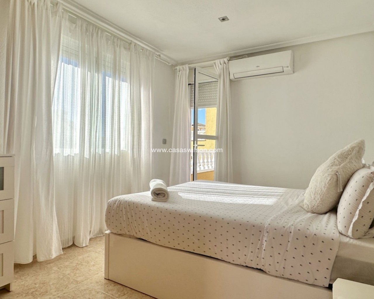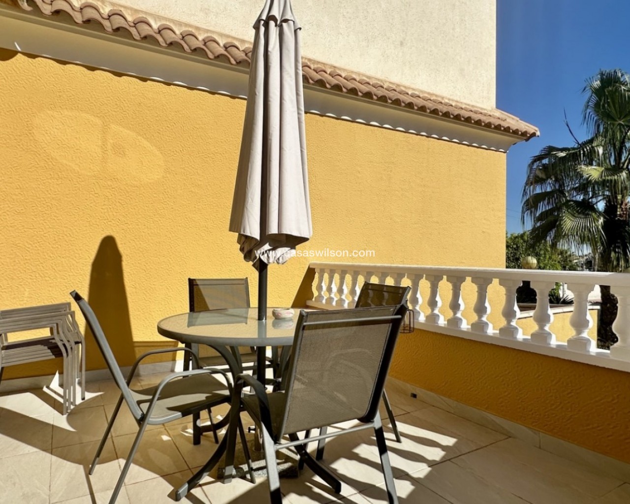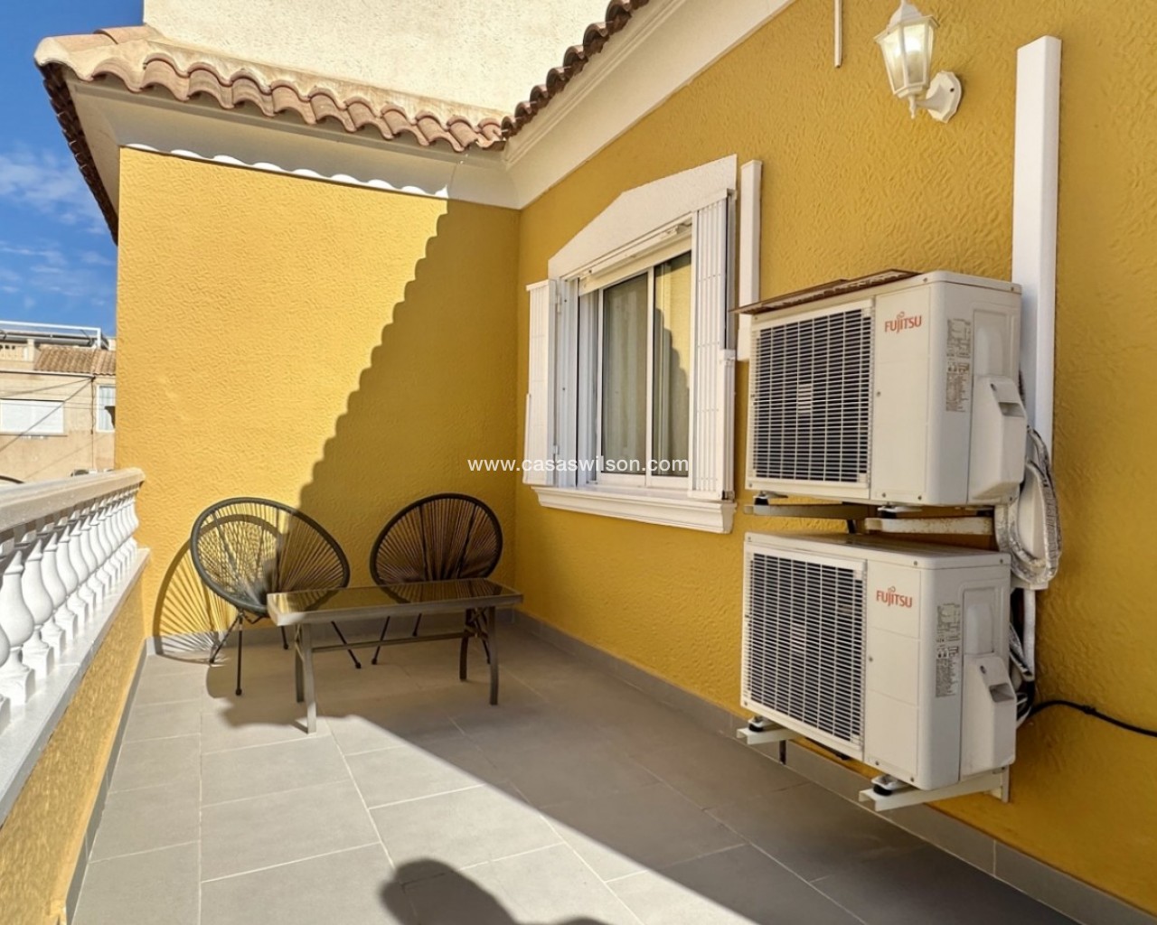 Deze prachtige halfvrijstaande villa met 2 verdiepingen biedt 167 m² gebouwd en 116 m² woonoppervlak. Gelegen in een rustige, veilige woonwijk met een gemeenschappelijk zwembad en groene zones. De woning beschikt over 3 ruime slaapkamers, 2 badkamers, een aparte volledig ingerichte keuken en een lichte woonkamer met airconditioning. Er zijn ook 4 privéterrassen, perfect om te ontspannen of buiten te eten. Geweldige locatie: 6 minuten naar het strand5 minuten naar La Zenia Boulevard10 minuten naar het ziekenhuis van Torrevieja2 minuten naar scholen Perfect als gezinswoning, vakantiehuis of investering.