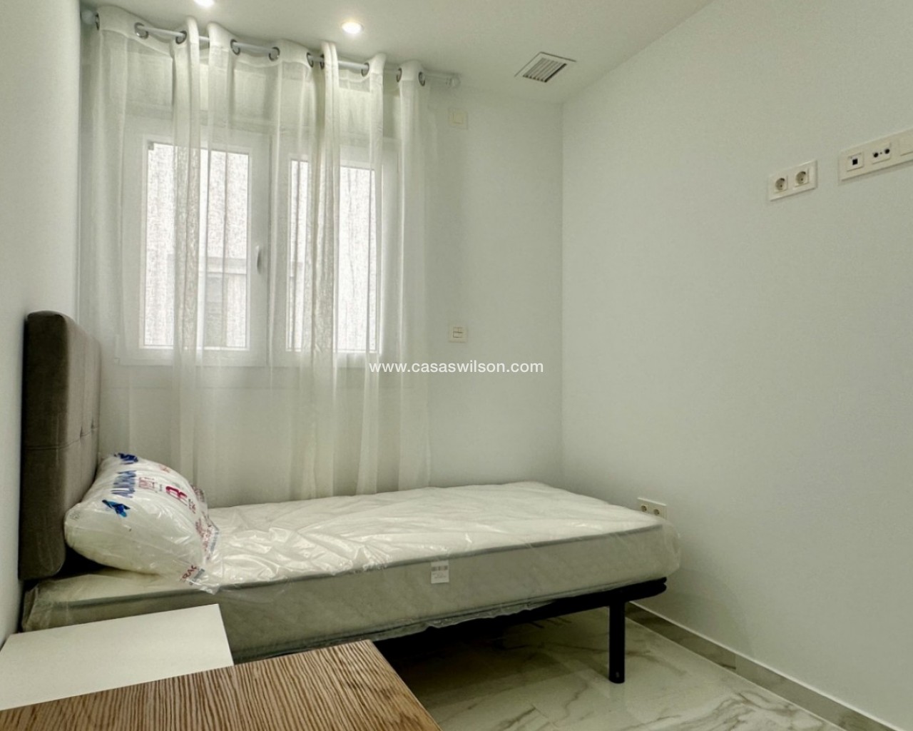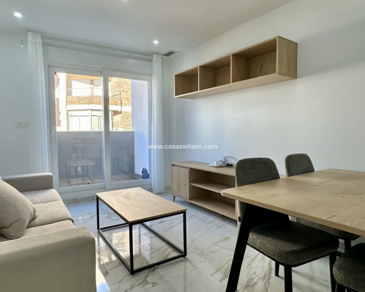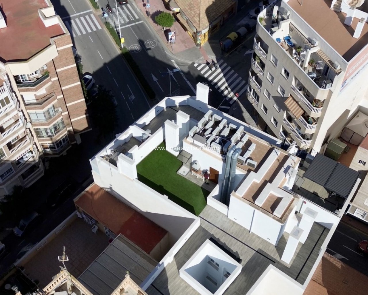 Dit moderne en uitstekend onderhouden appartement ligt in het centrum van Torrevieja, slechts 800 meter van het strand. Gelegen op de derde verdieping van een recent gebouw, biedt het een lichte en comfortabele leefruimte met twee tweepersoonsslaapkamers, een complete badkamer, en een ideale indeling voor zowel permanente bewoning als vakantiegebruik. De woning beschikt over een westelijk gelegen terras van 5 m², dat zorgt voor fijne middagzon. Binnen vind je massief houten timmerwerk, een volledig ingerichte keuken en moderne afwerkingen. Bewoners profiteren van centrale airconditioning, een moderne lift, mindervaliden-toegang en een gemeenschappelijke sauna. Het indrukwekkende gemeenschappelijke solarium met barbecuehoek en zeezicht vormt een groot pluspunt. Gelegen nabij supermarkten, medische diensten, scholen, winkels, restaurants en groene zones.