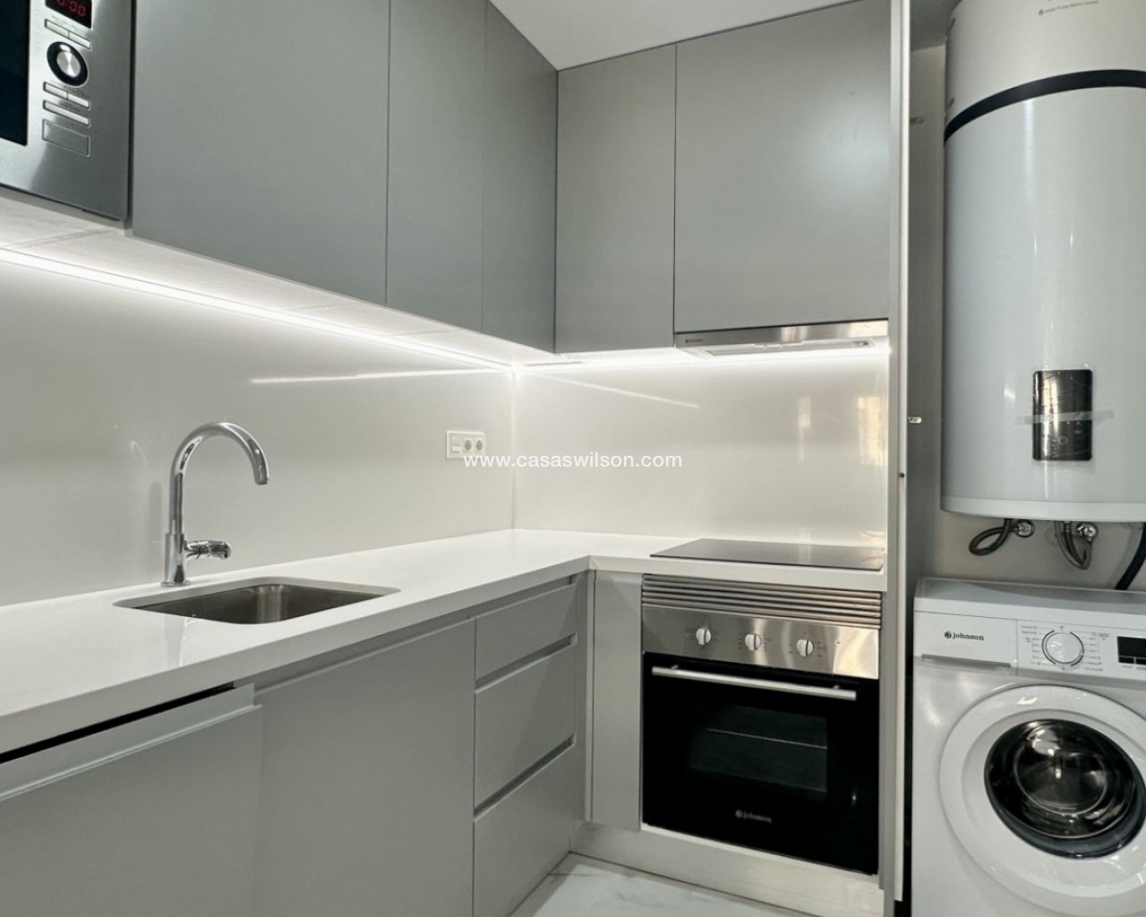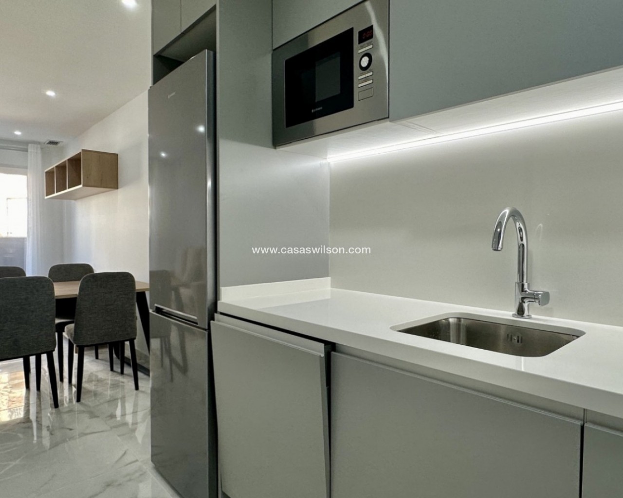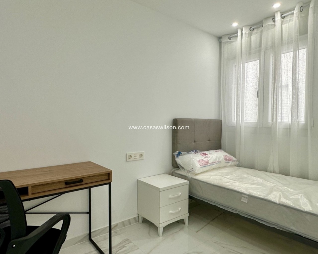Dit moderne en uitstekend onderhouden appartement ligt in het centrum van Torrevieja, slechts 800 meter van het strand. Gelegen op de derde verdieping van een recent gebouw, biedt het een lichte en comfortabele leefruimte met twee tweepersoonsslaapkamers, een complete badkamer, en een ideale indeling voor zowel permanente bewoning als vakantiegebruik. De woning beschikt over een westelijk gelegen terras van 5 m², dat zorgt voor fijne middagzon. Binnen vind je massief houten timmerwerk, een volledig ingerichte keuken en moderne afwerkingen. Bewoners profiteren van centrale airconditioning, een moderne lift, mindervaliden-toegang en een gemeenschappelijke sauna. Het indrukwekkende gemeenschappelijke solarium met barbecuehoek en zeezicht vormt een groot pluspunt. Gelegen nabij supermarkten, medische diensten, scholen, winkels, restaurants en groene zones.