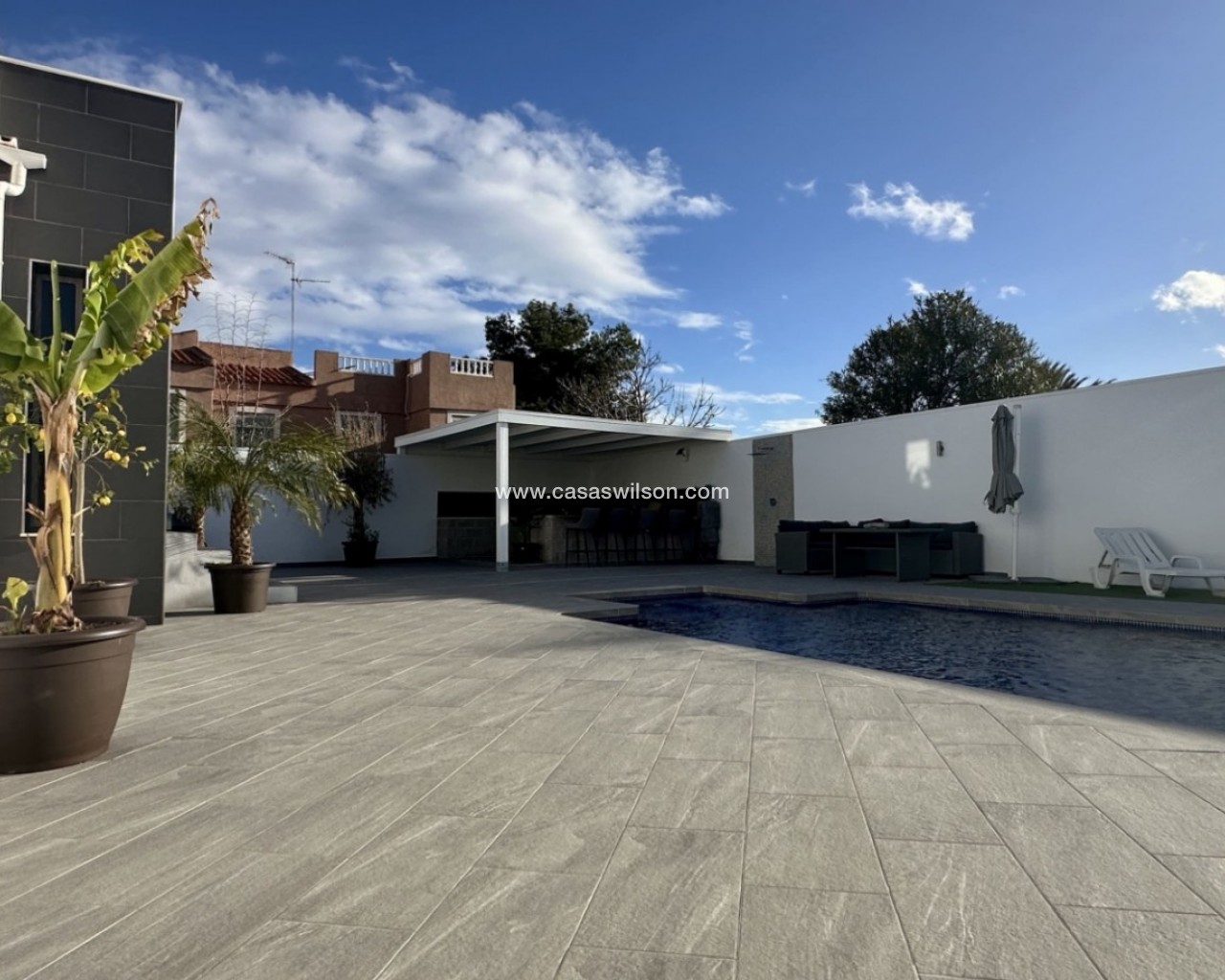 Ontdek deze prachtig gerenoveerde, moderne vrijstaande villa in het populaire woongebied Ciudad Quesada, Rojales. De woning biedt stijlvol design en comfortabele leefruimtes verdeeld over twee verdiepingen, op een ruim perceel van circa 500 m² — ideaal als gezinswoning of vakantieverblijf. De villa heeft een bebouwde oppervlakte van 132 m² en beschikt over vijf ruime slaapkamers en drie moderne badkamers, wat volop ruimte biedt voor familie en gasten. De lichte open woonruimtes sluiten direct aan op de terrassen en tuin — perfect om te genieten van het mediterrane klimaat. Buiten vindt u een fraai aangelegde tuin met meerdere zitgedeeltes en een privé verwarmd zwembad van 8 x 4 meter, geschikt voor gebruik het hele jaar door. Daarnaast is er een overdekte buitenkeuken/bar voor gezellige avonden. De woning is voorzien van airconditioning in alle kamers, inbouwkasten, zuidelijke ligging voor veel zonlicht en een garage. Afgewerkt in moderne stijl en gelegen in een rustige, gewilde buurt.