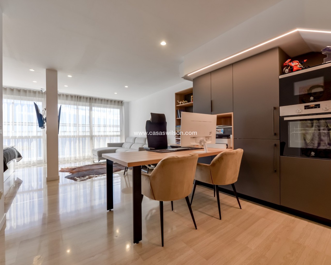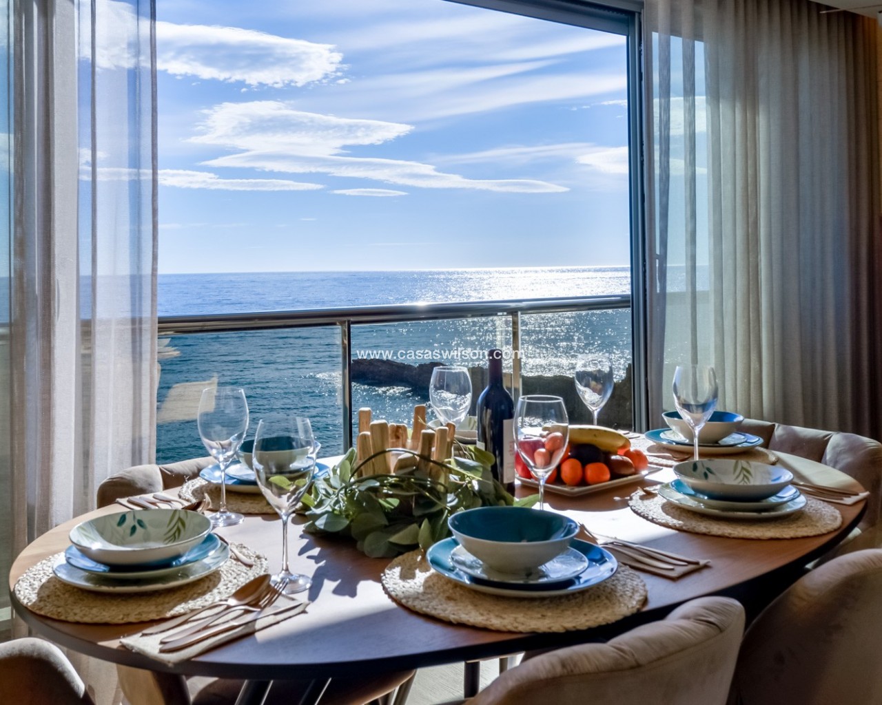Deze exclusieve duplex in eerste lijn aan zee, recent volledig gerenoveerd, biedt een verfijnde levensstijl in een van de meest bevoorrechte gebieden van Mascarat, Altea. Met prachtig open uitzicht op de Middellandse Zee combineert de woning hedendaags design, hoogwaardige materialen en maatwerkafwerkingen. De woning is verdeeld over twee niveaus. Op de hoofdverdieping bevindt zich een ruime en lichte woon-eetkamer met grote panoramische ramen en zeezicht. De volledig uitgeruste designkeuken is naadloos geïntegreerd in de leefruimte. Verder zijn er drie slaapkamers en twee badkamers, waarvan één en suite. De onderverdieping, verbonden via een interne trap en met een eigen ingang, beschikt over een studio van circa 50 m² met keuken, eet- of kantoorruimte, woonkamer en slaapkamer met inloopkast en complete badkamer. Ideaal voor gasten, familie of als zelfstandige ruimte. De woning maakt deel uit van een goed onderhouden residentie met zwembad en gemeenschappelijke parkeergelegenheid, met optie op een nabijgelegen ondergrondse garage. Een unieke kans om te genieten van luxe, comfort en zeezicht aan de Costa Blanca.
