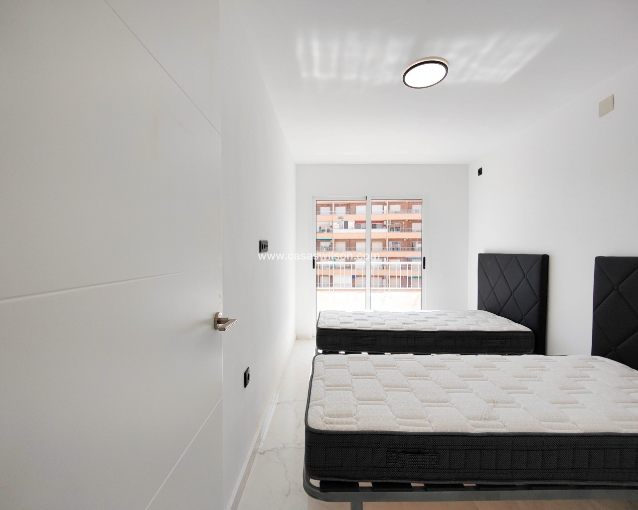Zuidgericht gerenoveerd appartement te koop met gemeenschappelijk zwembad op 600m van het strand in Punta Prima. Dit volledig gerenoveerd appartement ligt op de 4de verdieping in een gebouw met lift. Het appartement heeft een inkomhal, 2 slaapkamers met inbouwkasten en 2 badkamers, een heldere ruime woonkamer met een geïntegreerde moderne keuken. De woonkamer en de 2 slaapkamers hebben toegang tot het zuid gericht terras met uitzicht op het gemeenschappelijk zwembad. Wordt verkocht zoals op de foto’s is te zien. Het complex beschikt over een gemeenschappelijk zwembad en gemeenschappelijke parkeerplaatsen. Heel dichtbij ligt er een commercieel koopcenter nl. “Punta Marina” met een CONSUM supermarkt, restaurantjes en winkeltjes. Het strand ligt op ongeveer 600 meter, kinderspeeltuin en een restaurant met een waanzinnig uitzicht over de zee en de stad Torrevieja. Bruisende vakantiebuurt met tal van ontspanningsmogelijkheden en recreatiefaciliteiten.